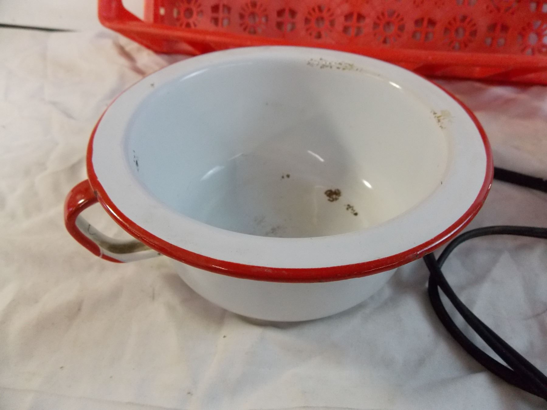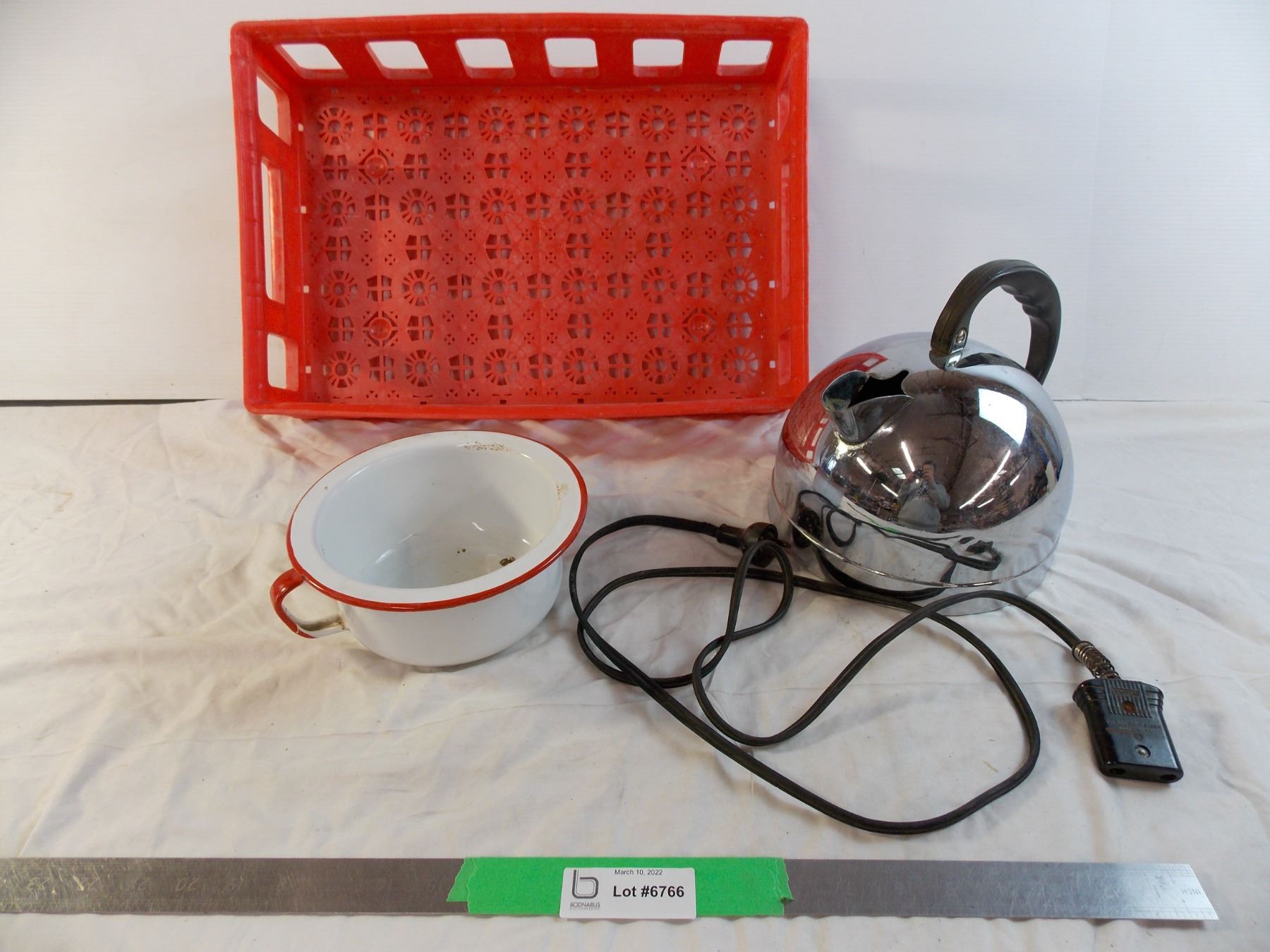 Coca Cola Tray with vintage tea kettle + enamel pot