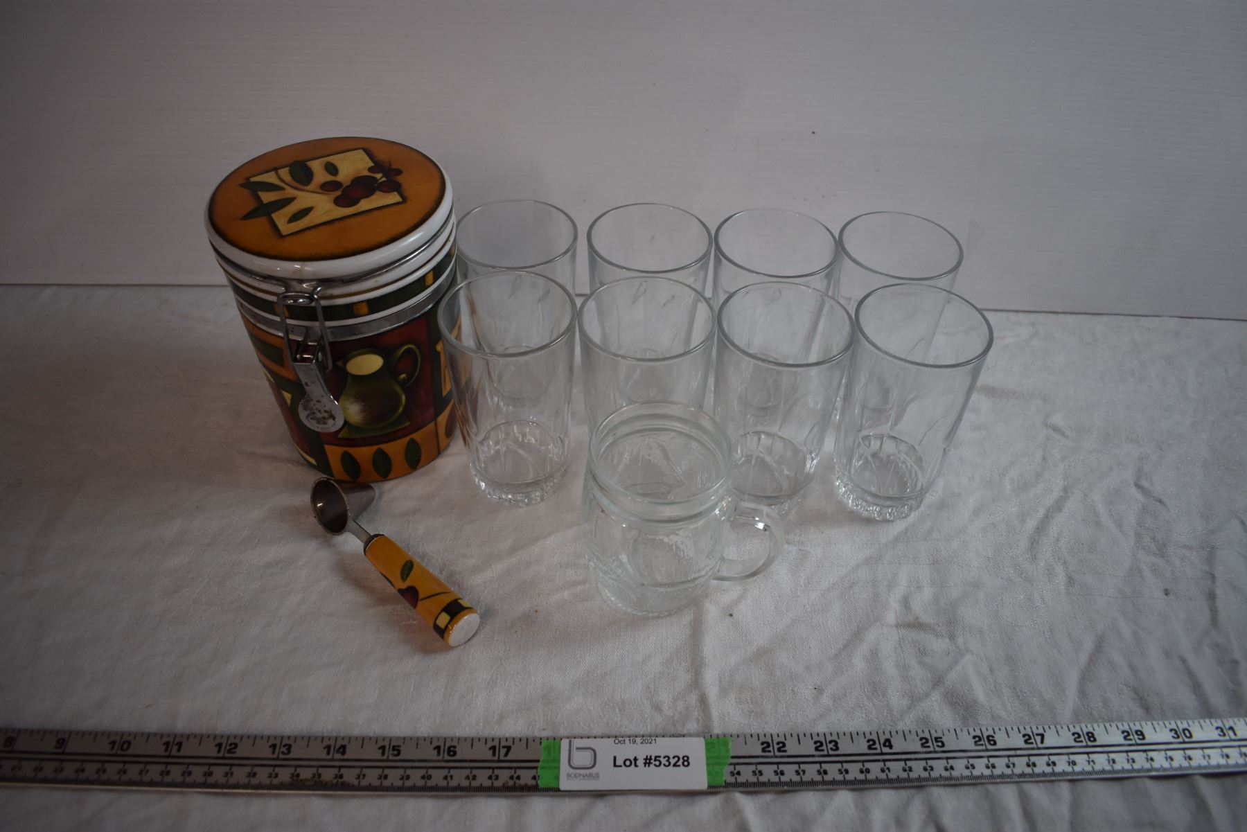 Coffee Canister and Glass Cups