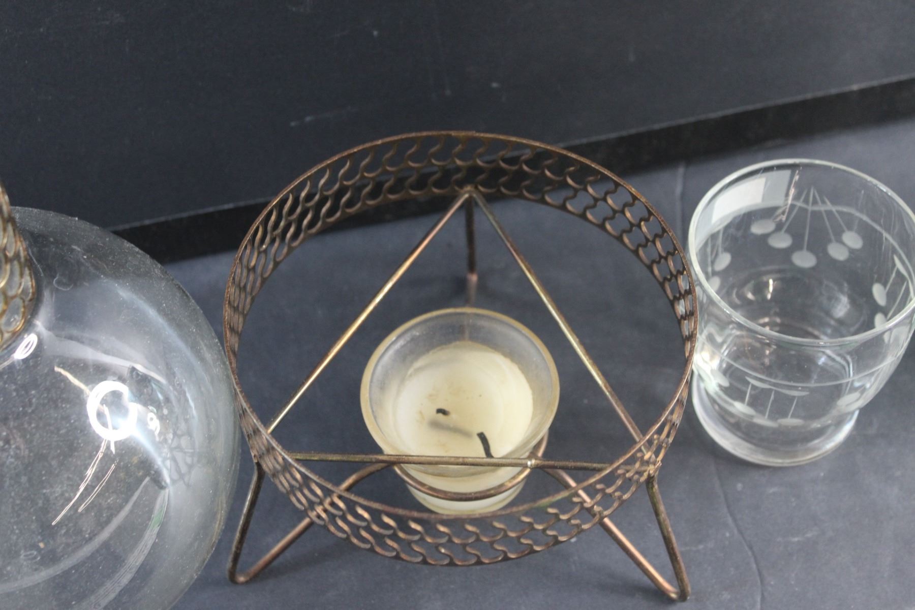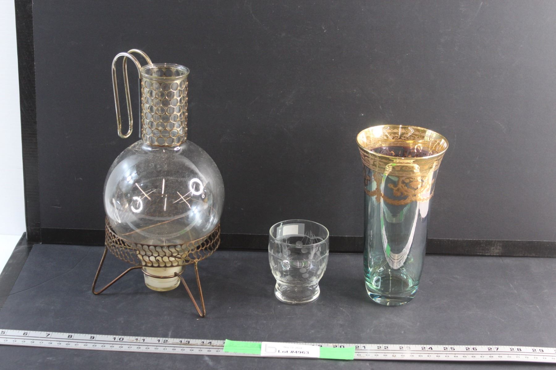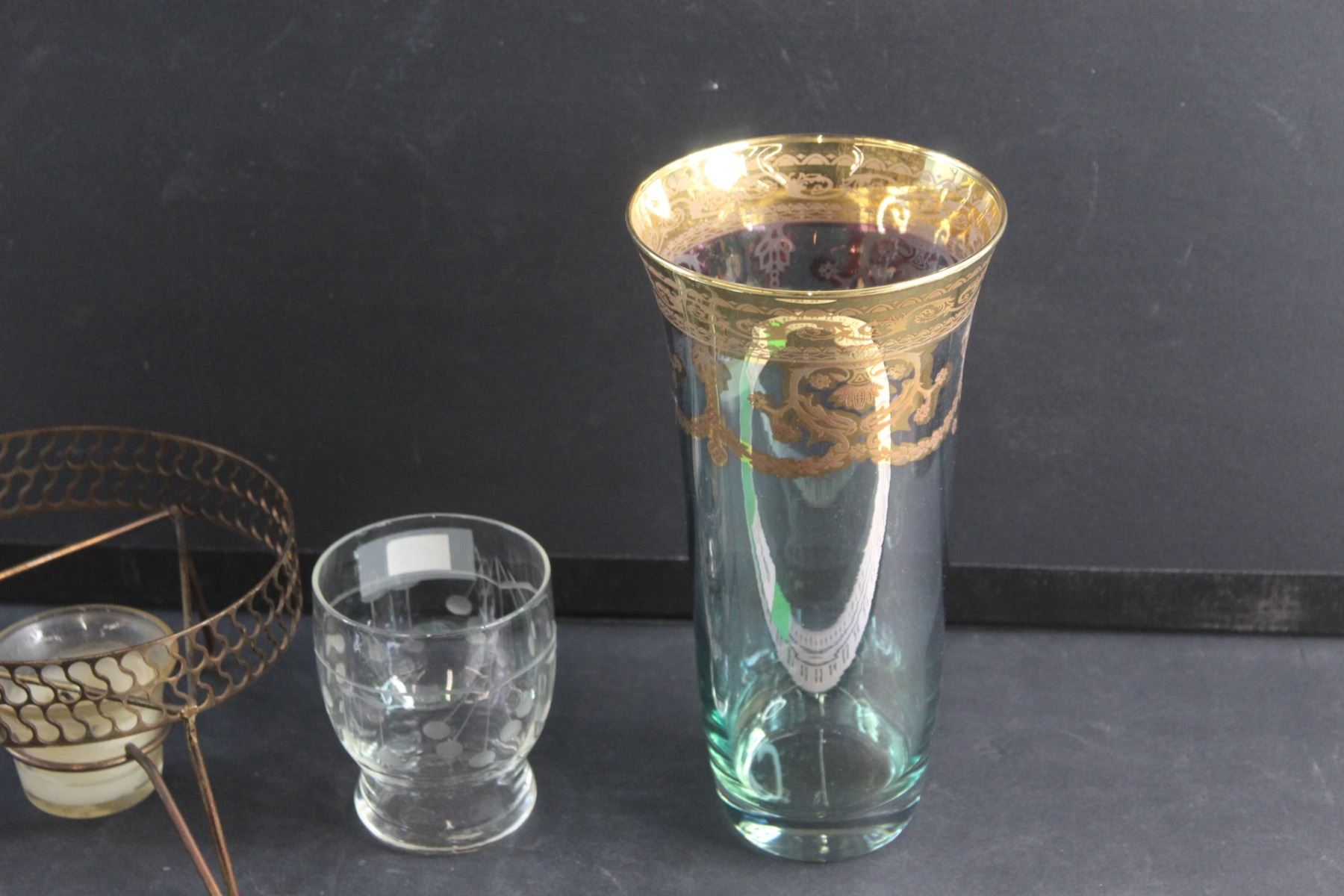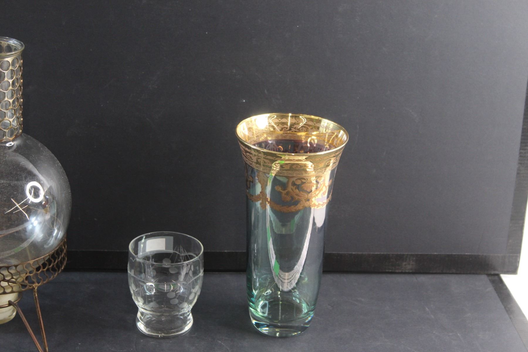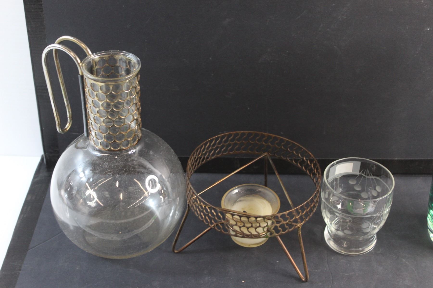 Coffee Pot, Glass and Green/Brass Glass Vase