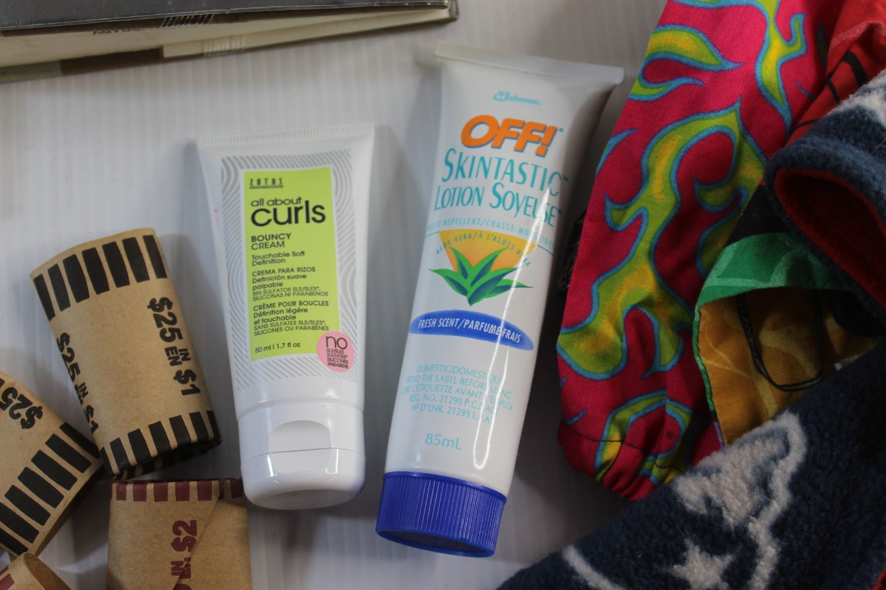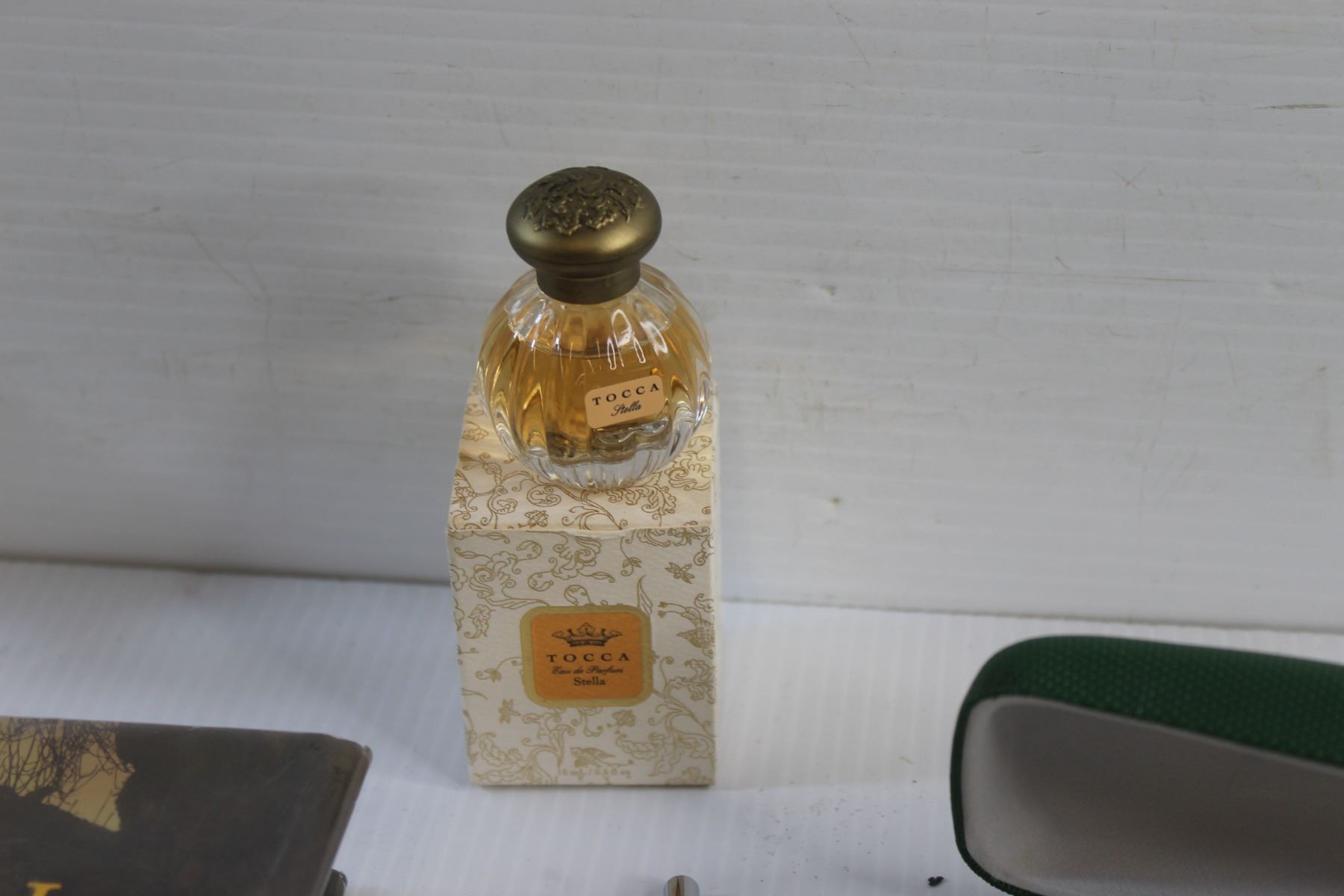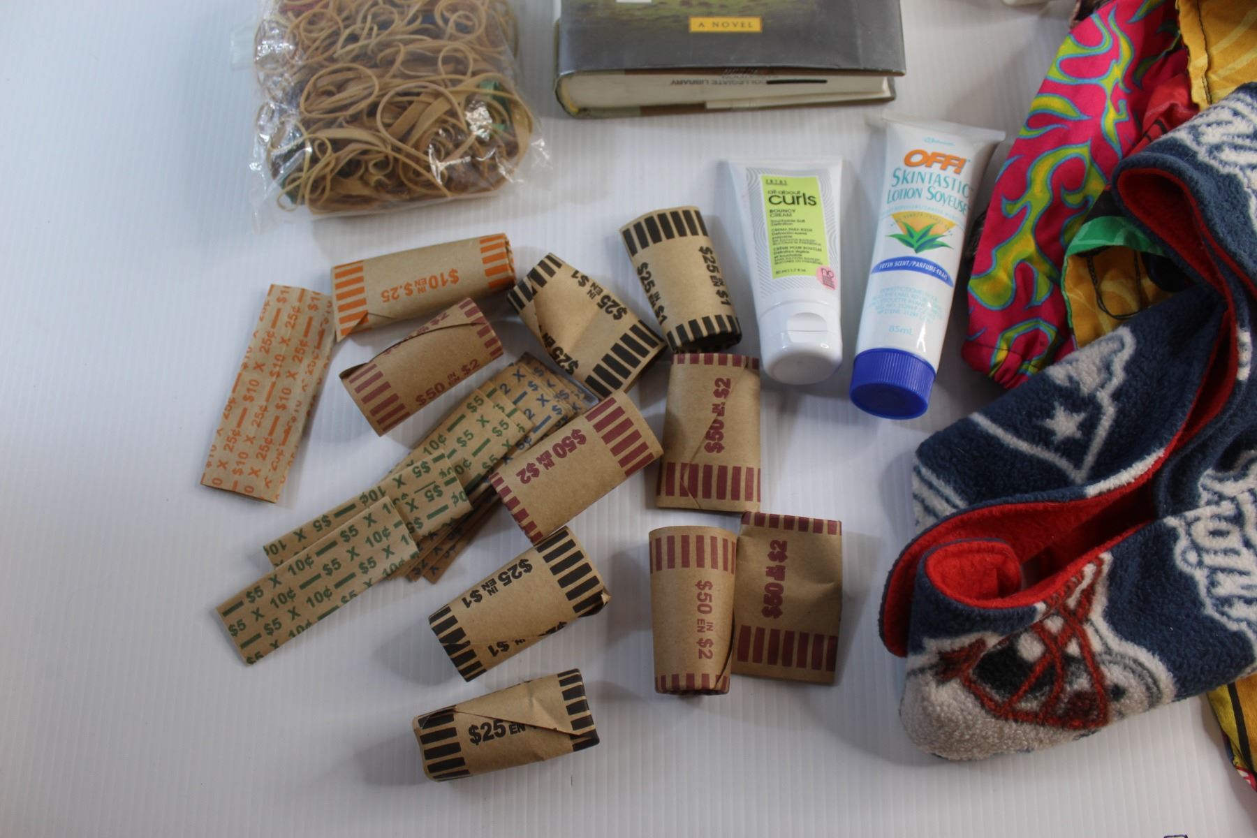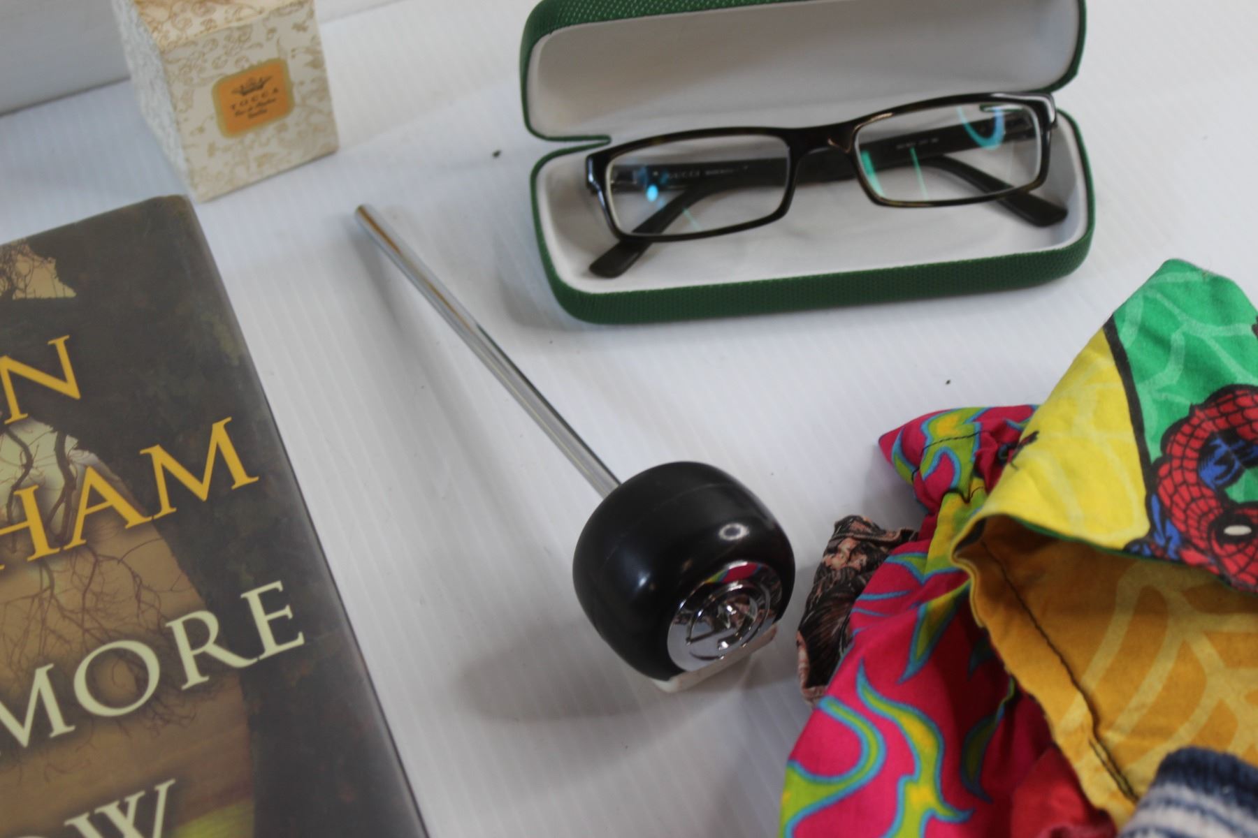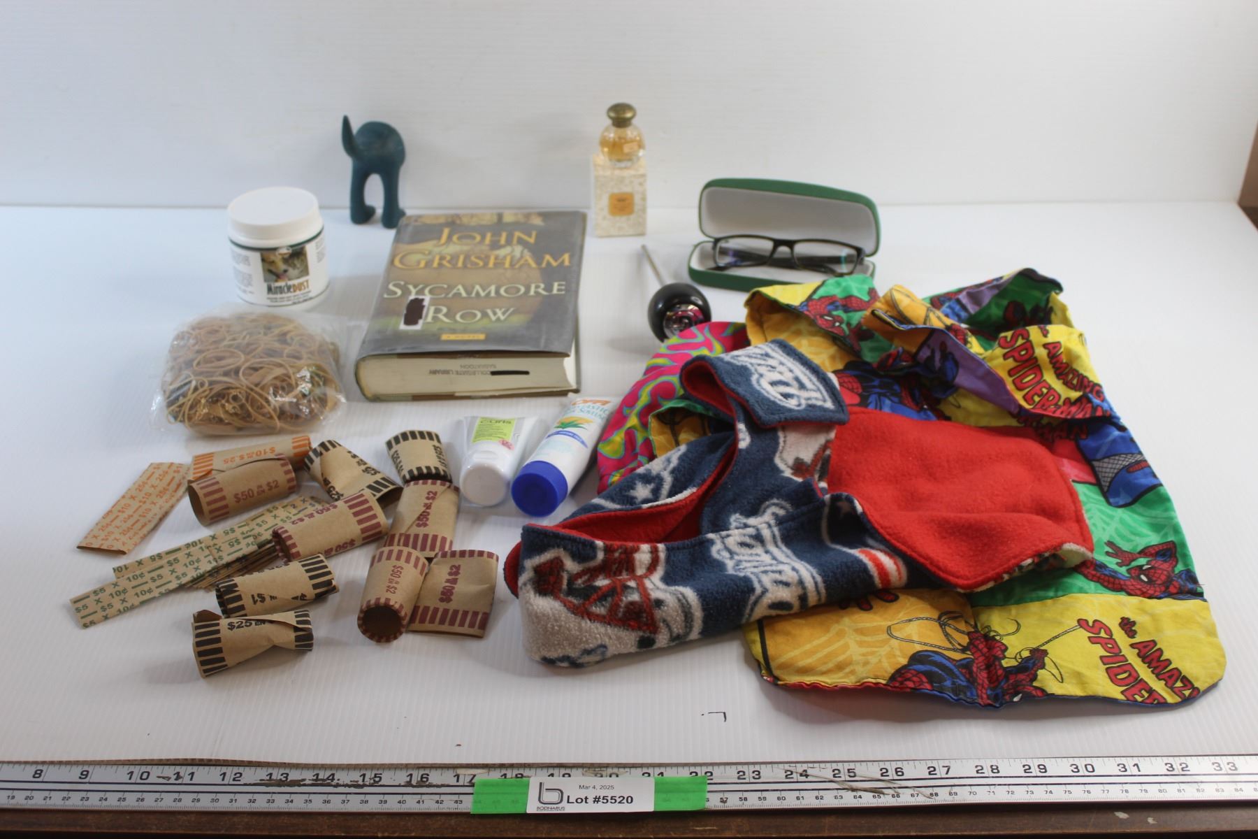 Coin Rollers, Gucci Glasses - Authenticity Not Guaranteed, Miracledust Powder - Sealed, Tocca Perfume, John Grisham Book, Rubber Bands and Misc