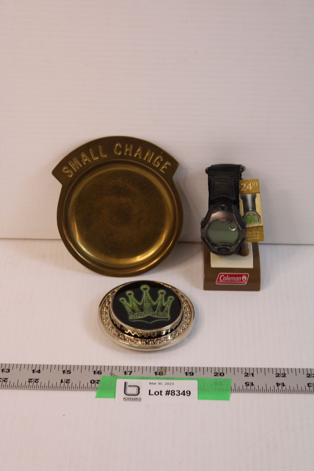Coleman NOS Watch, Brass Change Dish and Belt Buckle (Need Batteries