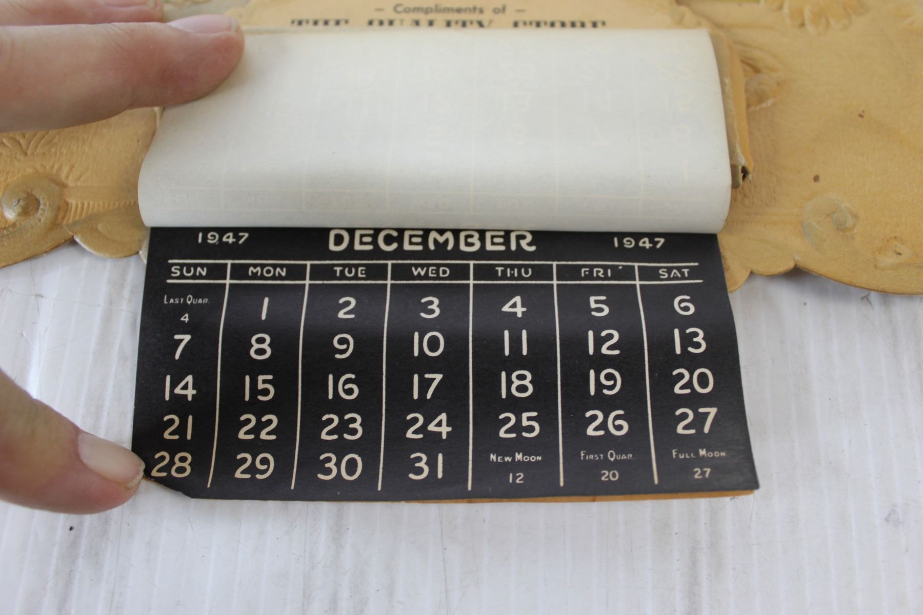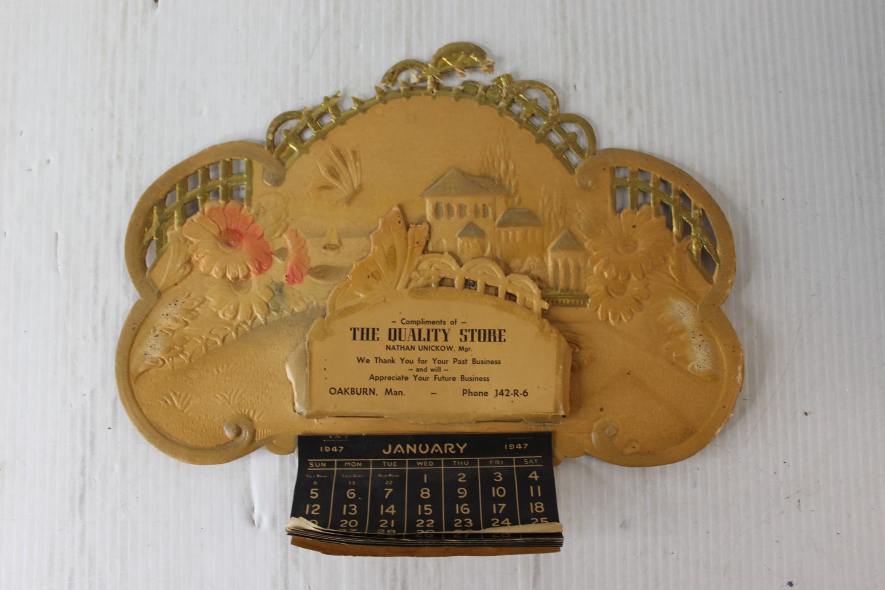 Collector Calendar, 1947 - The Quality Store, Nathan Unickow, Oakburn, MB., Queen Elizabeth II Coron