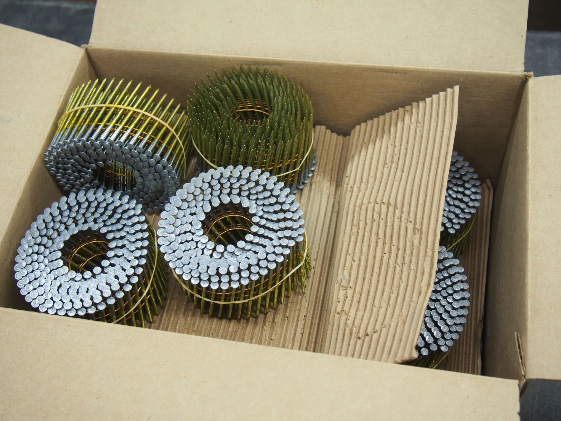 Concrete anchors, screws, coil nails, coated steel, collated pneumatic screws, deck screws