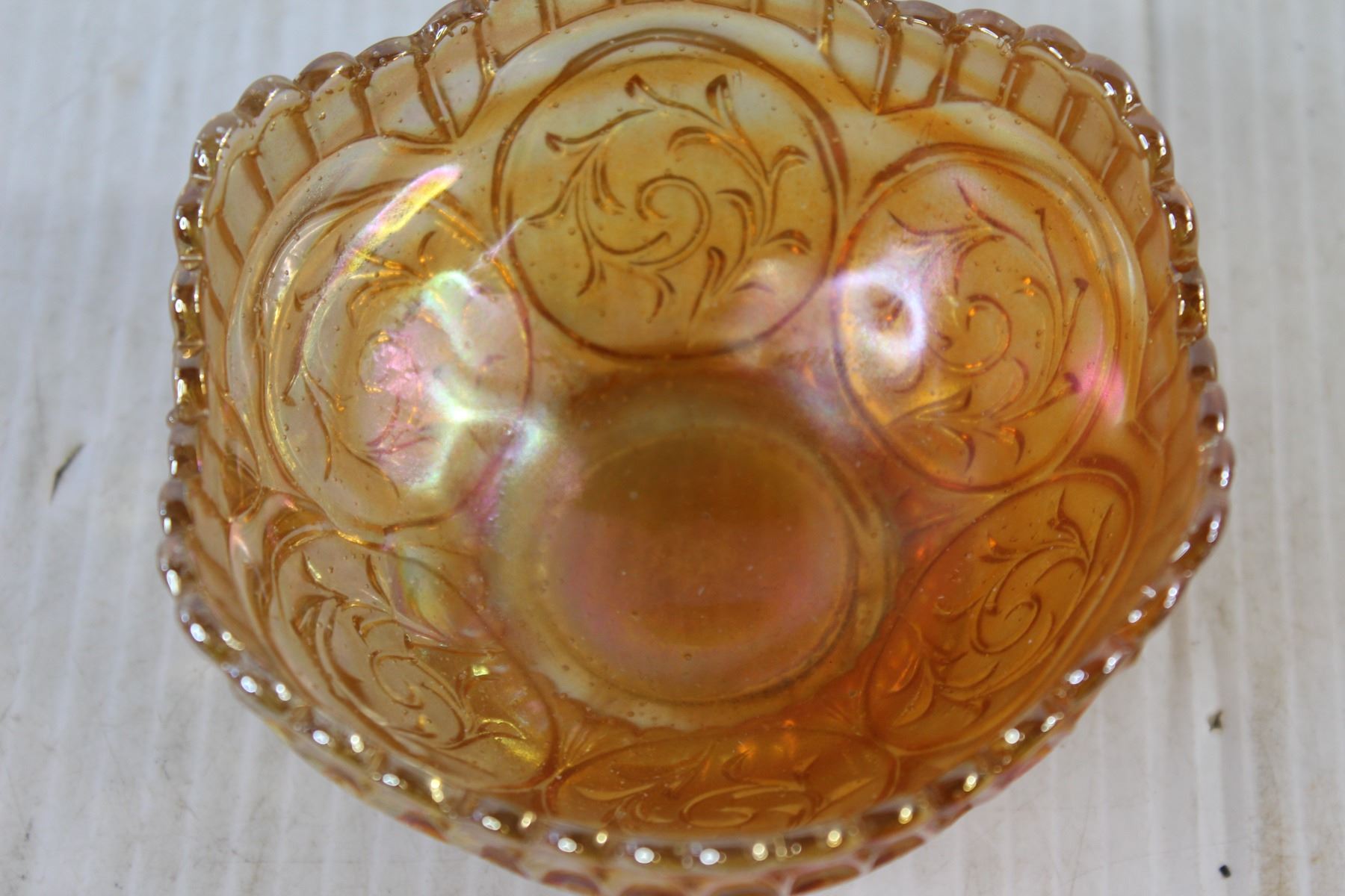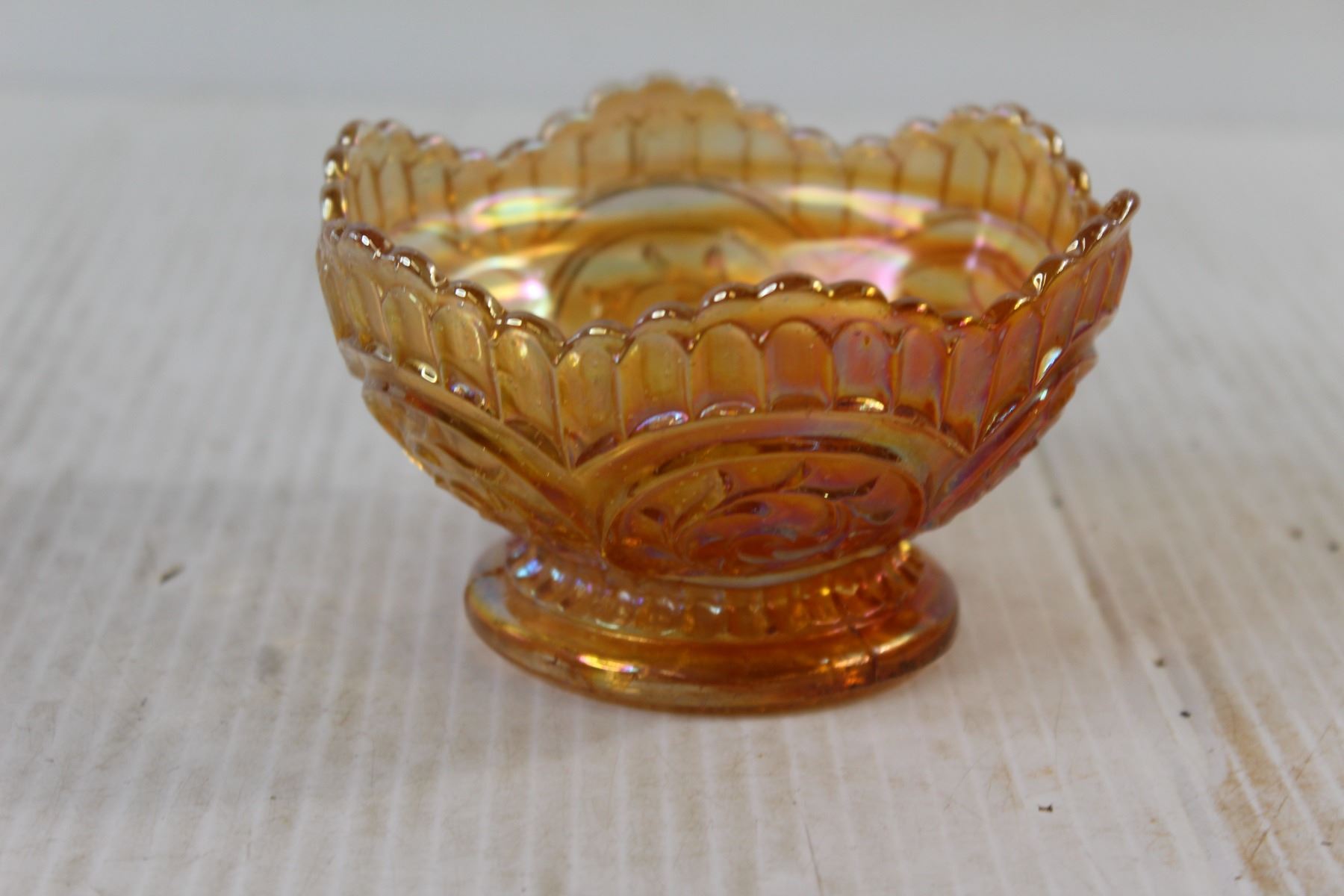 Consolidated Ruffled Rim Rose Bowl, Orange Glass Candy Dish