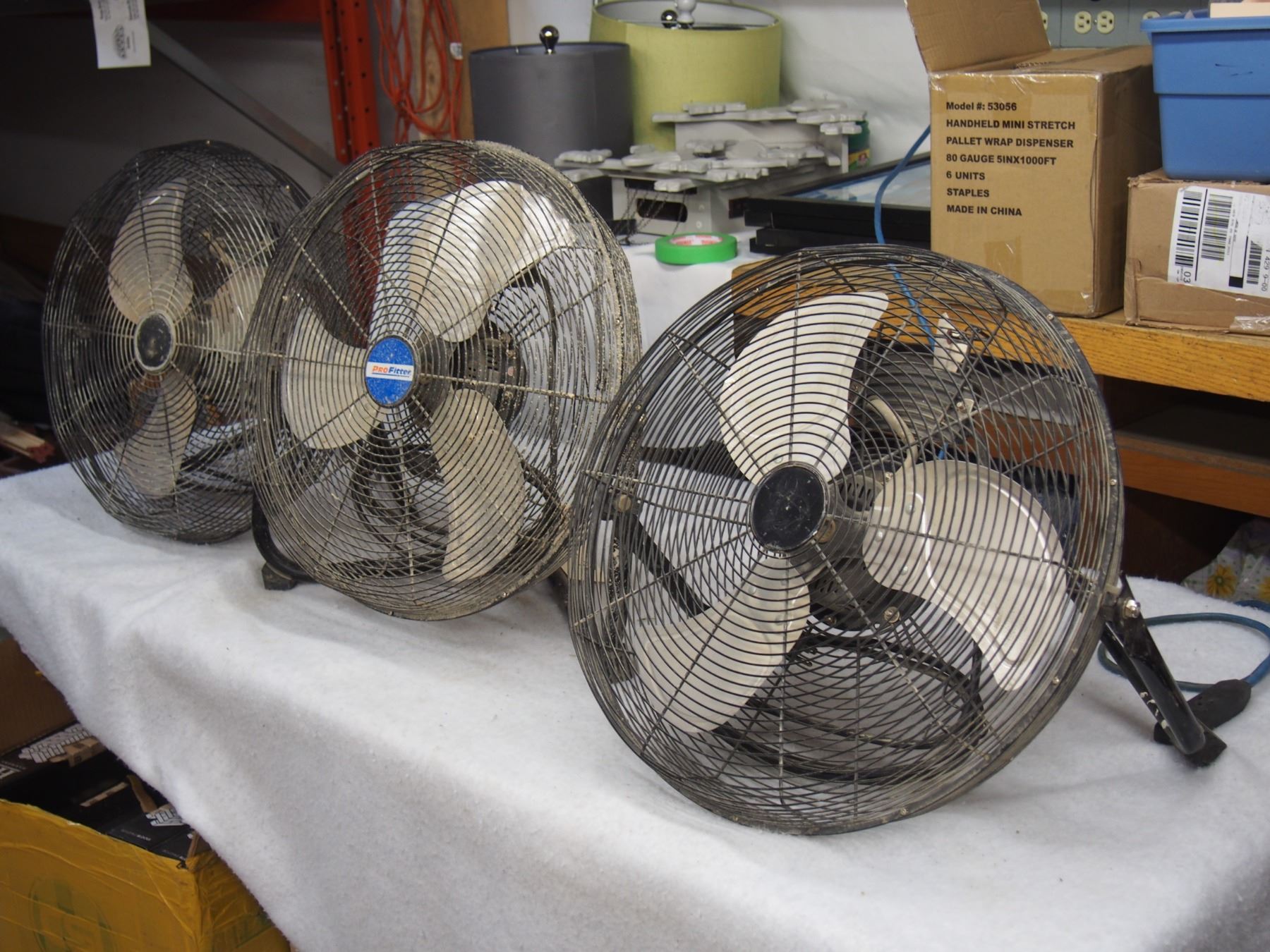 Construction Fans (3) 2 need repair 18" Floor Fans