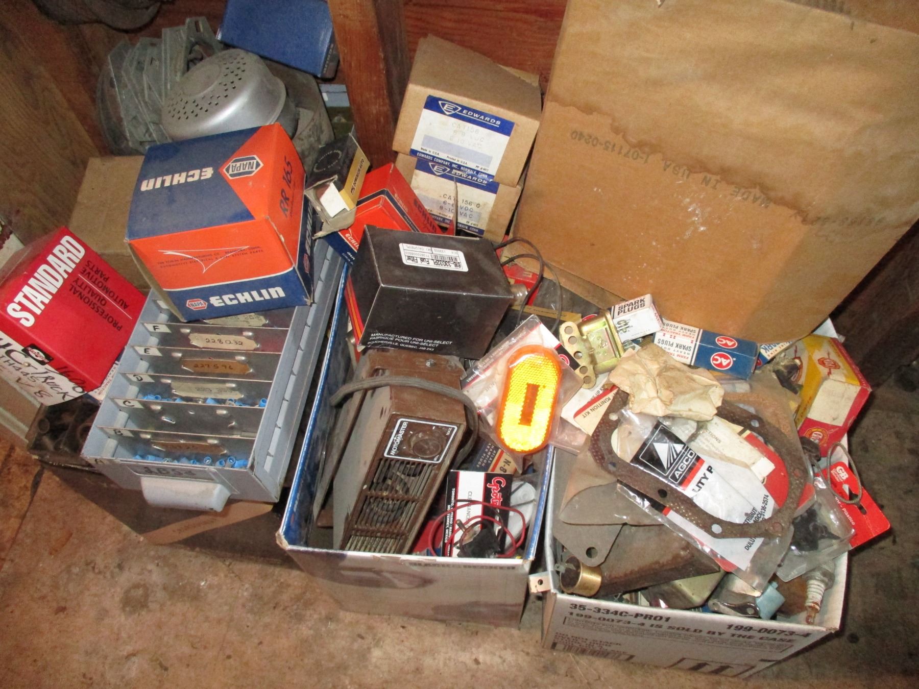 Contents only - bearings, spark plugs, belts, misc