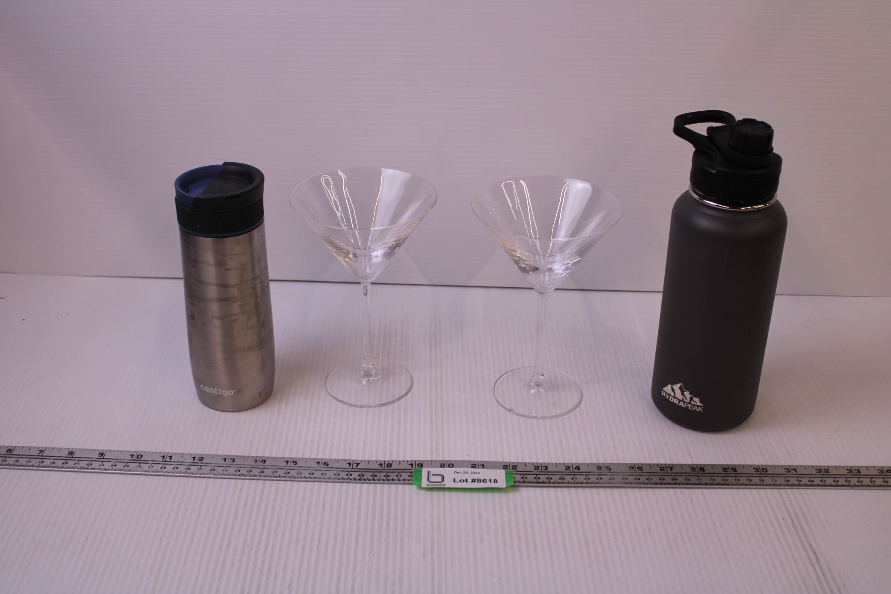 Contigo Travel Mug, Insulated Water Bottle + (2) Martini Glasses