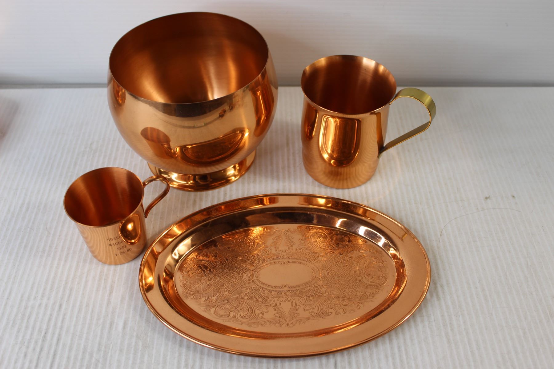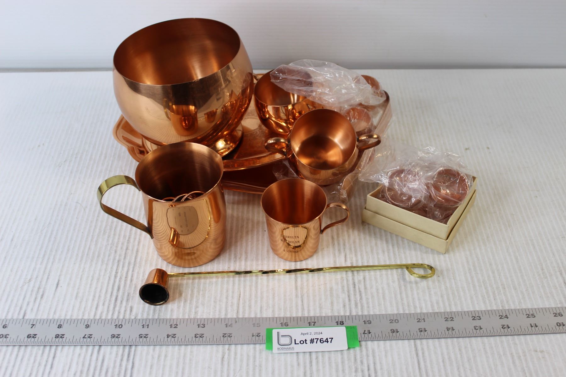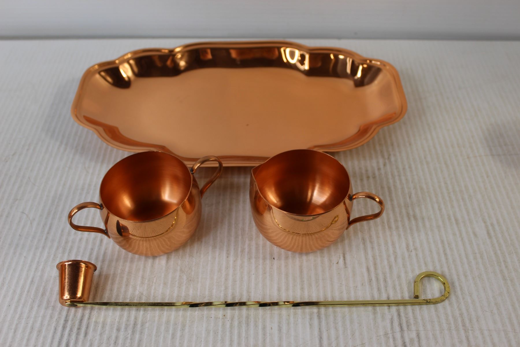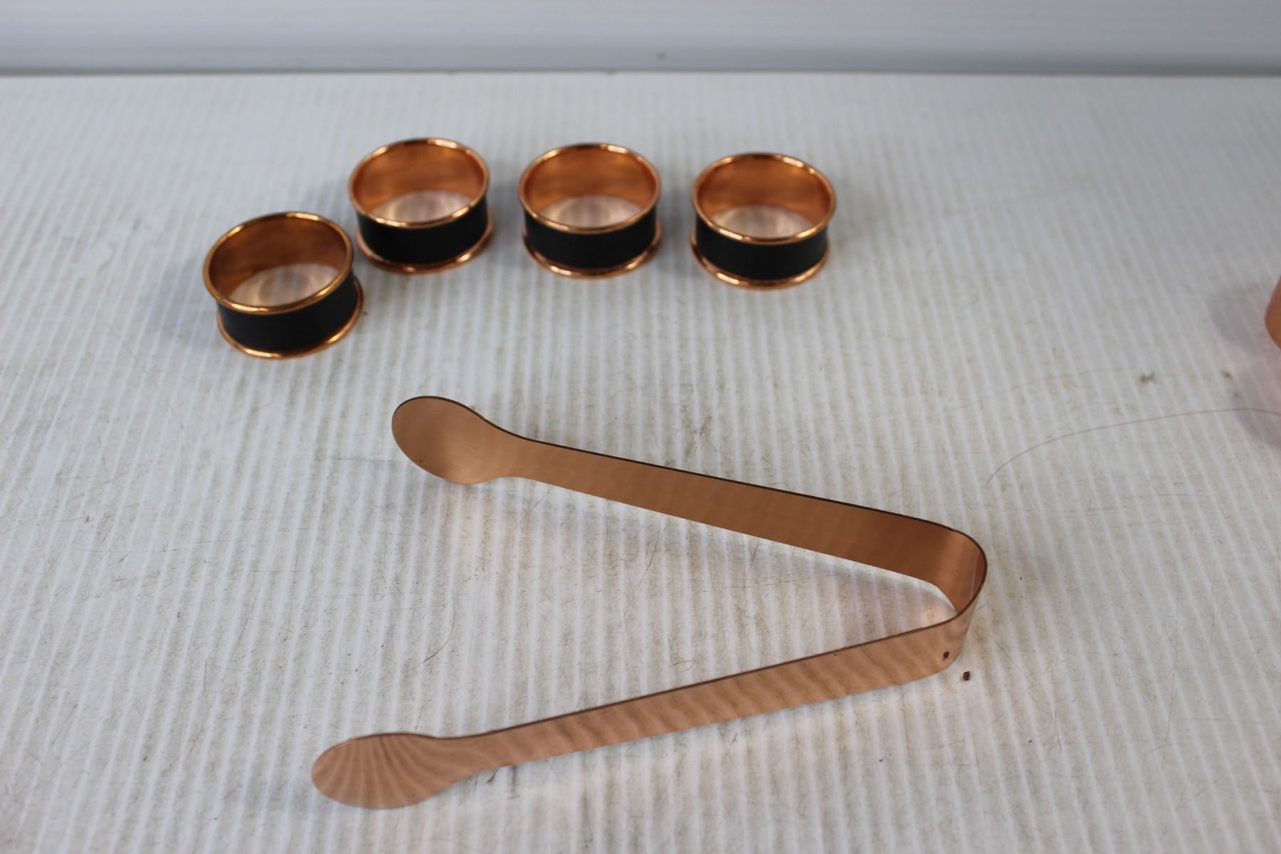 Coppercraft Trays, Napkin Rings, Cream & Sugar, Cup, Tongs, Candle Snuffer, etc.