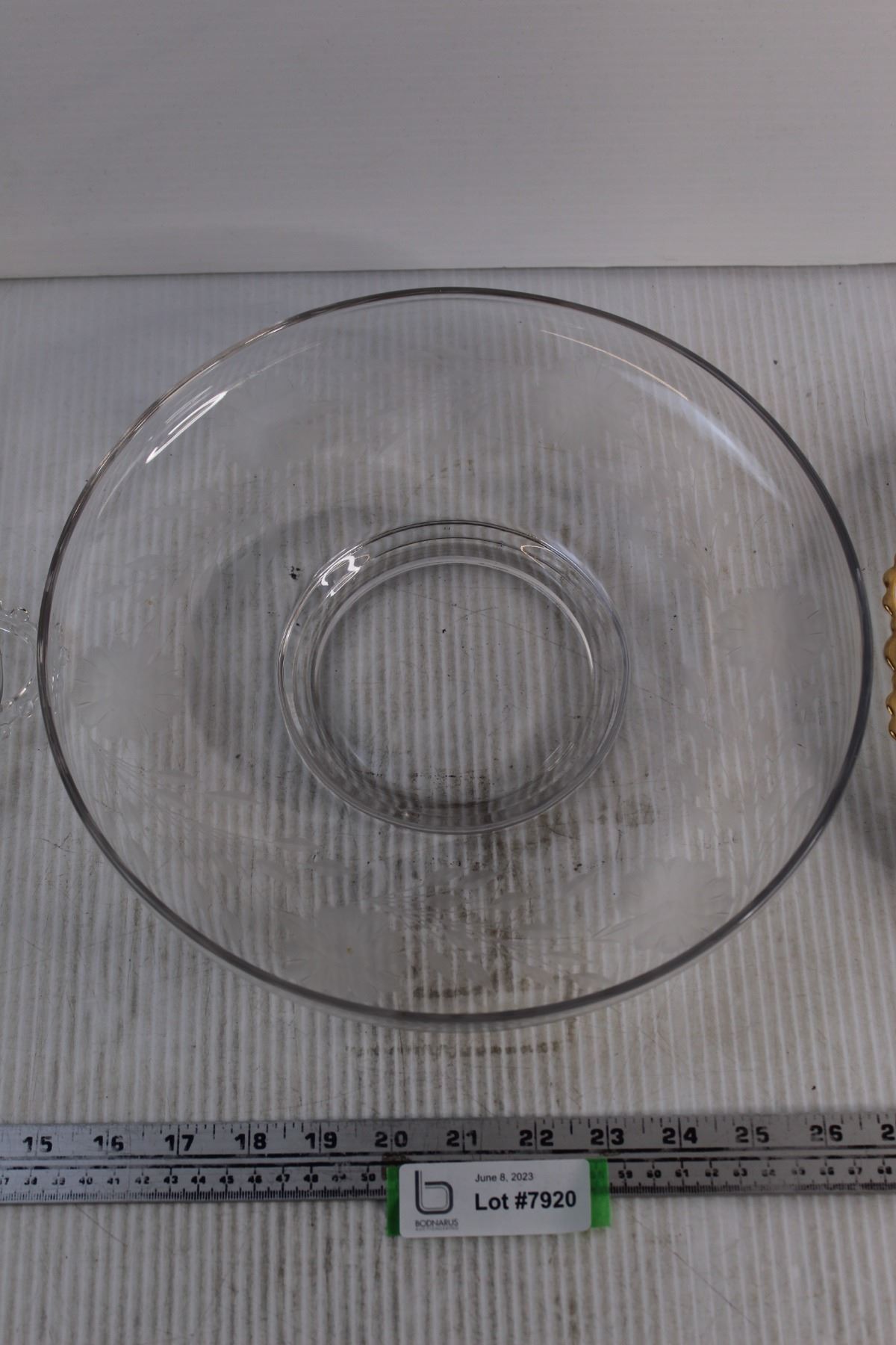 Cornflower Crystal Tray+ Flower Bowl + White With Gold Trim Tray