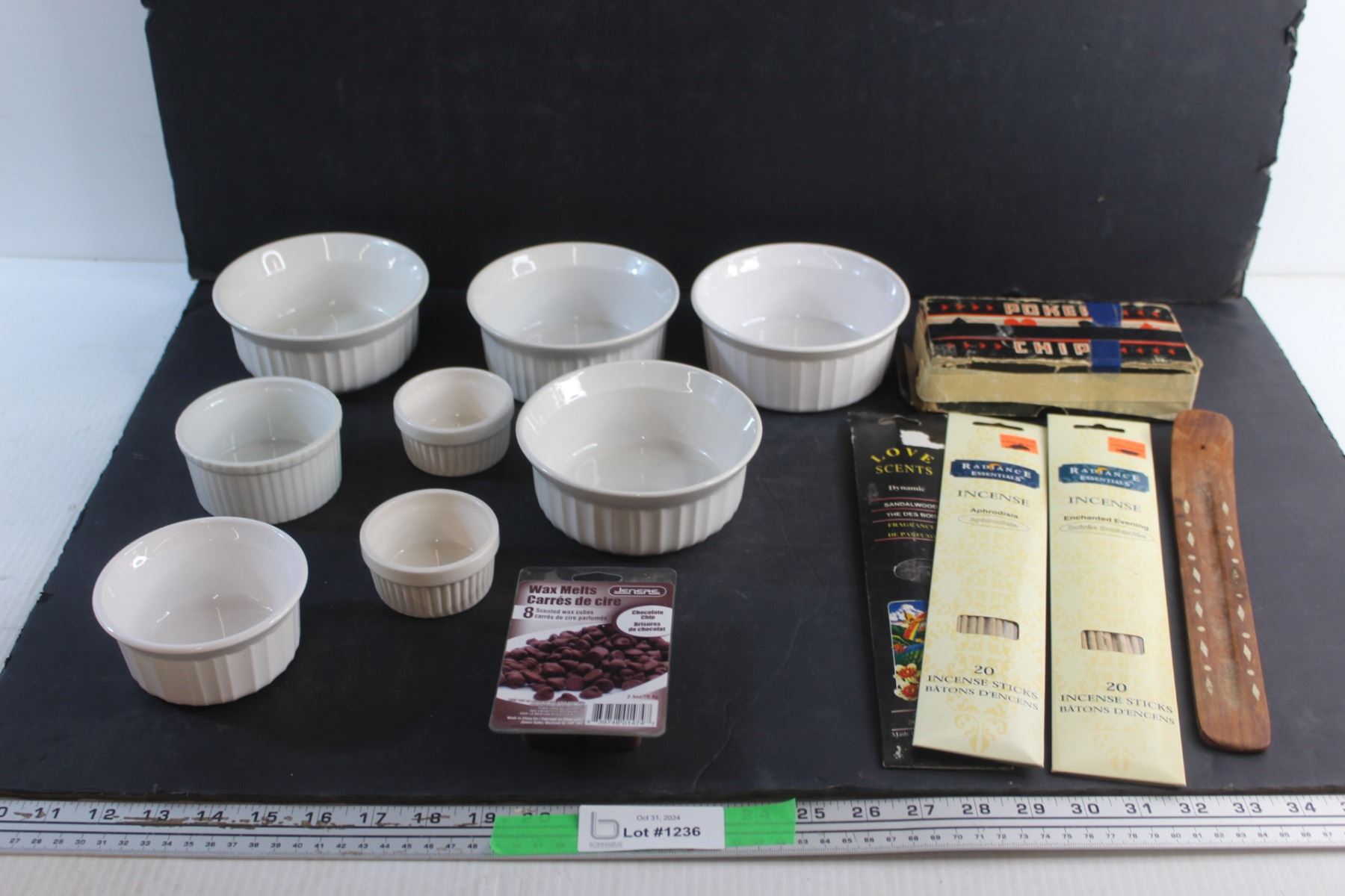 Corning Ware Dishes, Wax Melts, Poker Chips and Incense Sticks