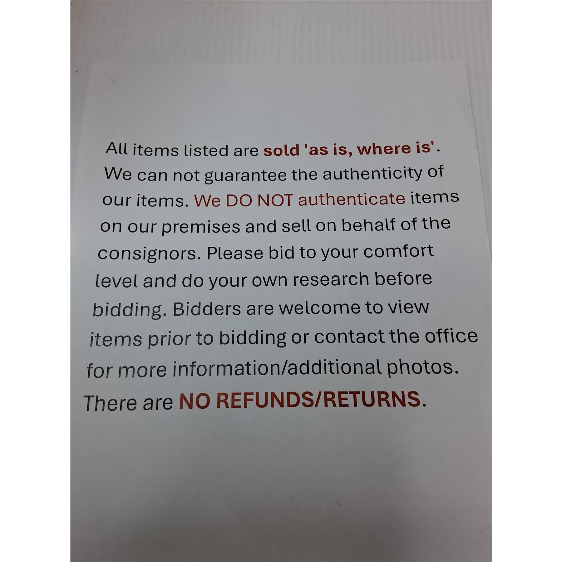 All advertising is a GUIDE ONLY. Buyers must satisfy themselves to the condition, identity and authenticity prior to bidding on an item and shall not make objections after the sale.