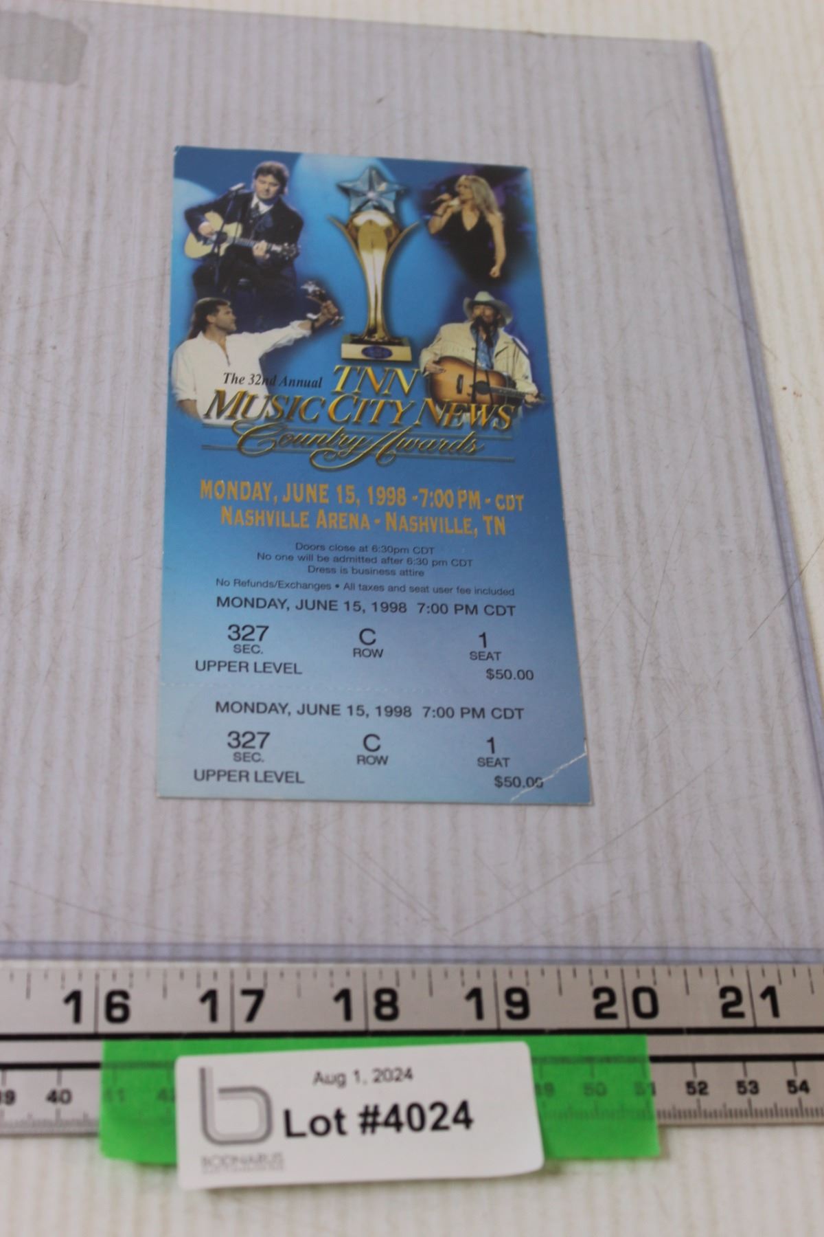 Country Music Awards Ticket Stub - 1998 - Alan Jackson, Vince Gill, Misc.