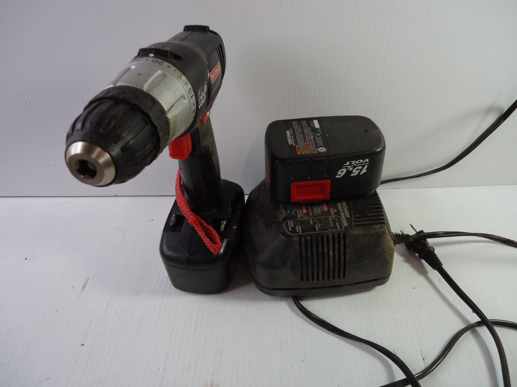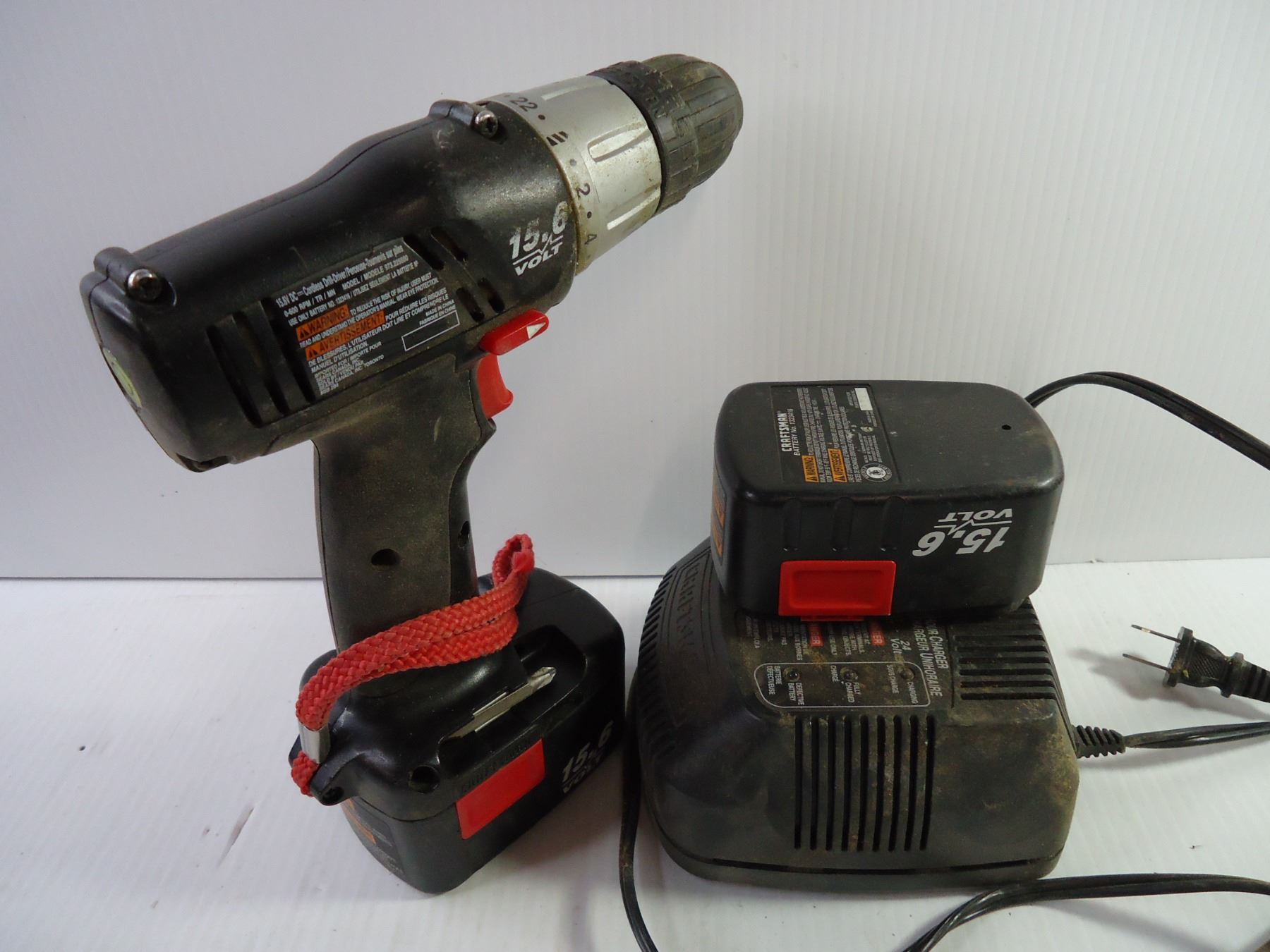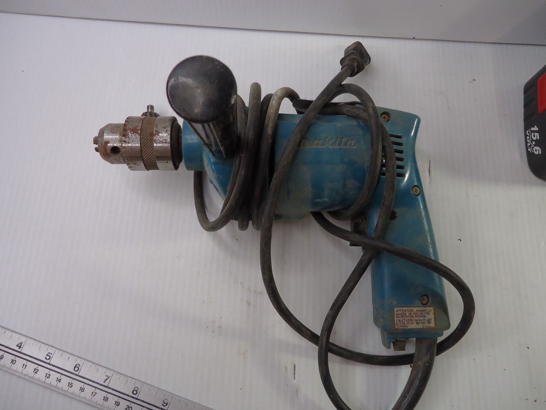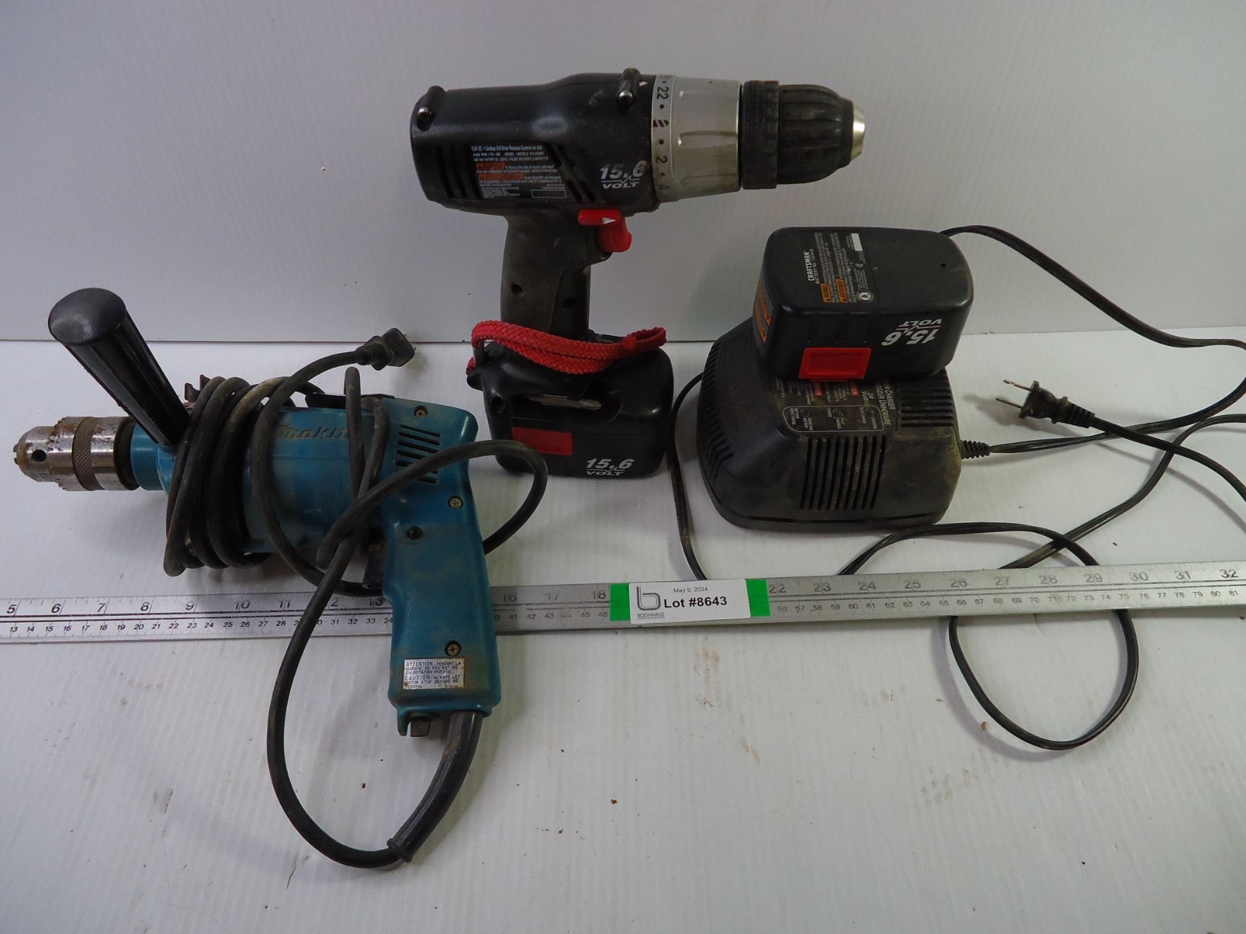 Craftsmen 15.6V Cordless Drill with 2 Batteries(charger powers on) as is and Makita 13mm Drill(powers on)