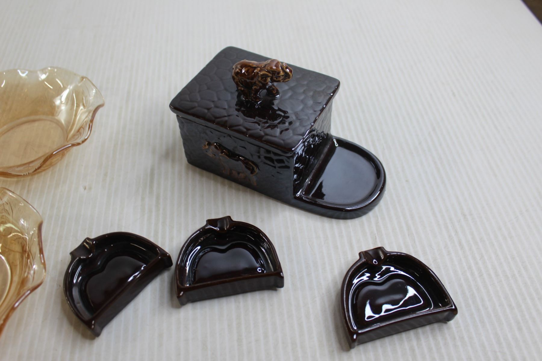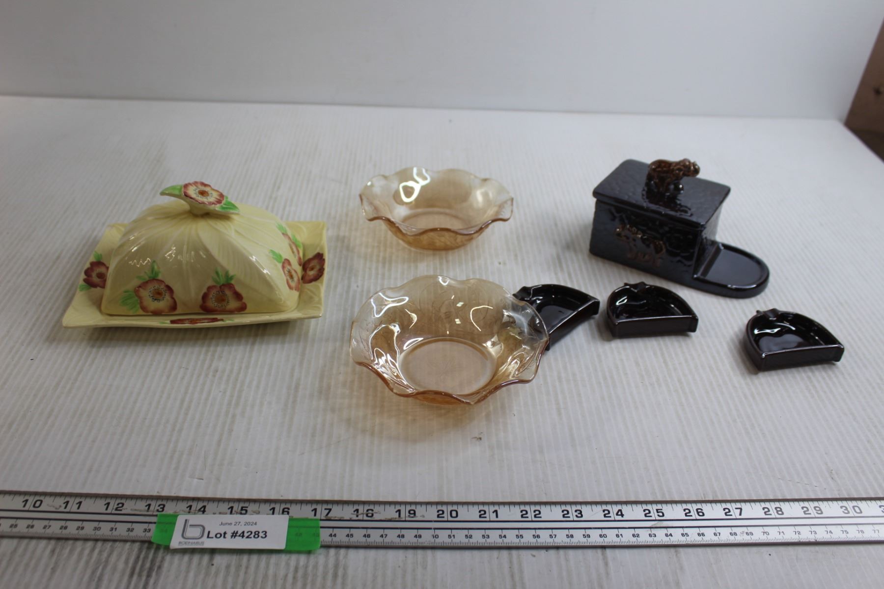 Creamsicle Bowls, Ashtrays, Flower Butter Dish
