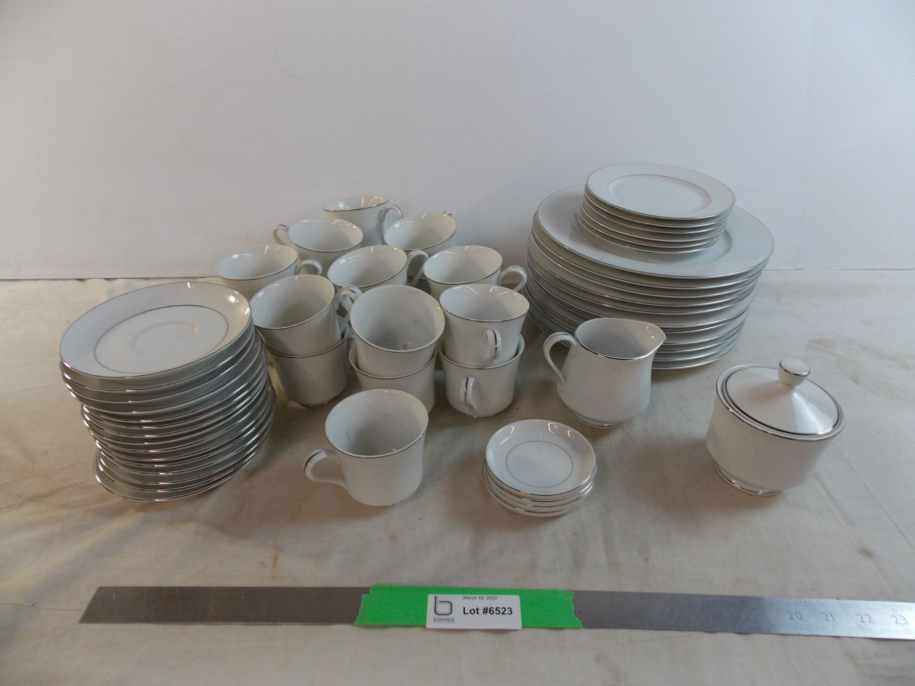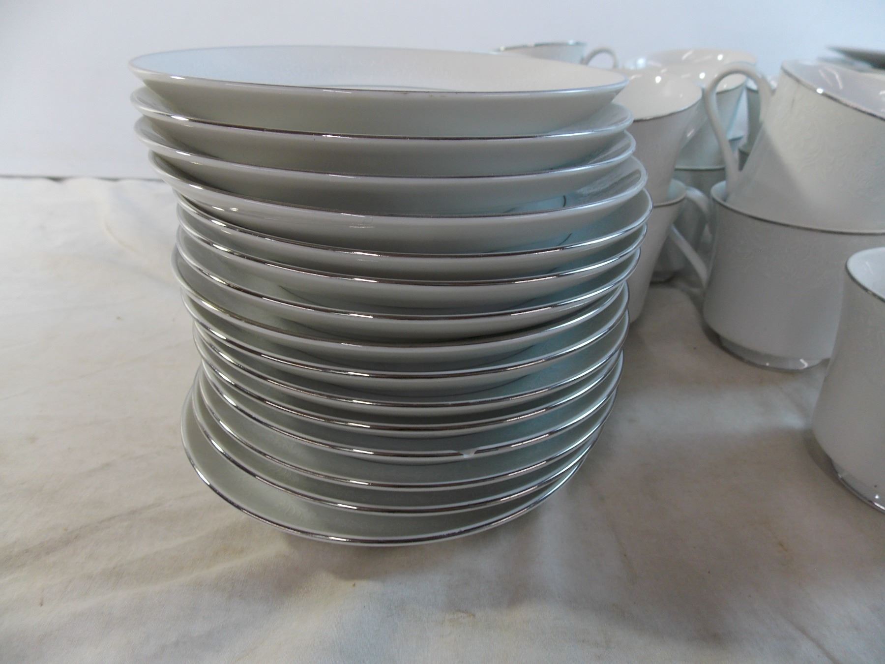 Crown Victory Love Lace dishware, teacup + saucers, plates, cream + sugar