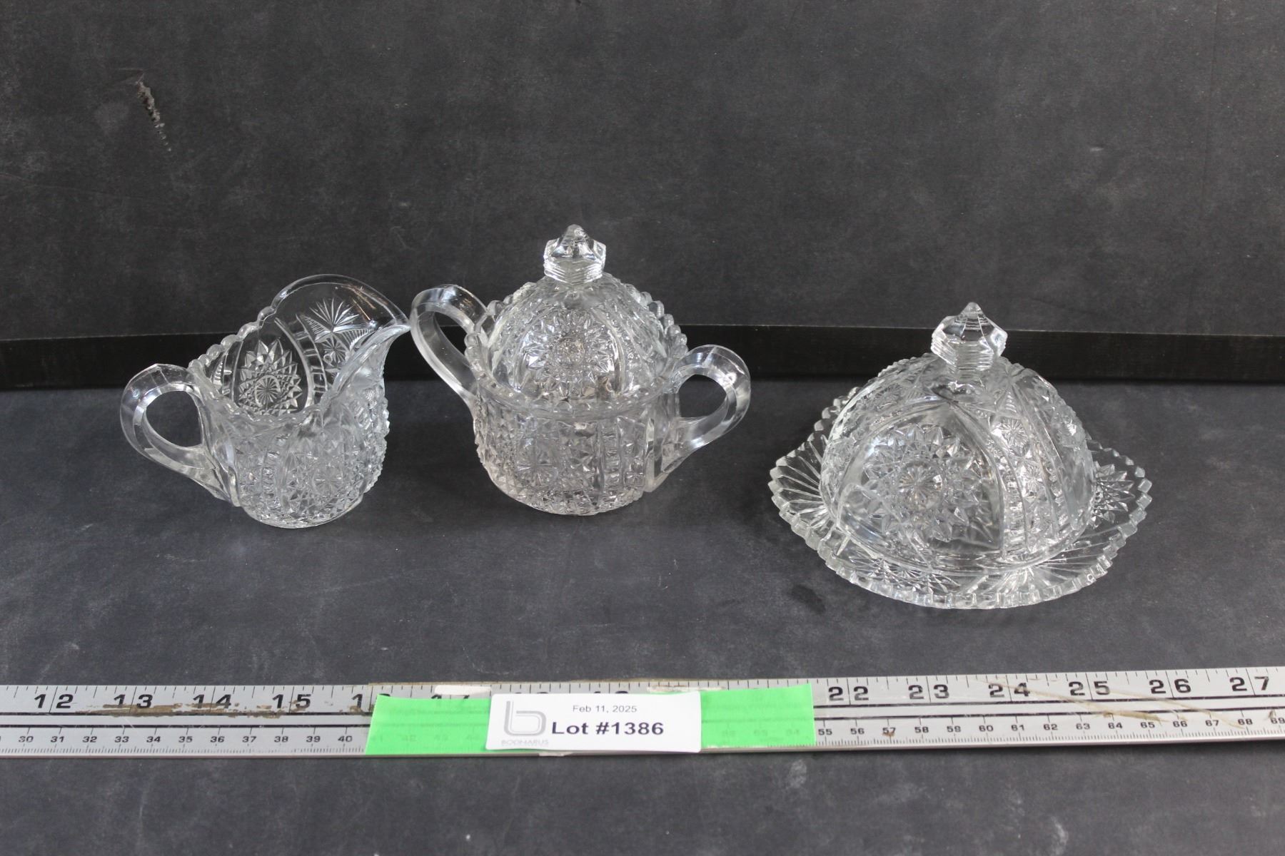 Crystal Cream & Sugar Set and Lidded Butter Dish