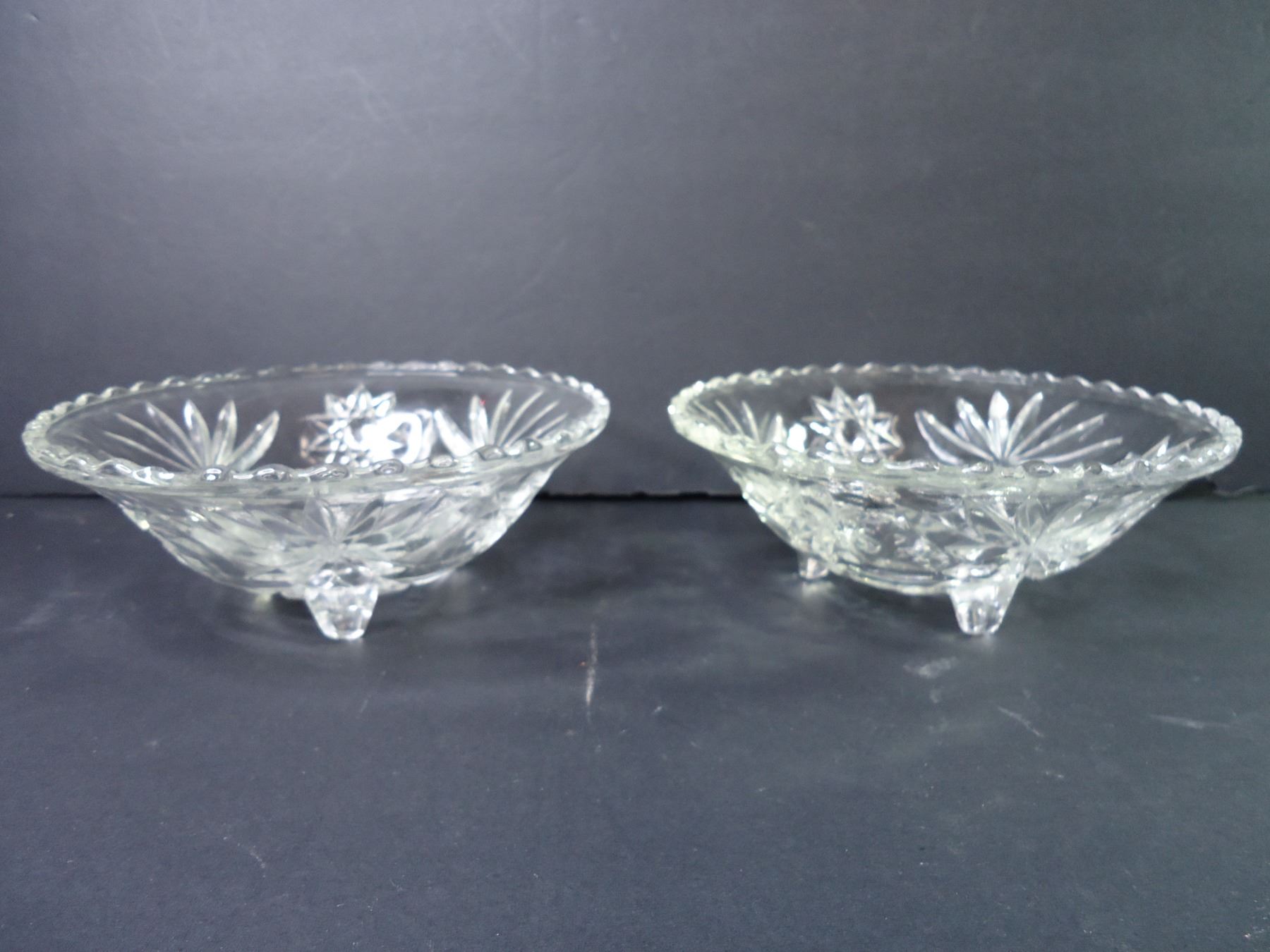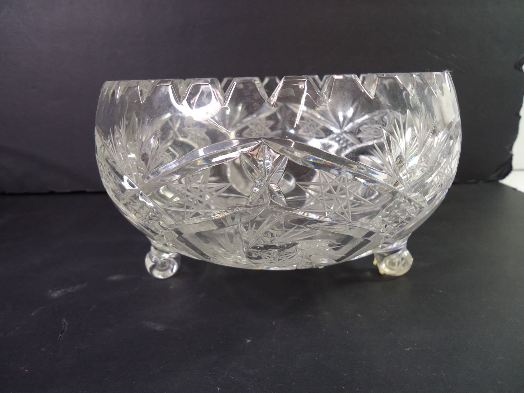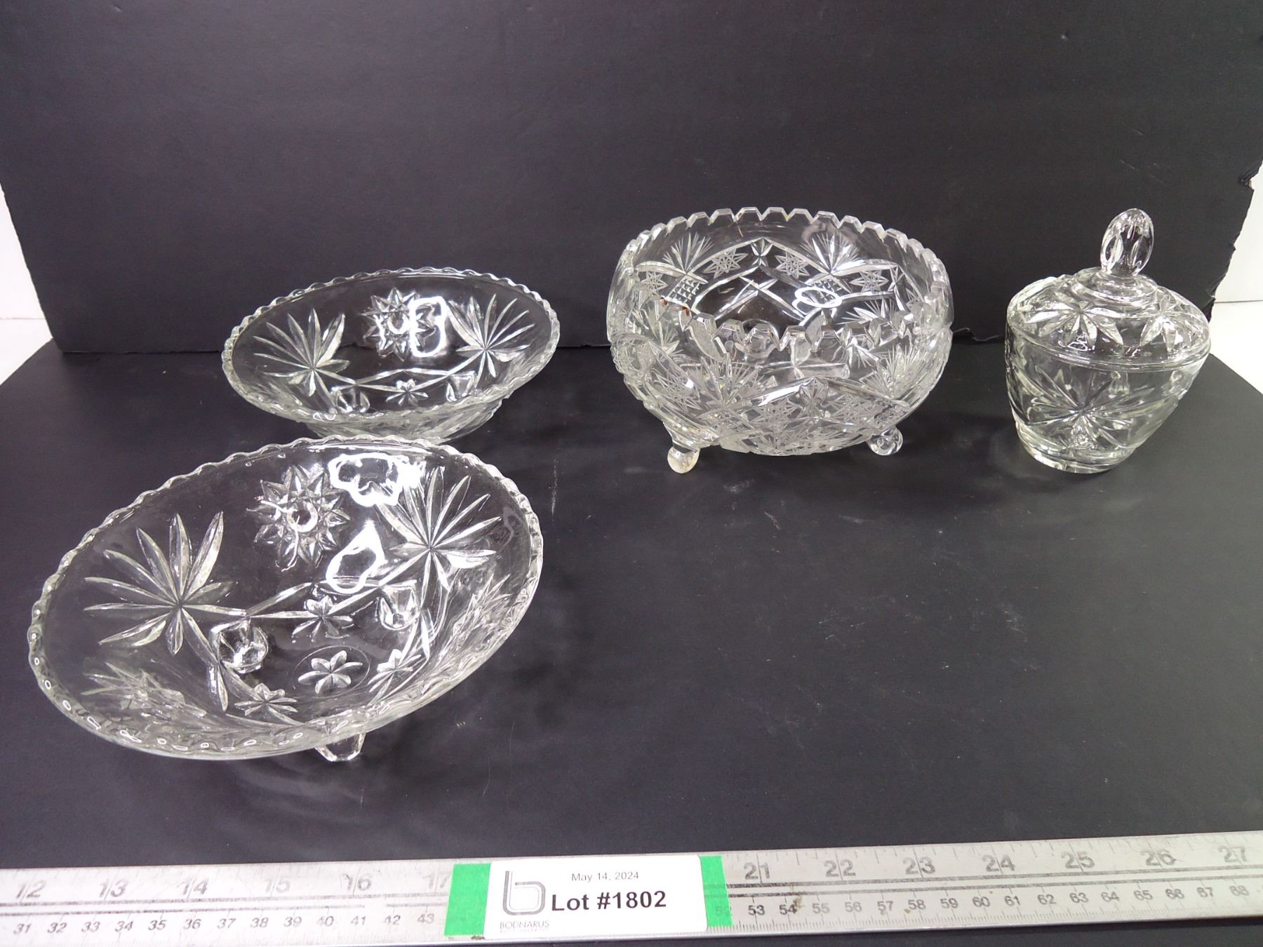 Crystal Footed Fruit Bowl, Cut Glass Sugar Bowl and (2) Clear Glass Bowls