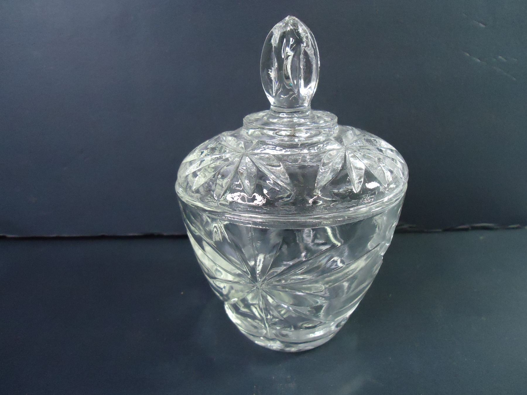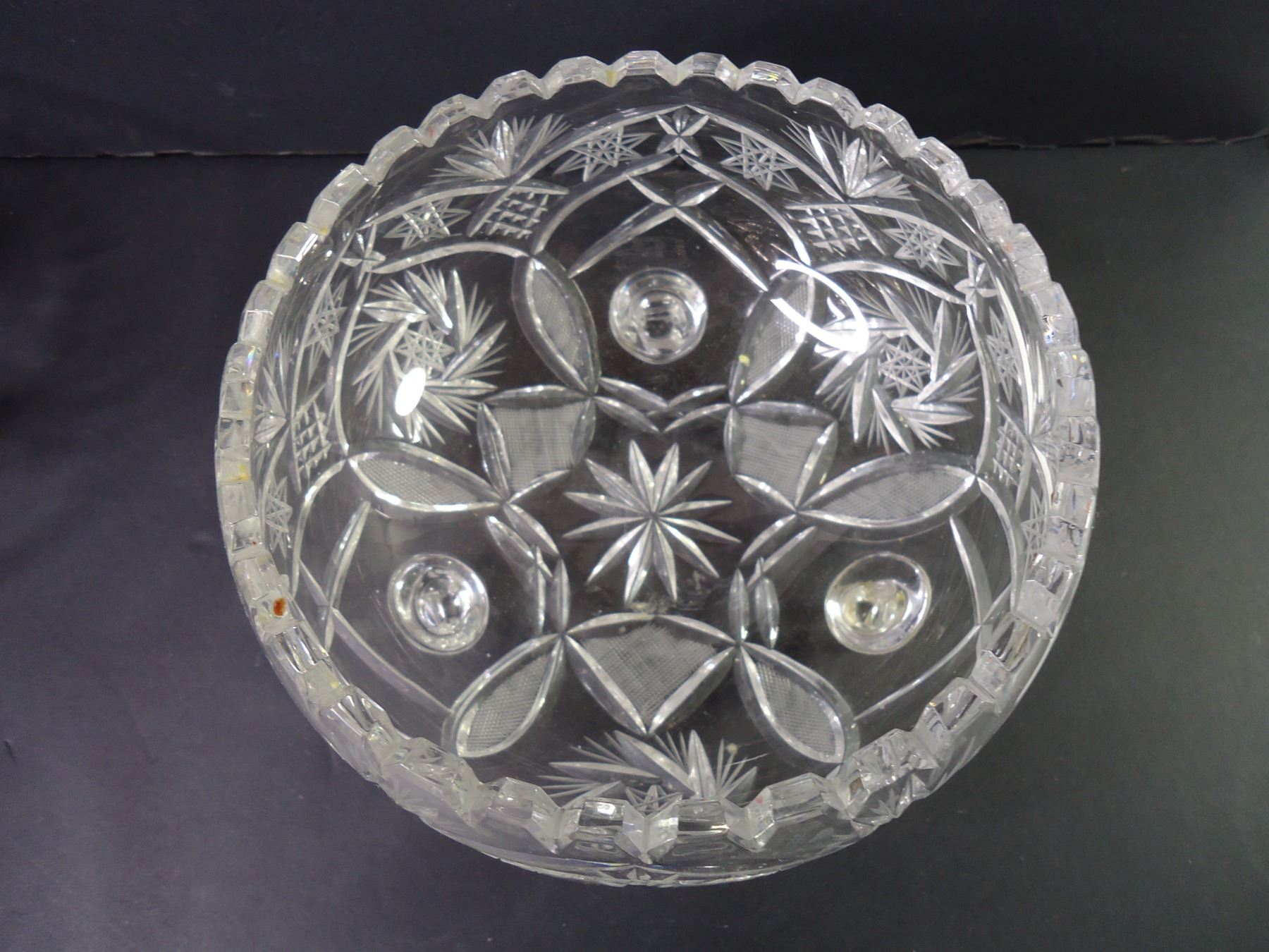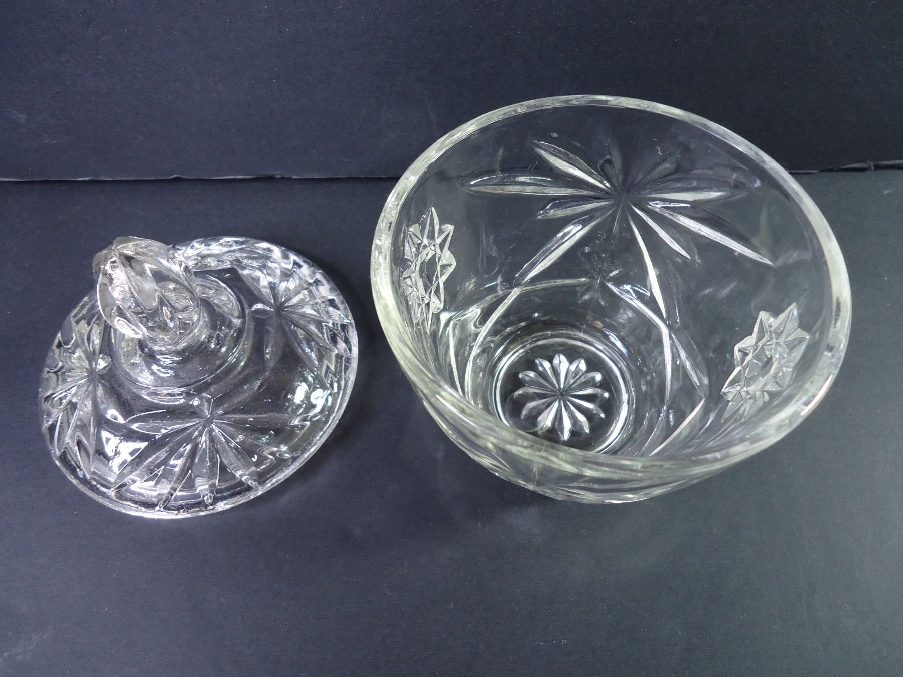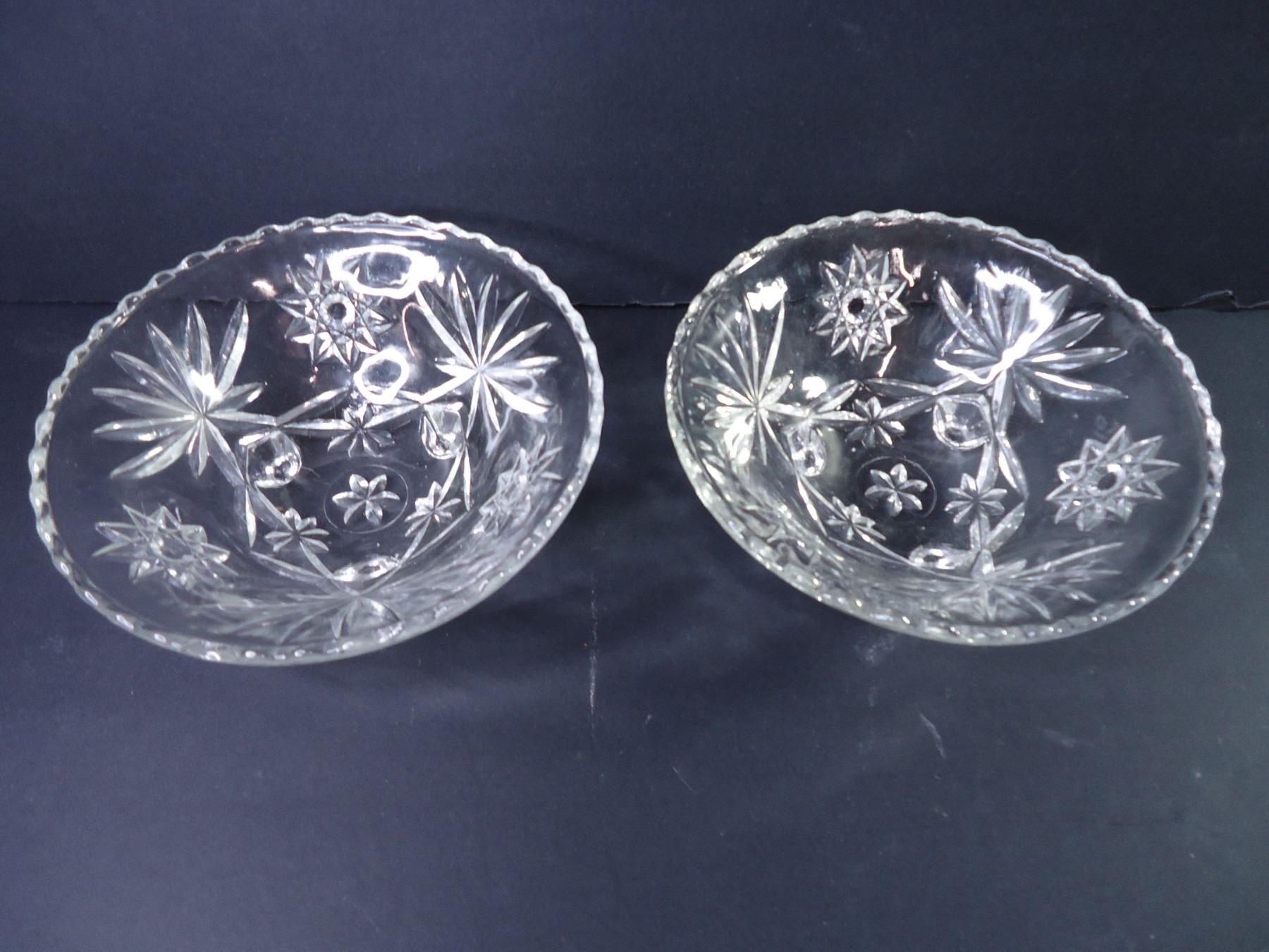 Crystal Footed Fruit Bowl, Cut Glass Sugar Bowl and (2) Clear Glass Bowls
