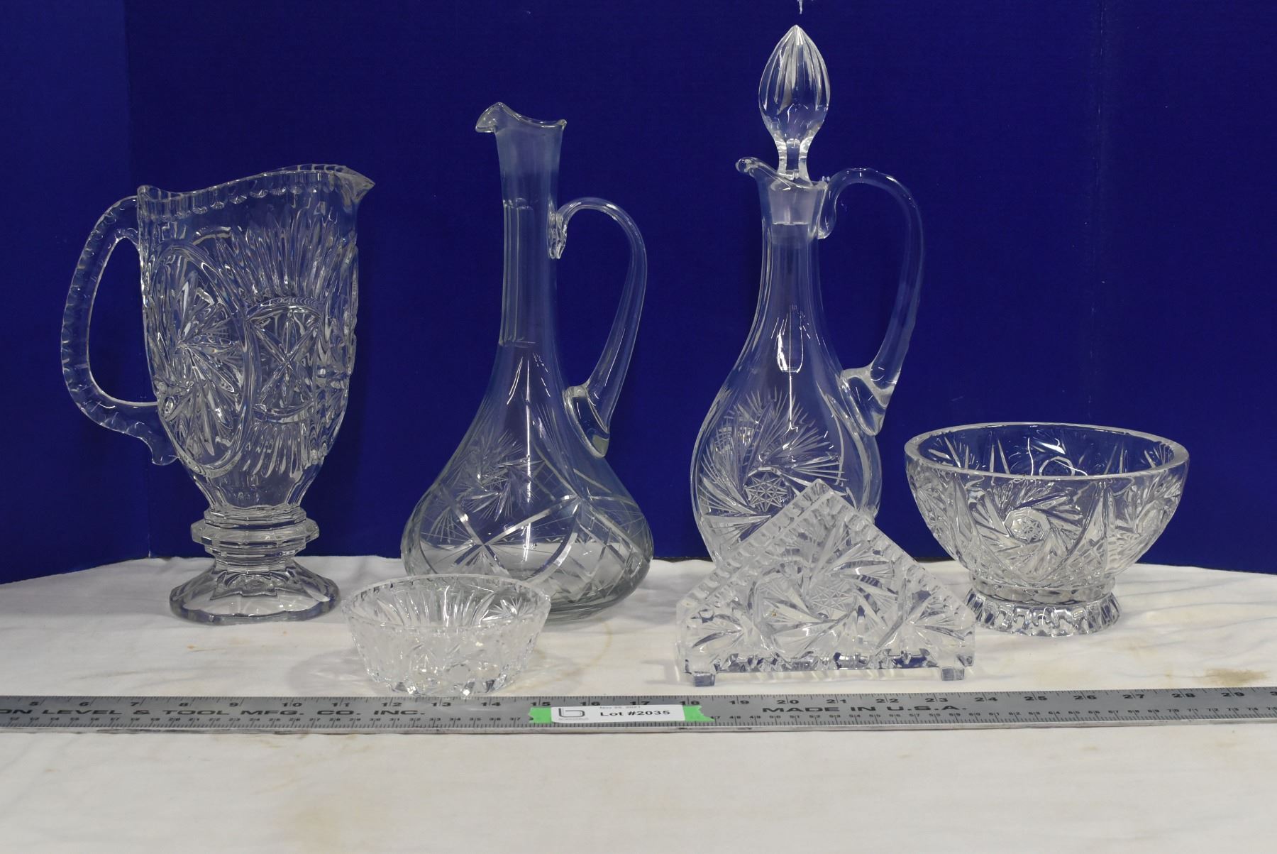 Crystal Glass Decanters, Candy Bowl & Napkin Holder