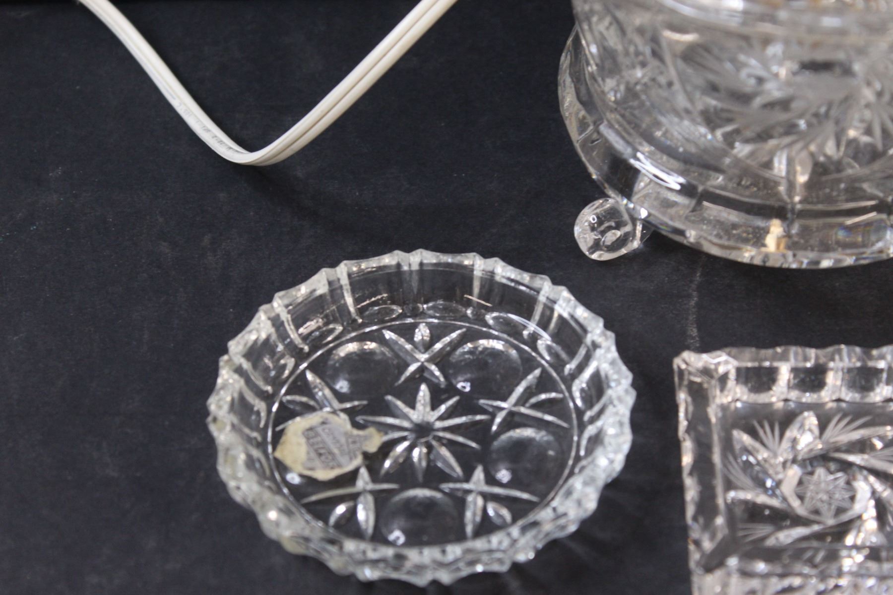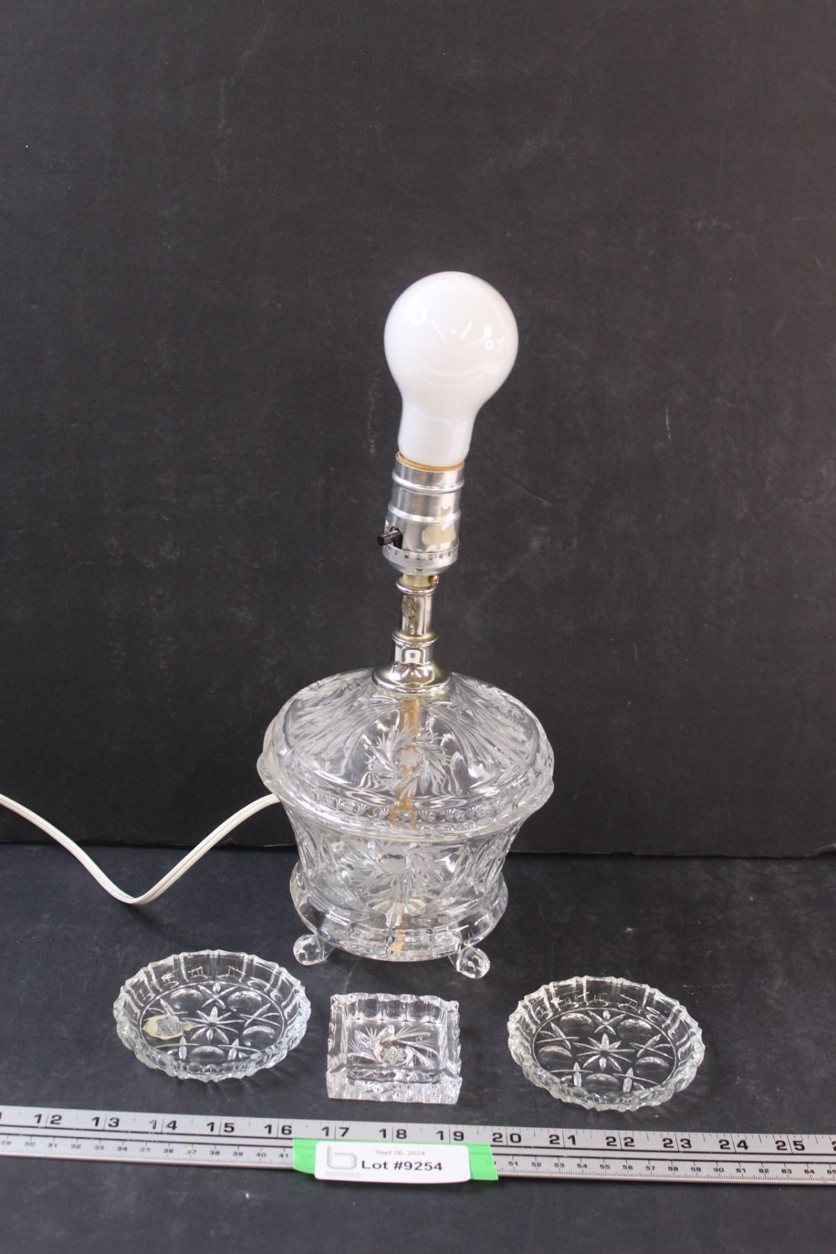 Crystal Lamp (Works) & (2) Coasters & Ashtray Set
