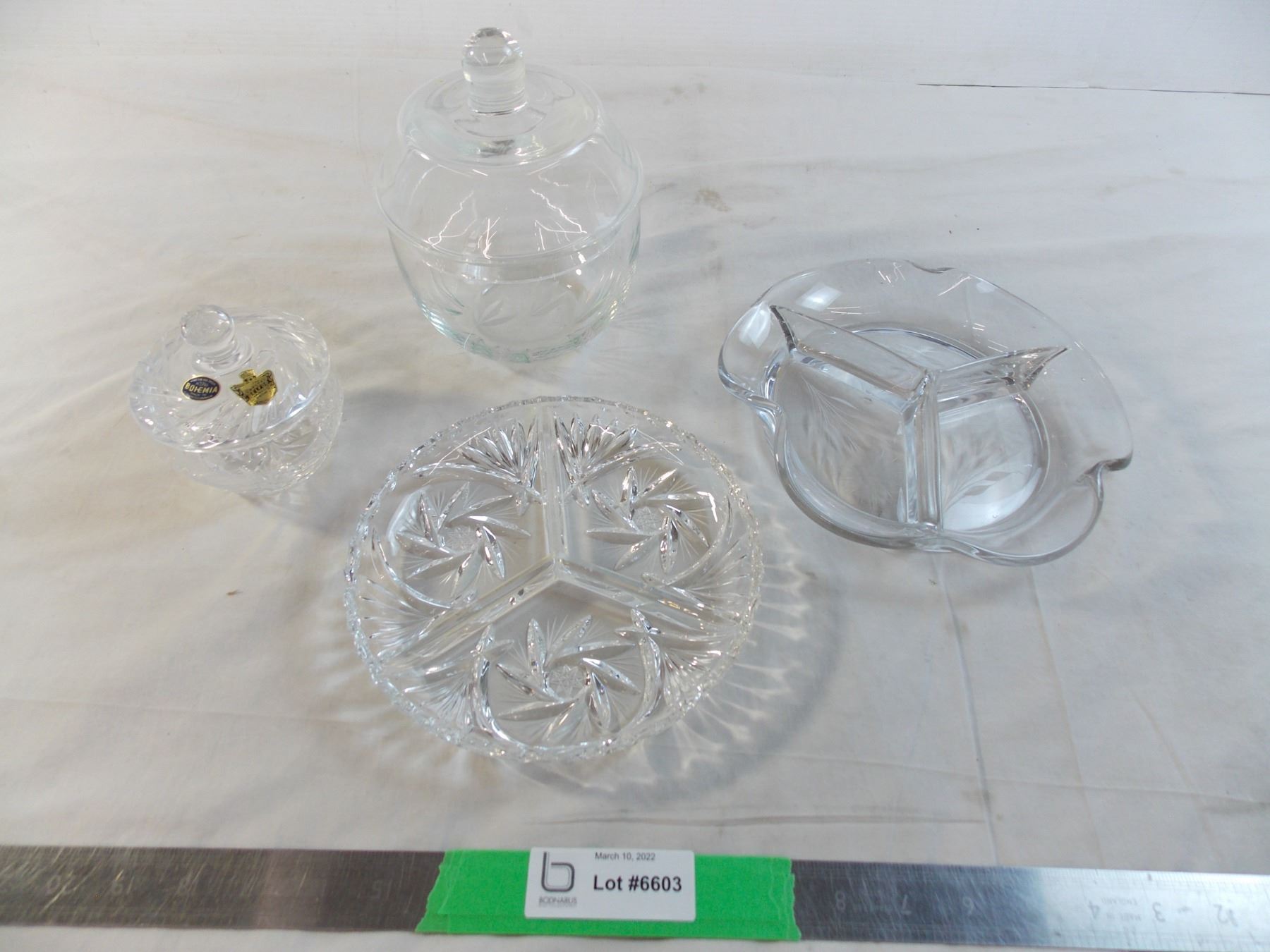 Crystal candy dish, cut glass divided dish, misc glassware