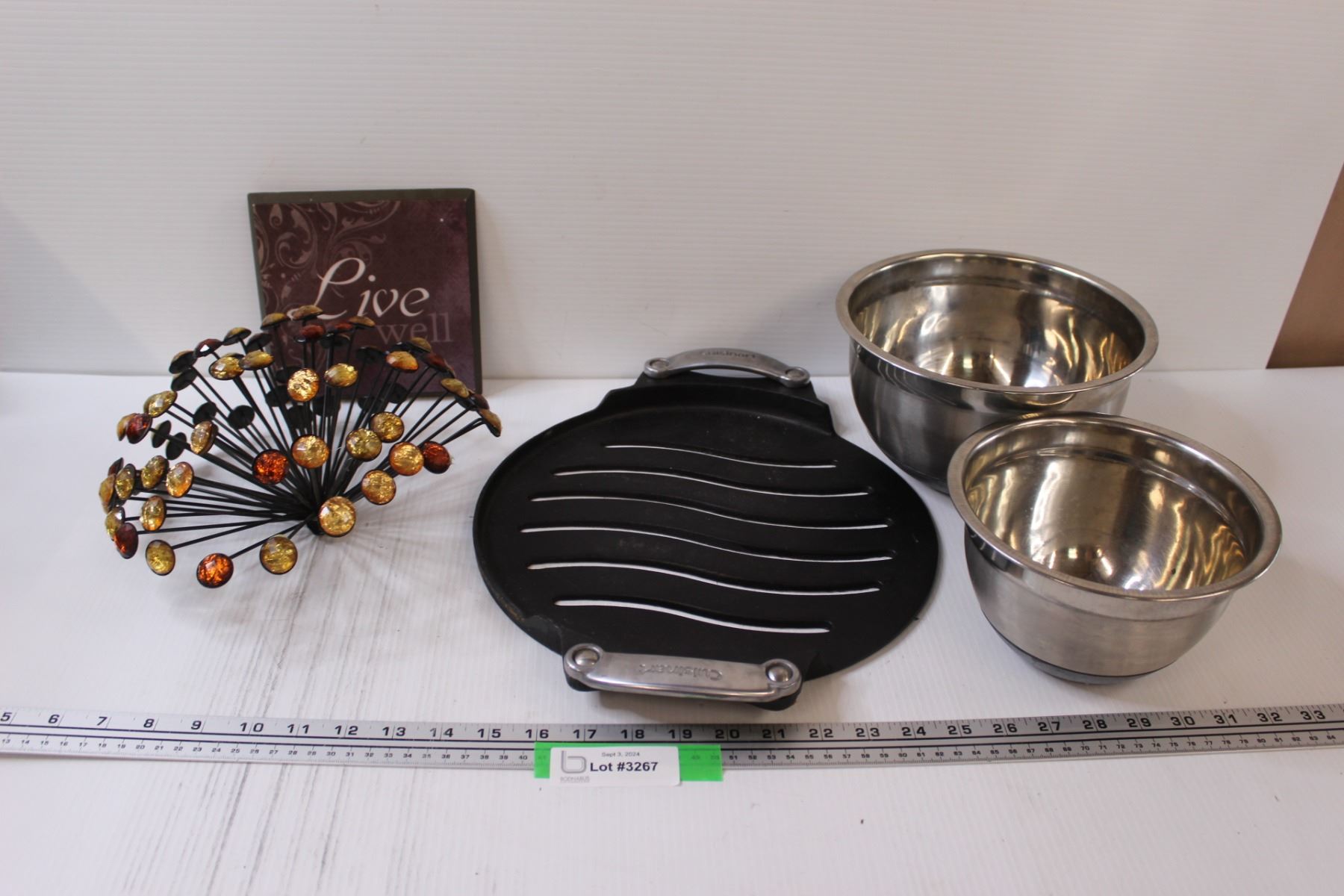 Cuisinart Gril, (2) Mixing Bowls, (2) Home Decor Items