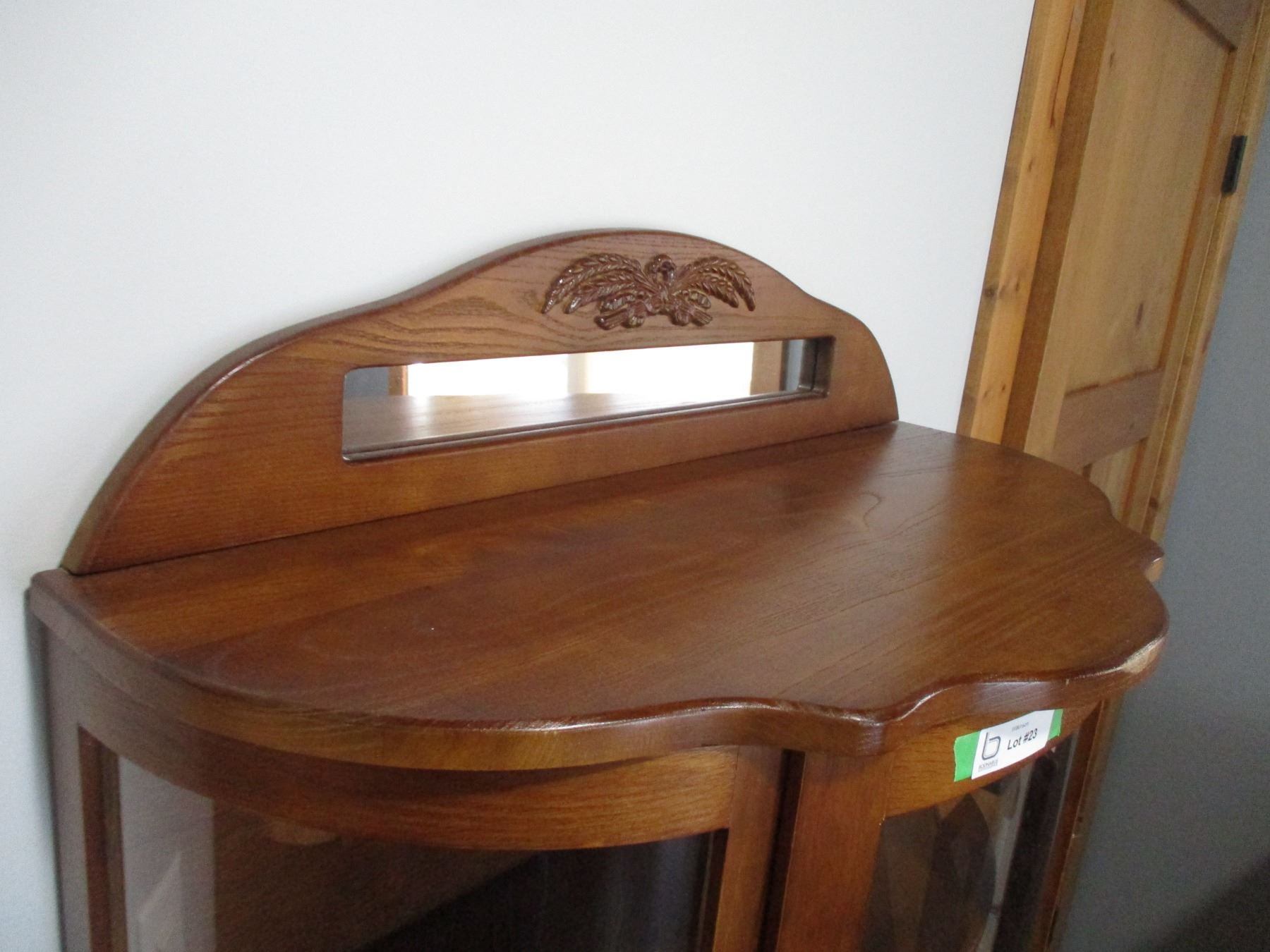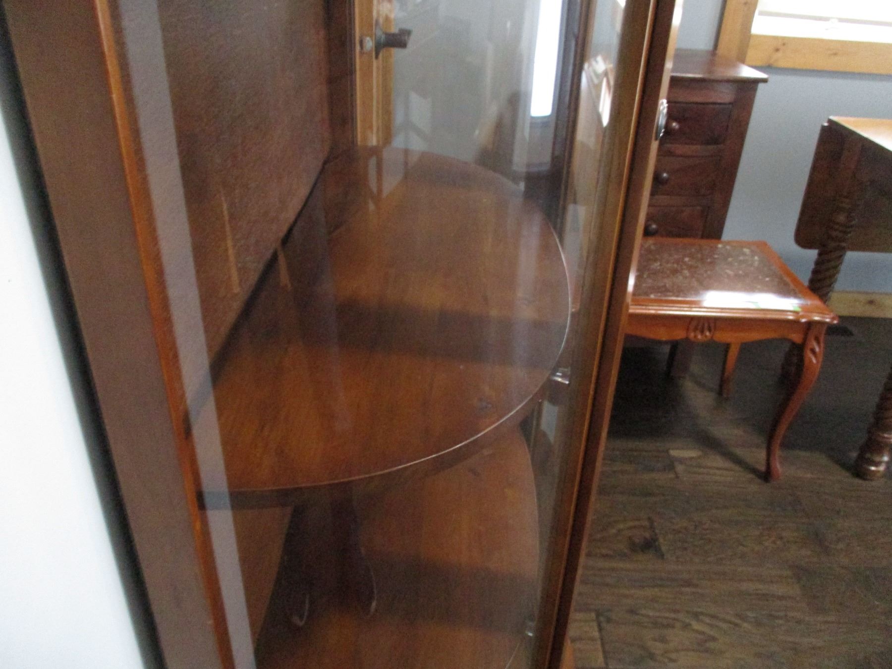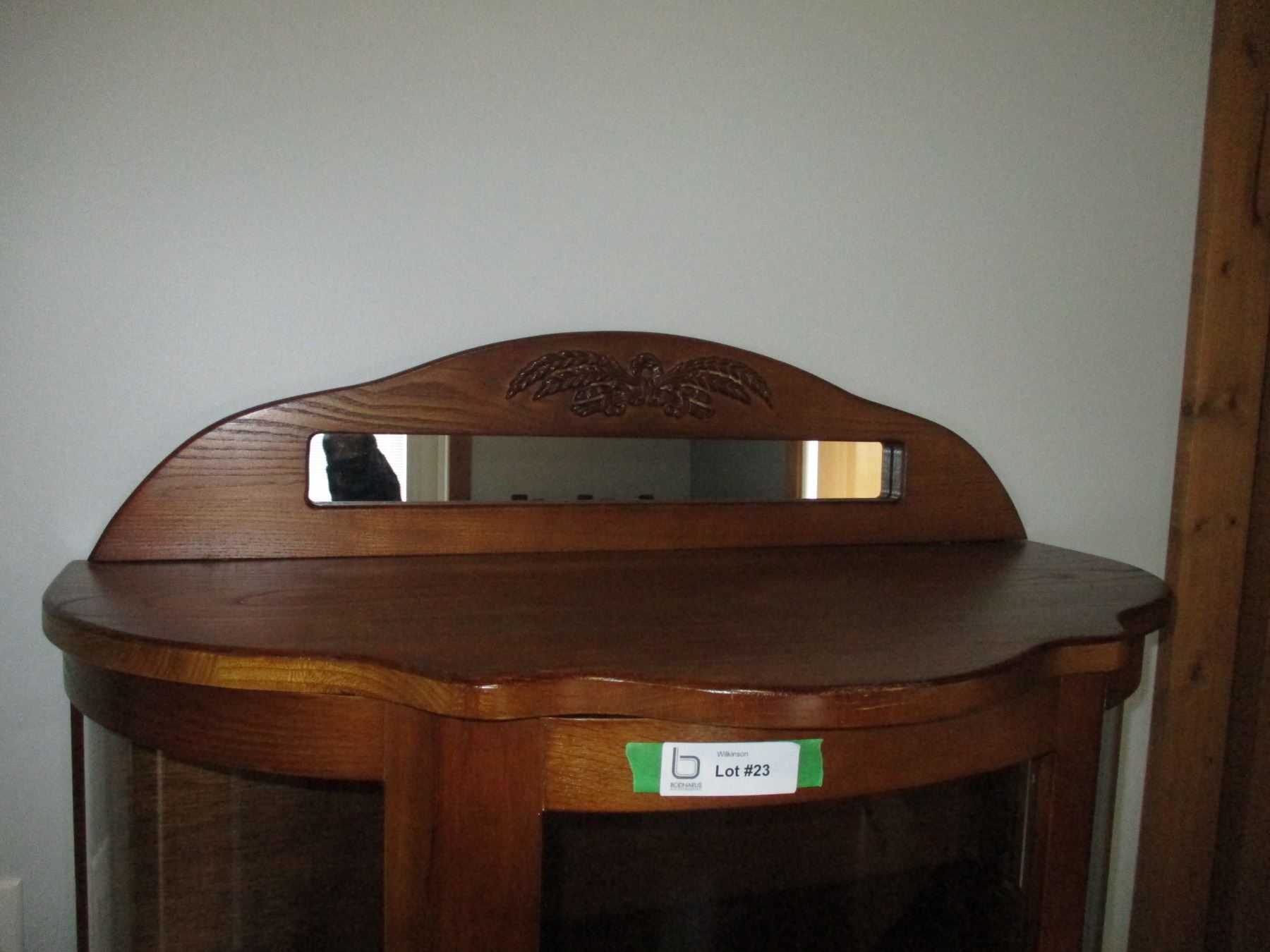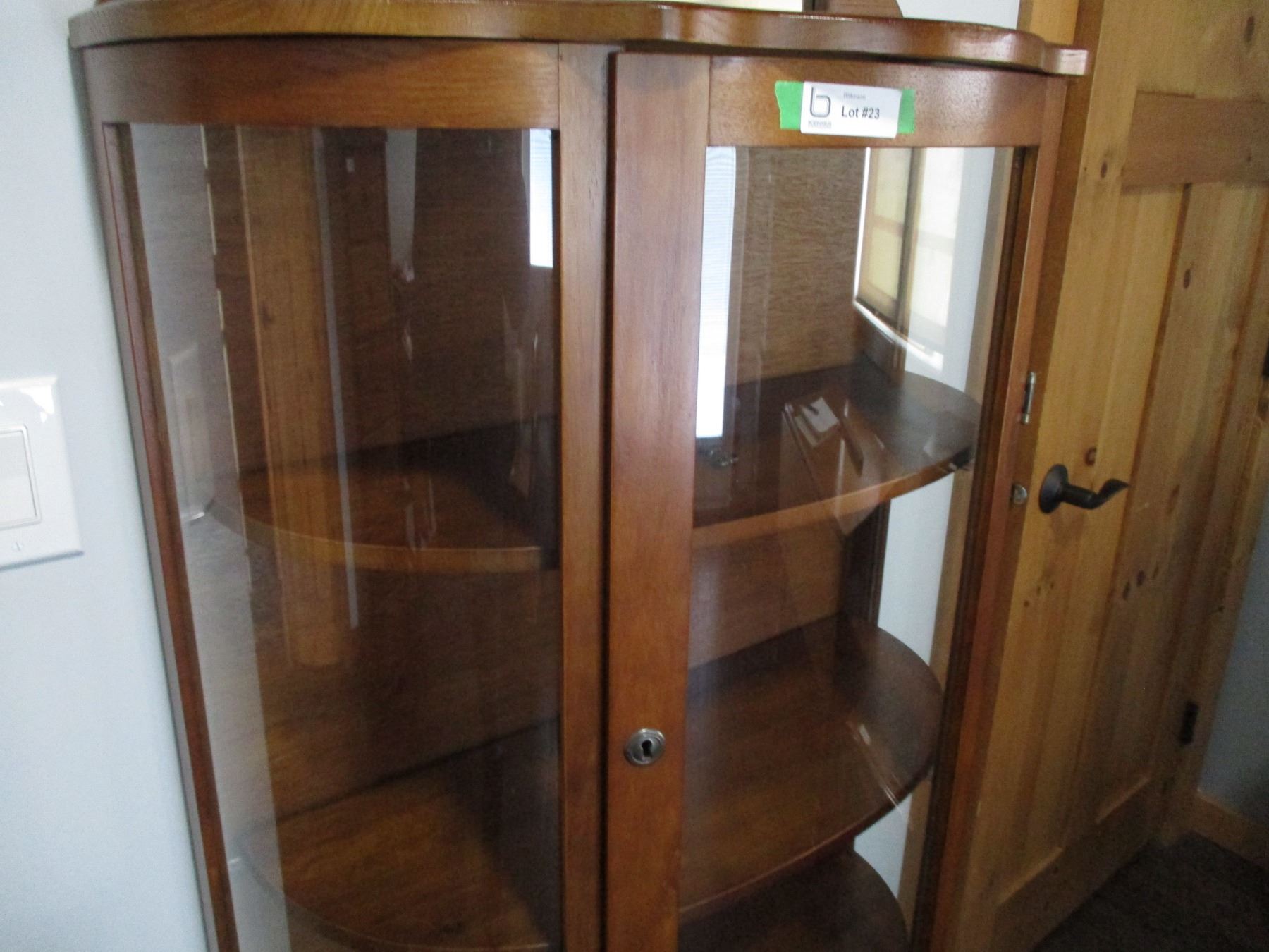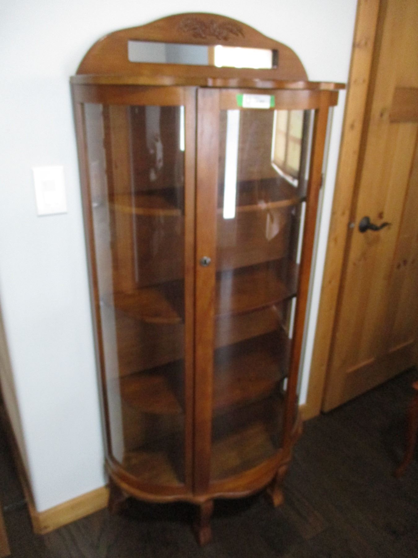 Curved Glass China Cabinet with Small Mirror (31 x 13 x 63")