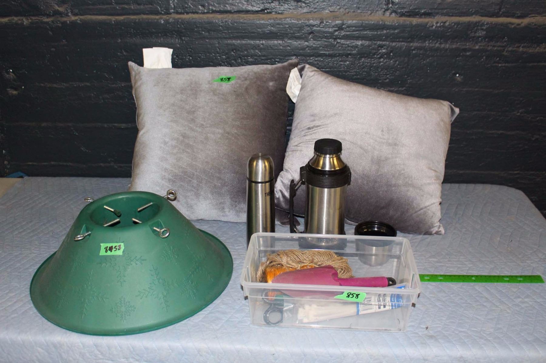 Cushions (2), Thermos (2), Garden Tools & Christmas Tree Stand