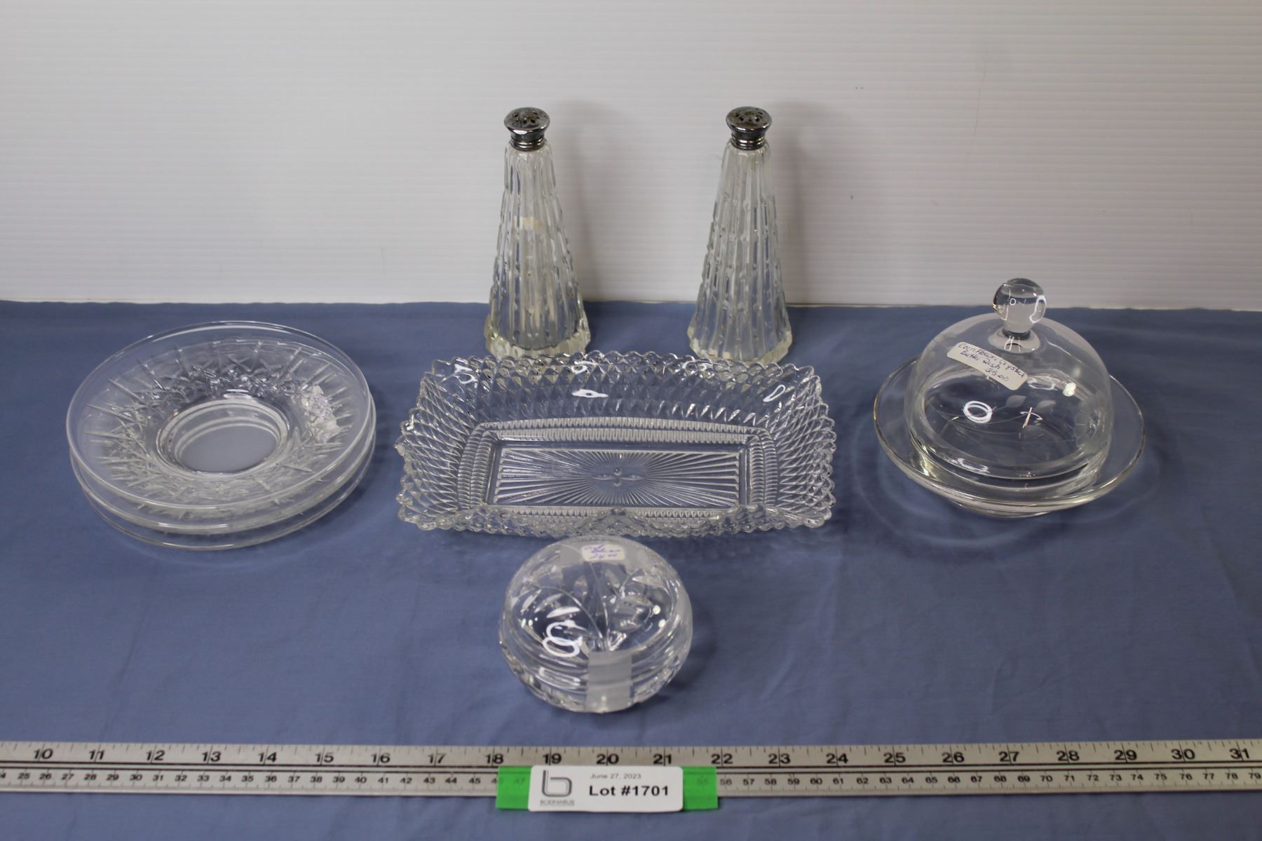 Cut Glass Dish w/Lid - Cornflower Crystal Dish w/lid - Sat & Pepper Shakers - Glass Plates - Cut Glass Dish