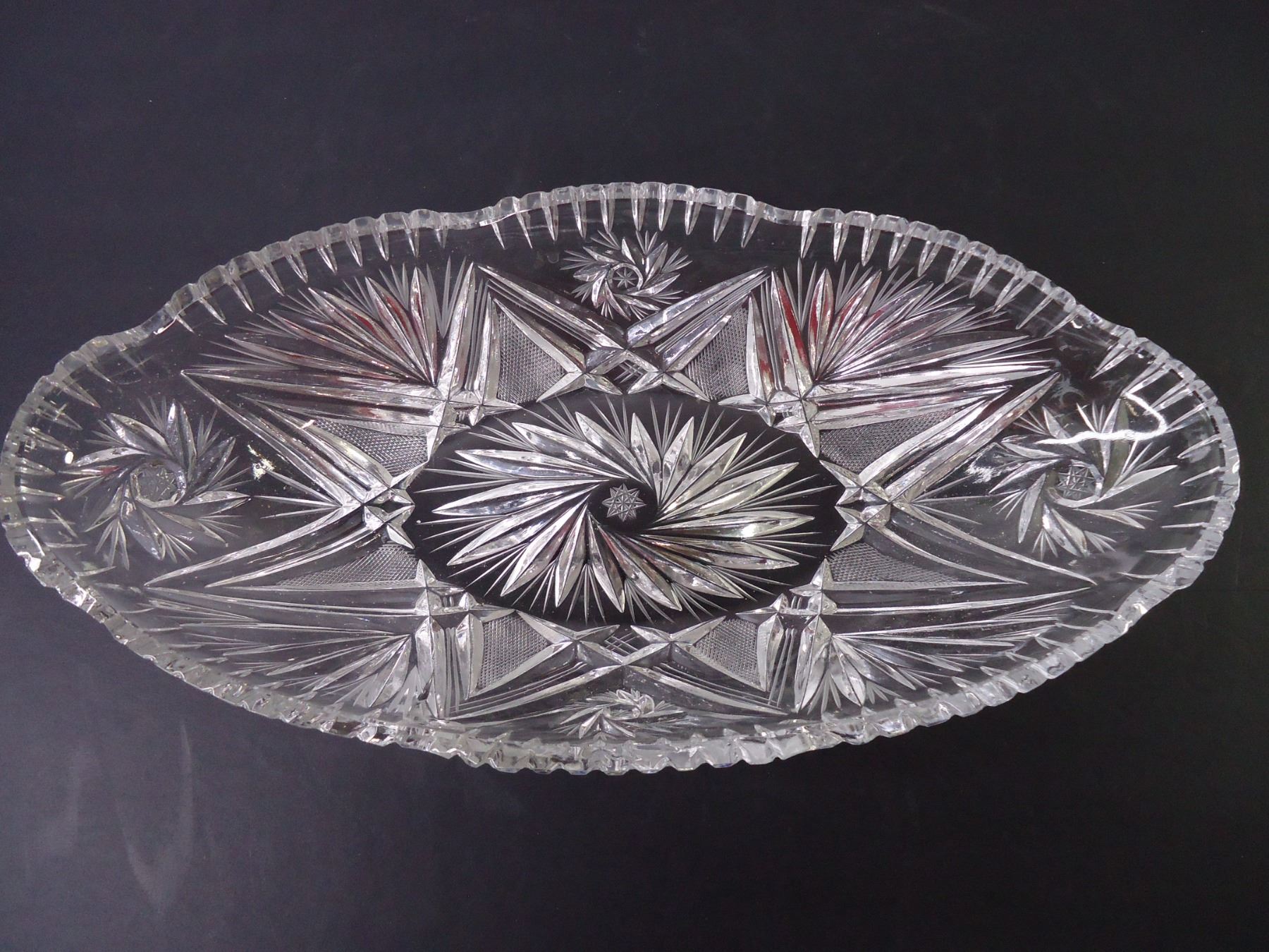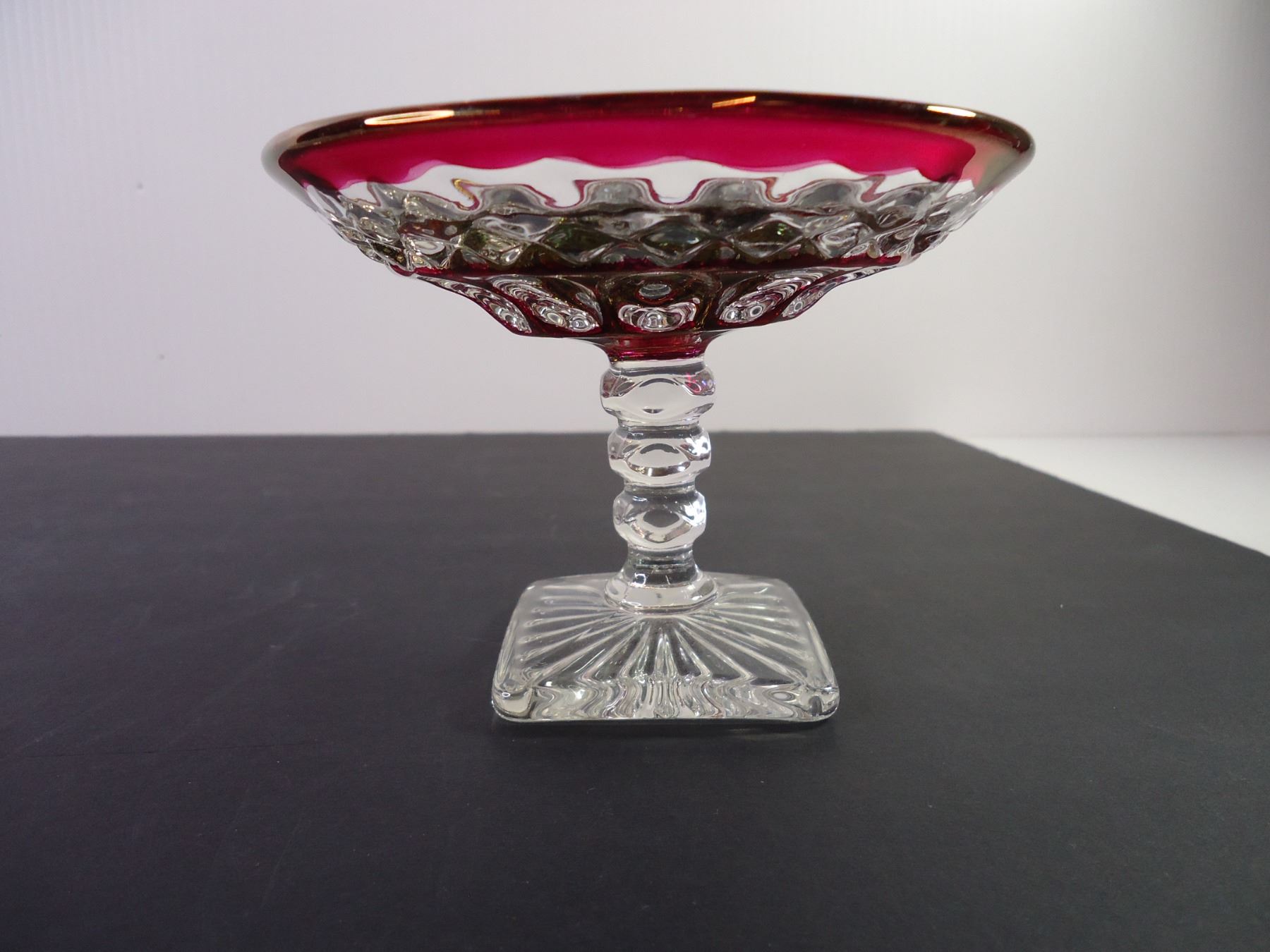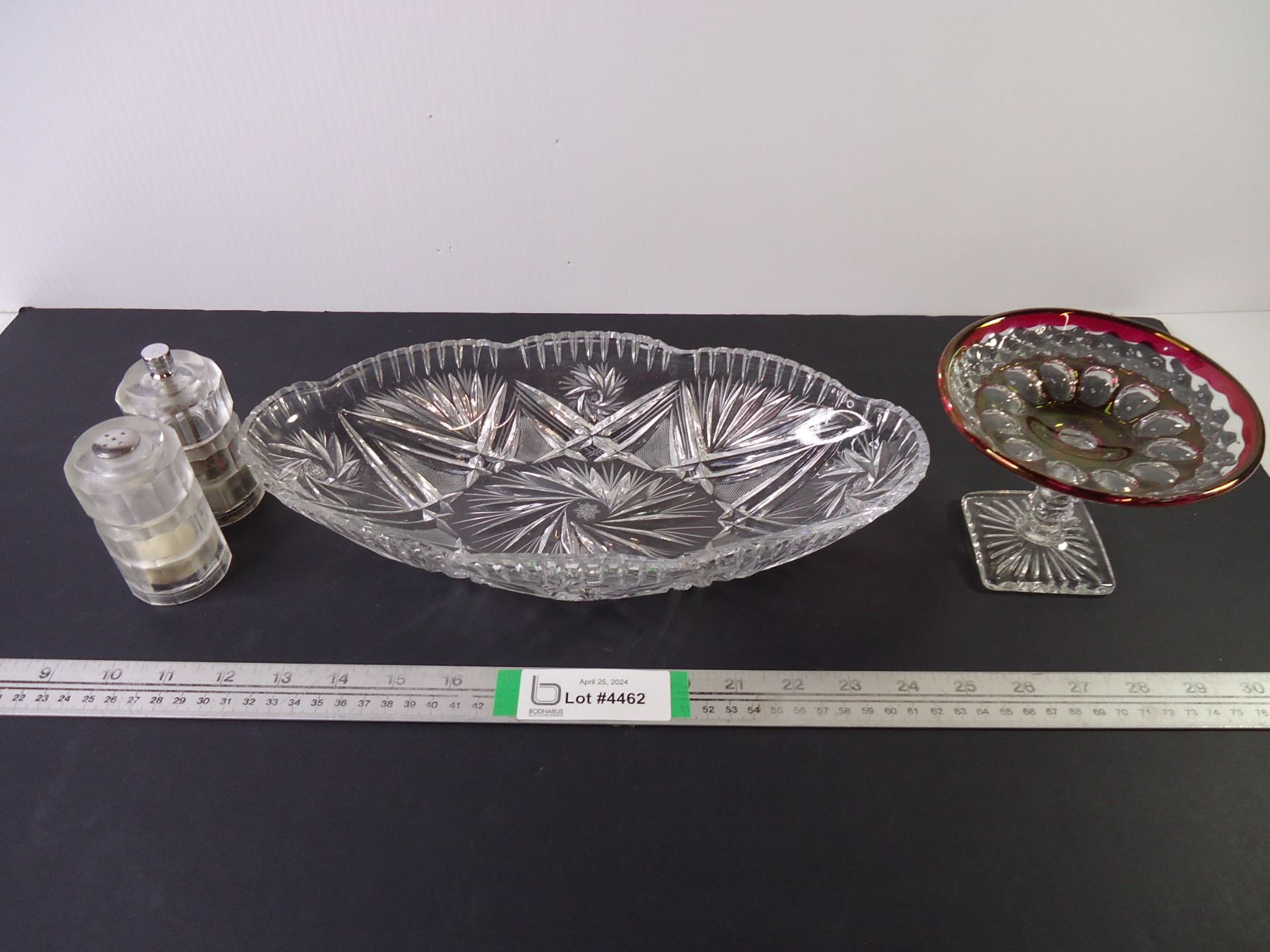 Cut Glass Oval Bowl, Vintage Cranberry Glass Pedestal Dish and Salt/Pepper Set