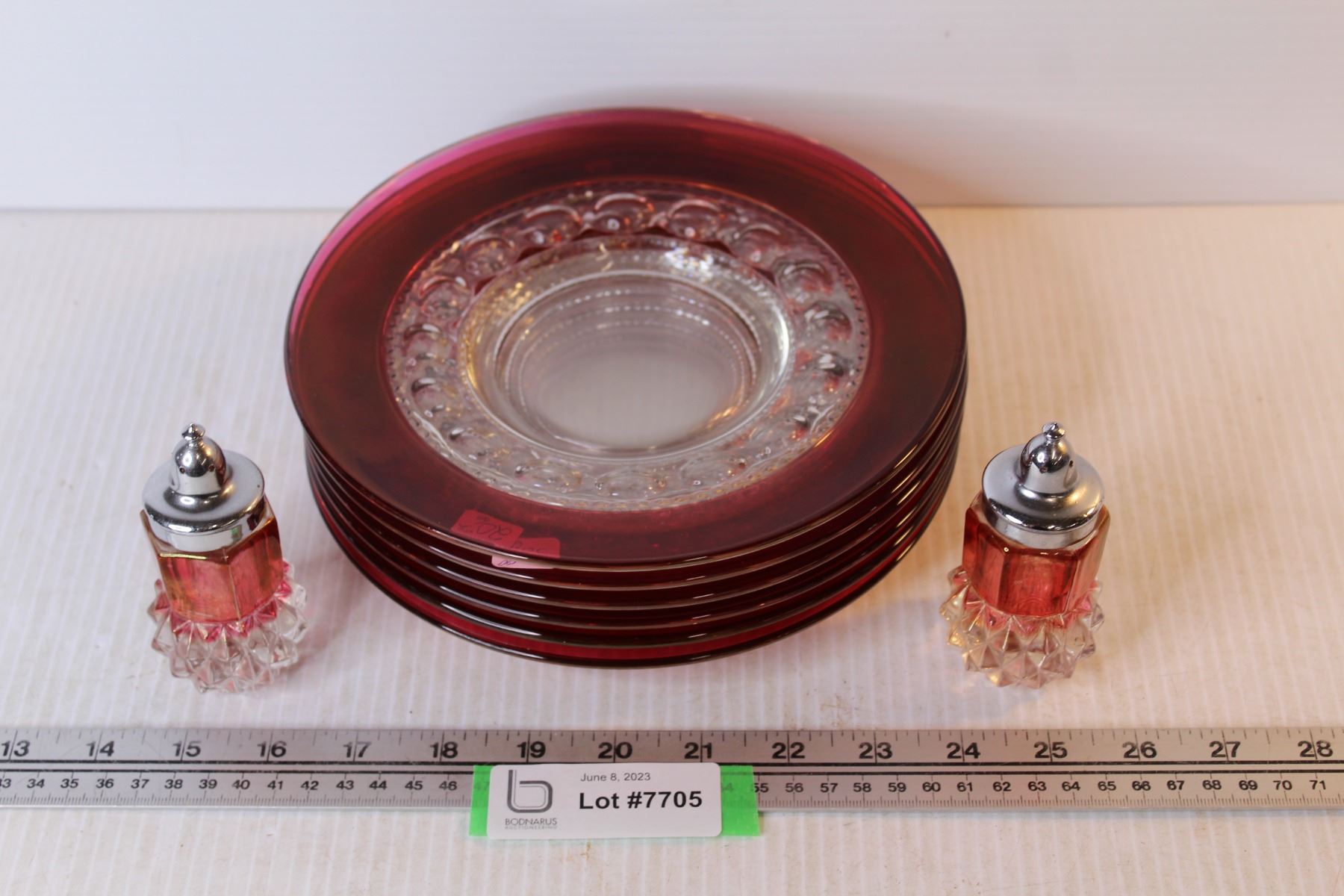 Cut Glass Salt & Pepper Shakers (6) Plates