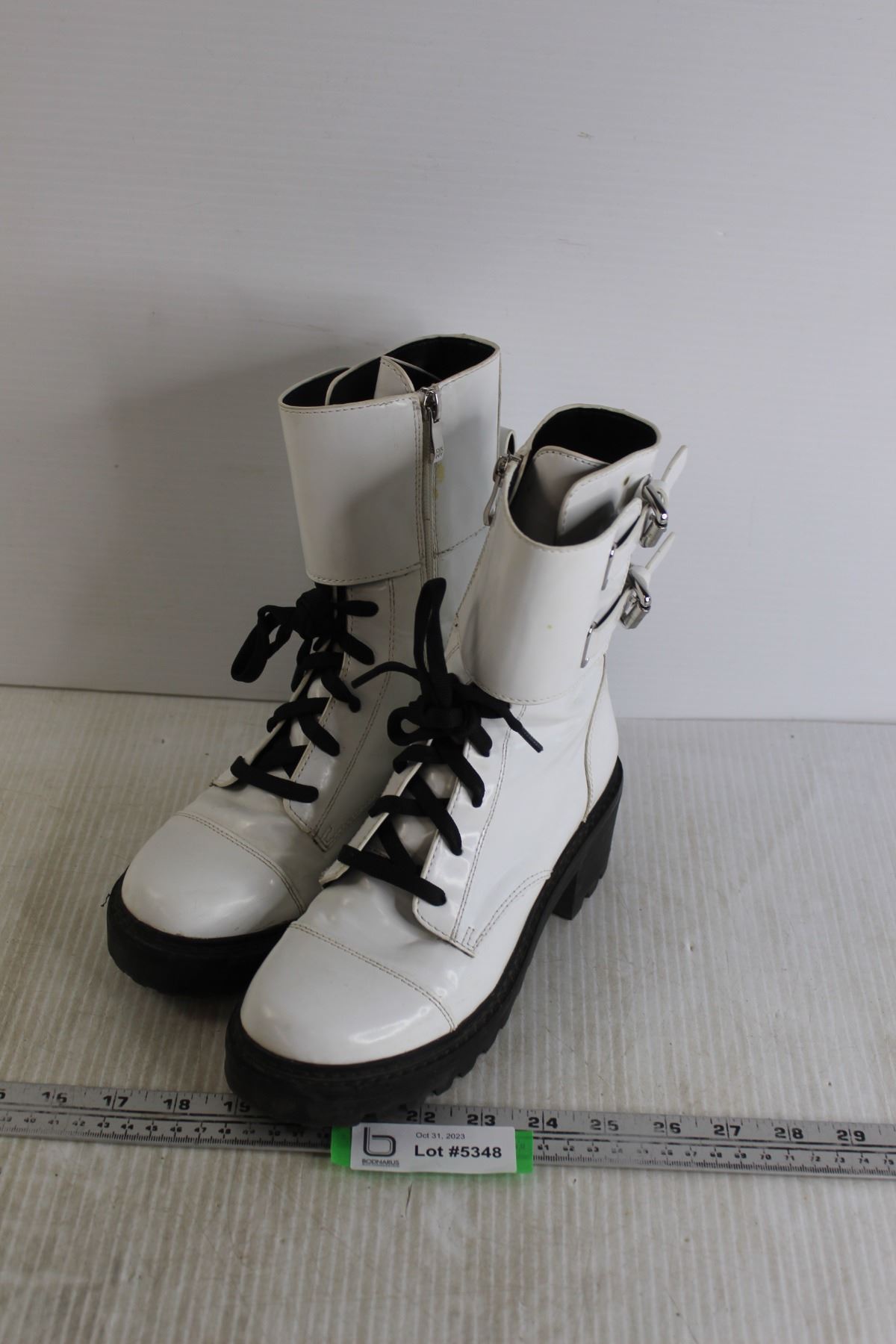 DKNY White and Black Punk-esque Boots - Small Stain, Size 7