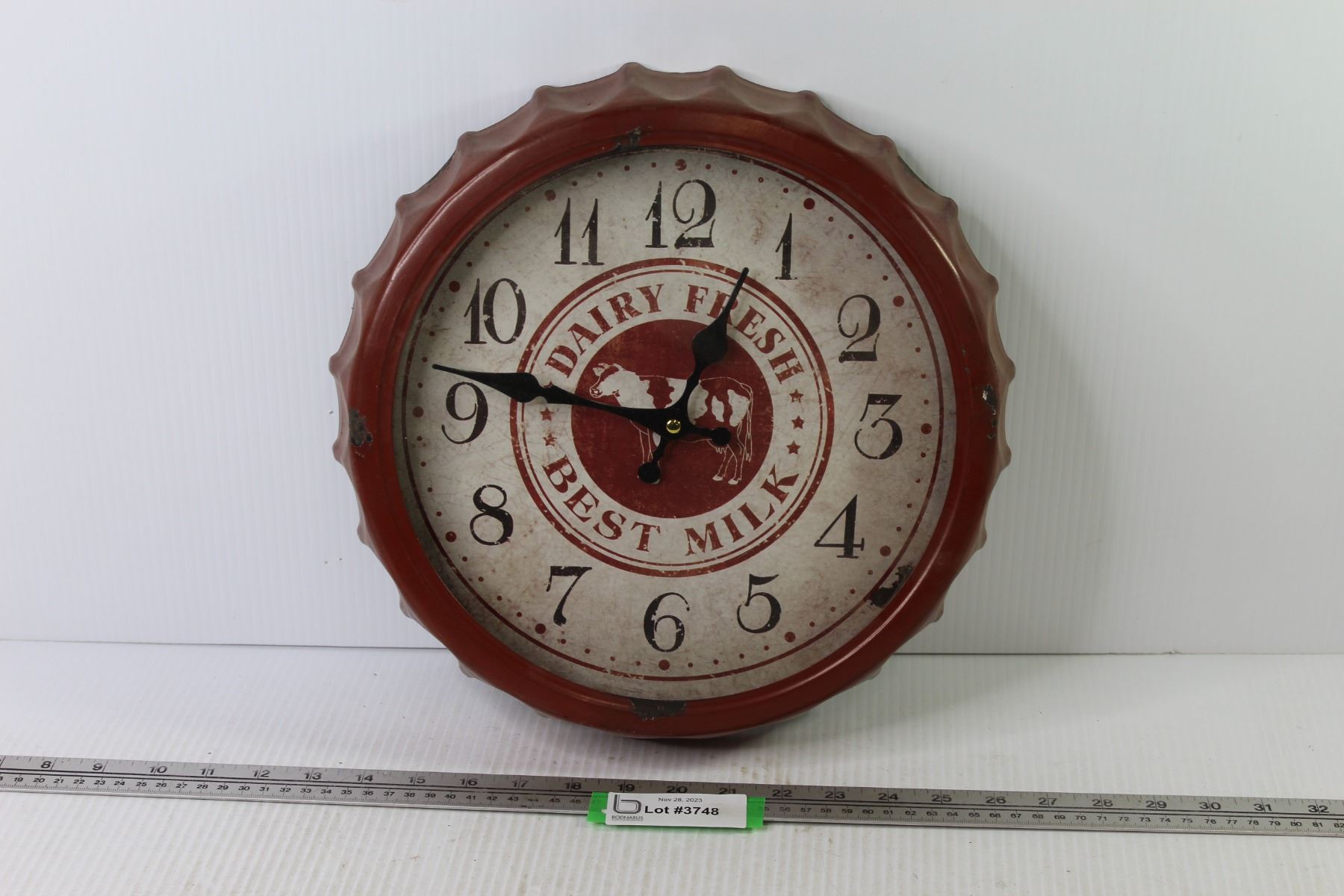 Dairy Fresh Metal Cap wall Clock (not running - battery operated - has chips & wear)