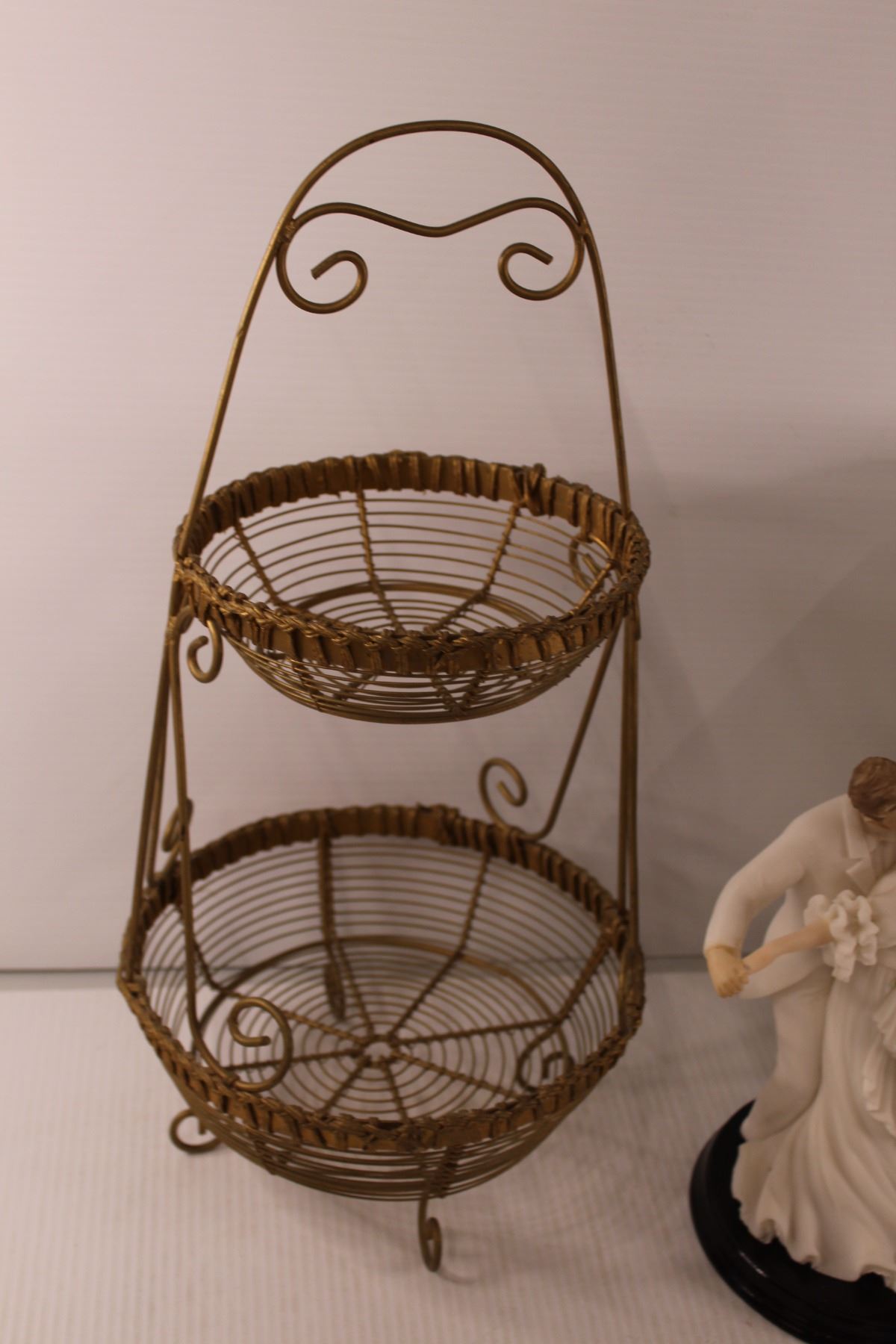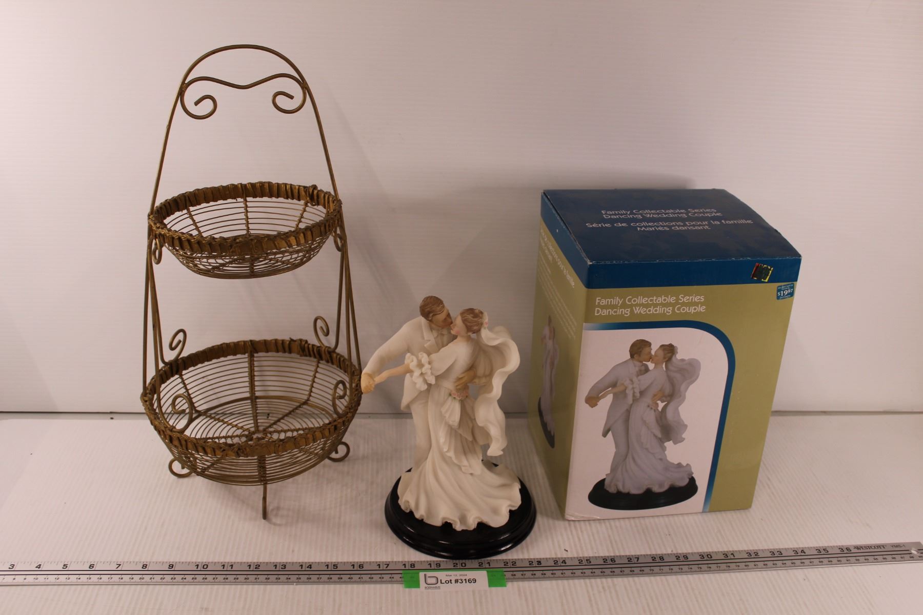 Dancing Wedding Couple Statue -NIB, 2-Tier Metal Basket