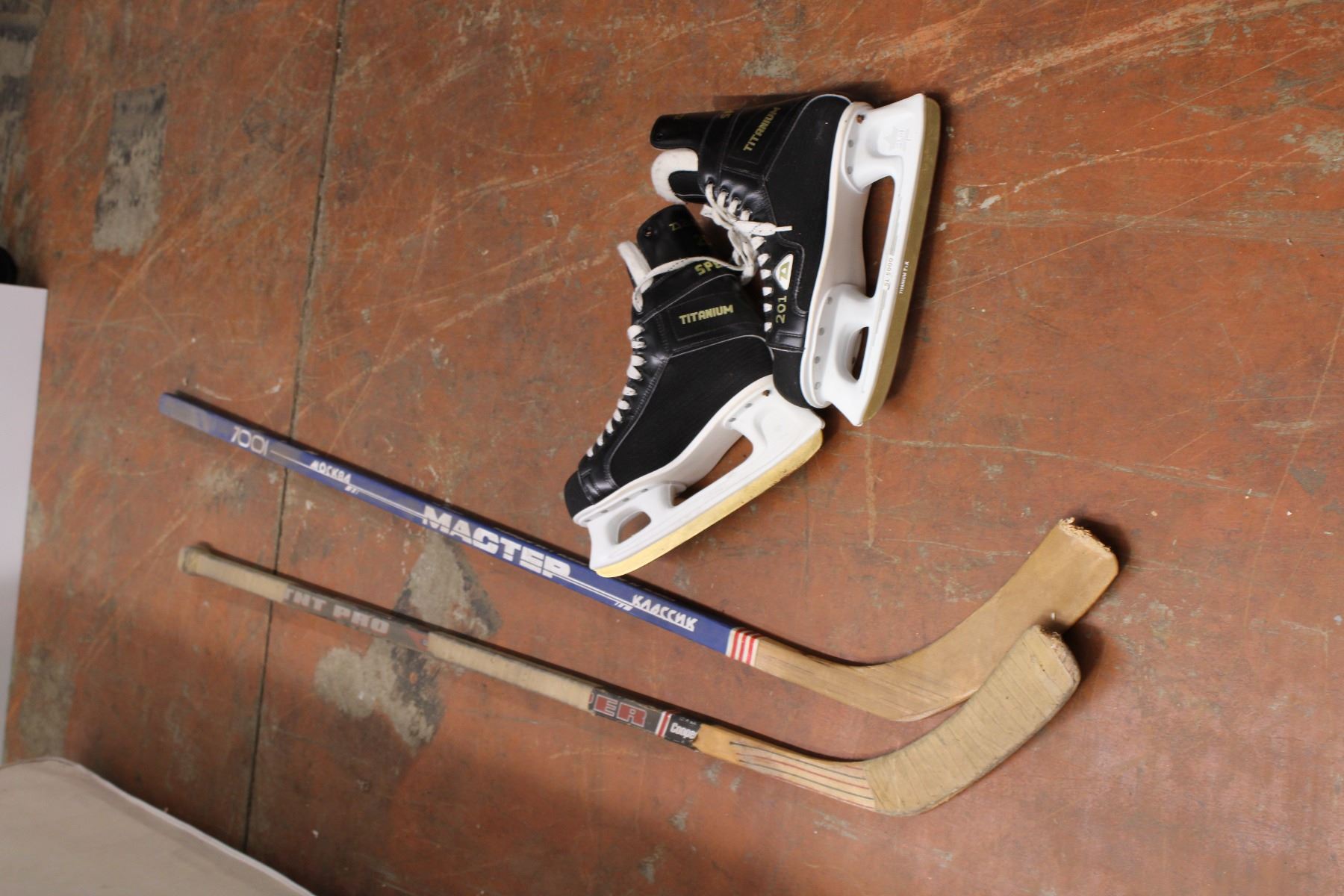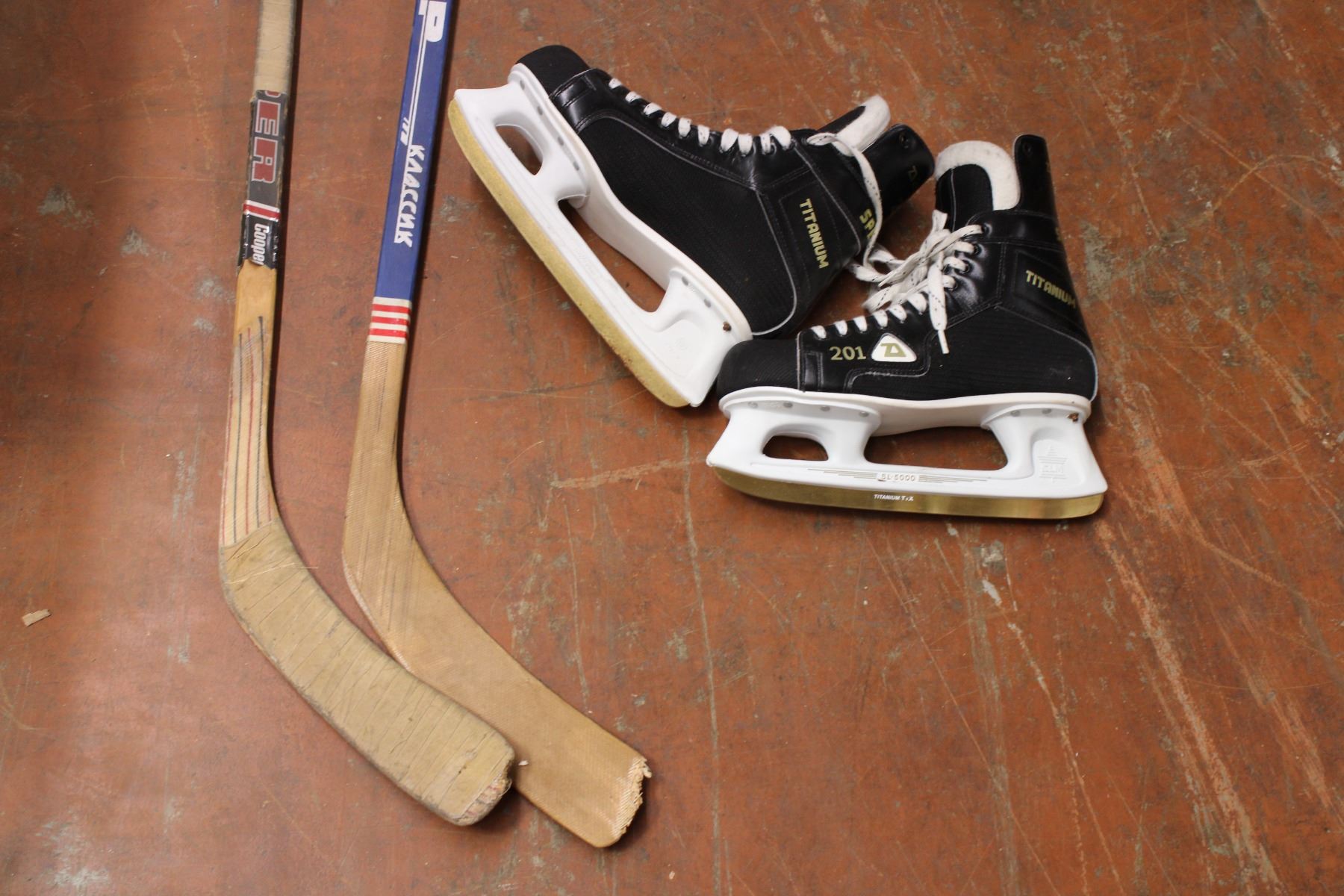 Daoust Titanium 201 Hockey Skates (SL-5000) size 9.5 - and 2 hockey sticks