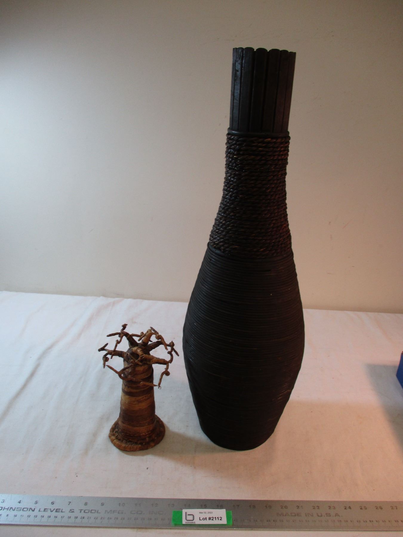 Dark 26" Tall,9" Wide Decorative Container, with 8.5" Tall Ornament(Natural Materials)