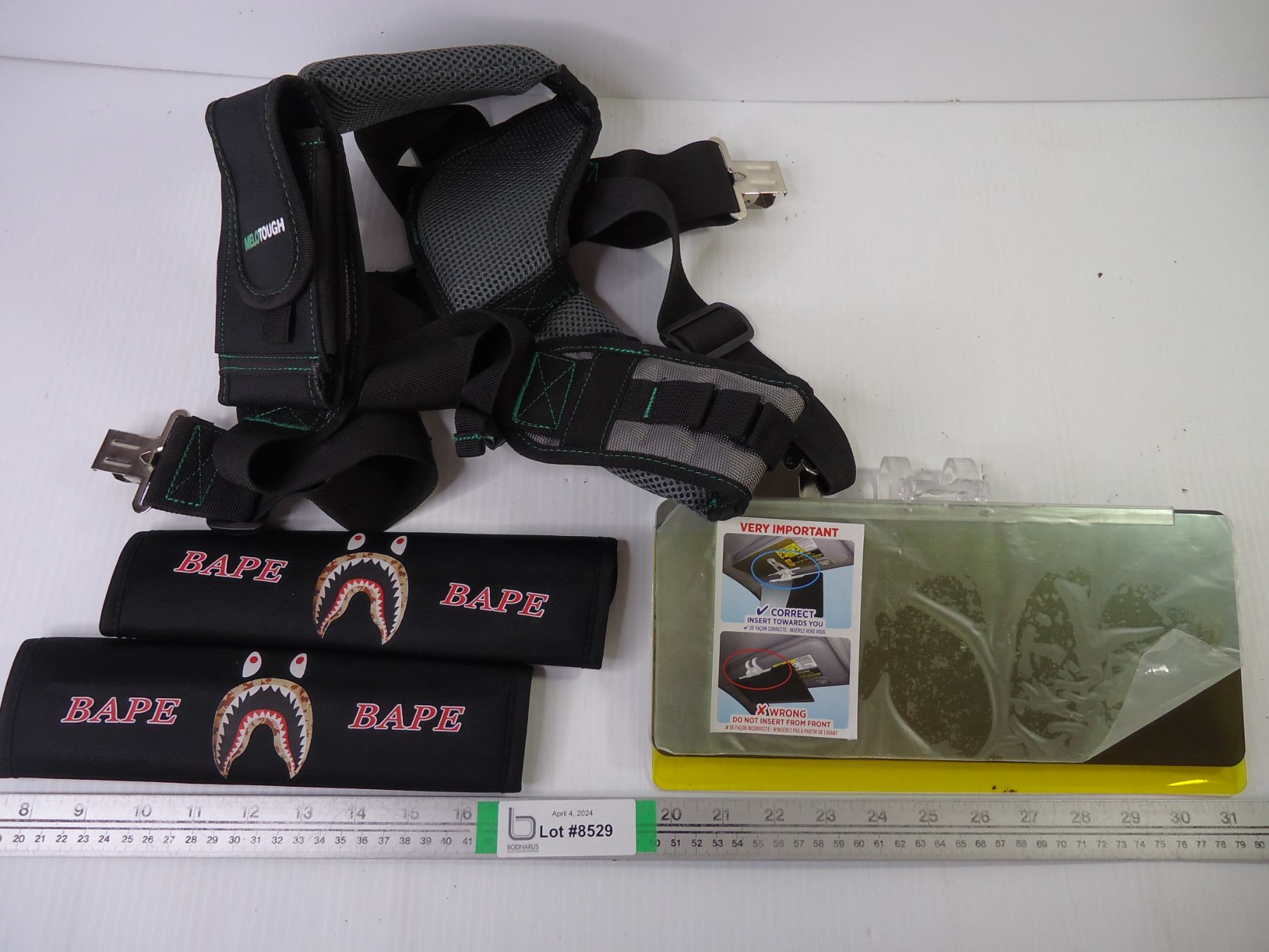 Day and Night Car Visor,(2) Piece Seat Belt Pads and Melo tough Construction Work Suspender Tool Belt Suspenders