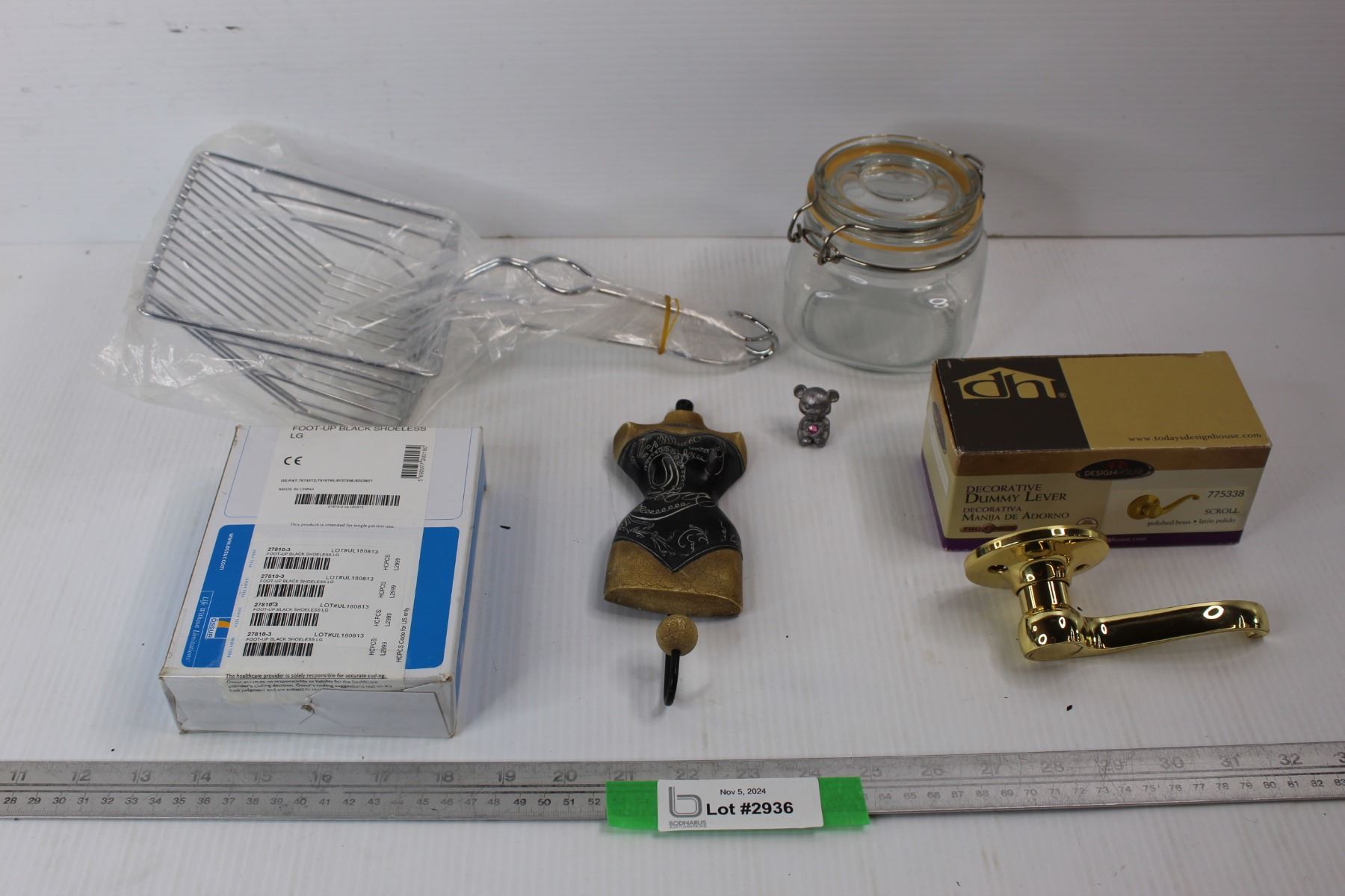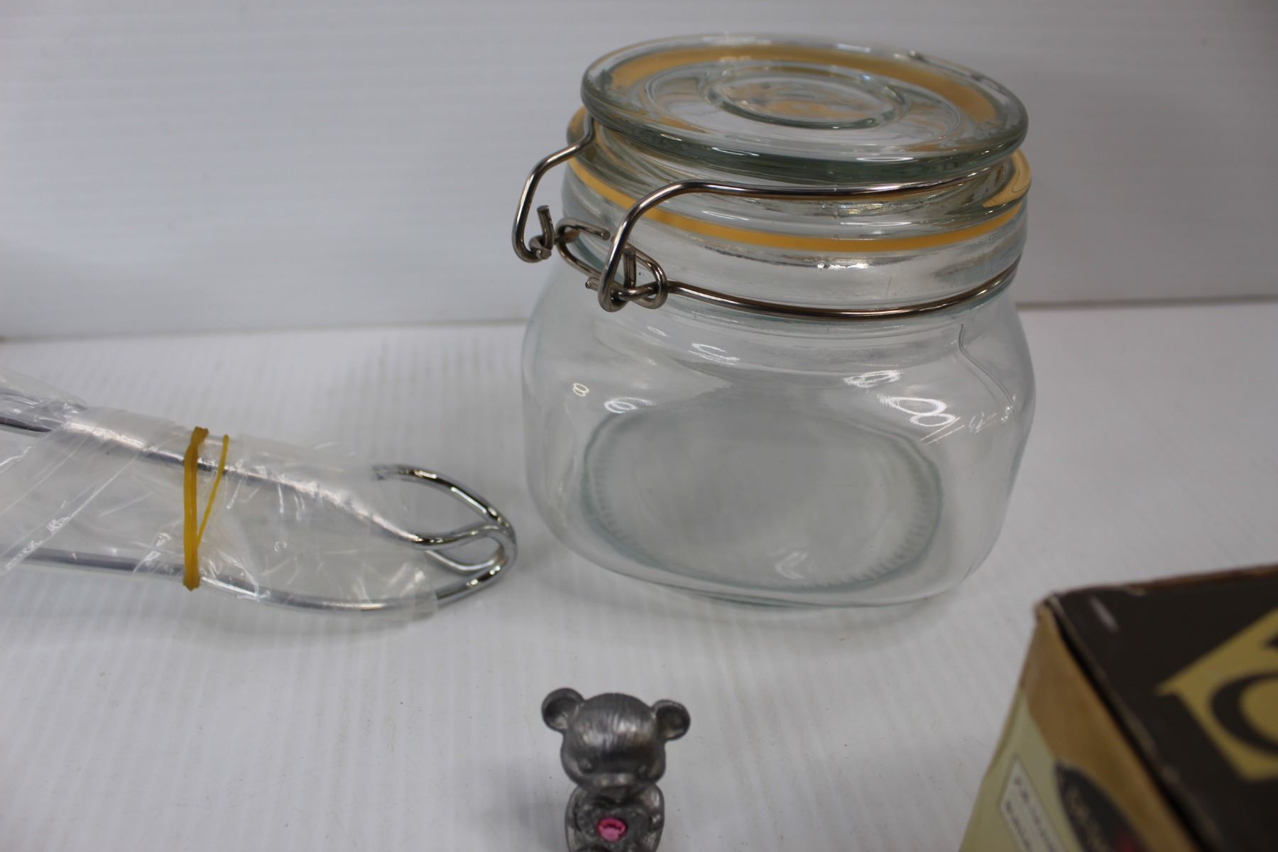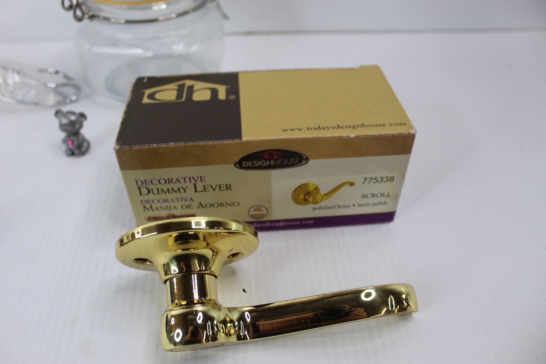 Decorative Dummy Lever Door Knob w/ Box, Small Lead Teddy Bear Decoration, Clear Glass Jar, Misc.