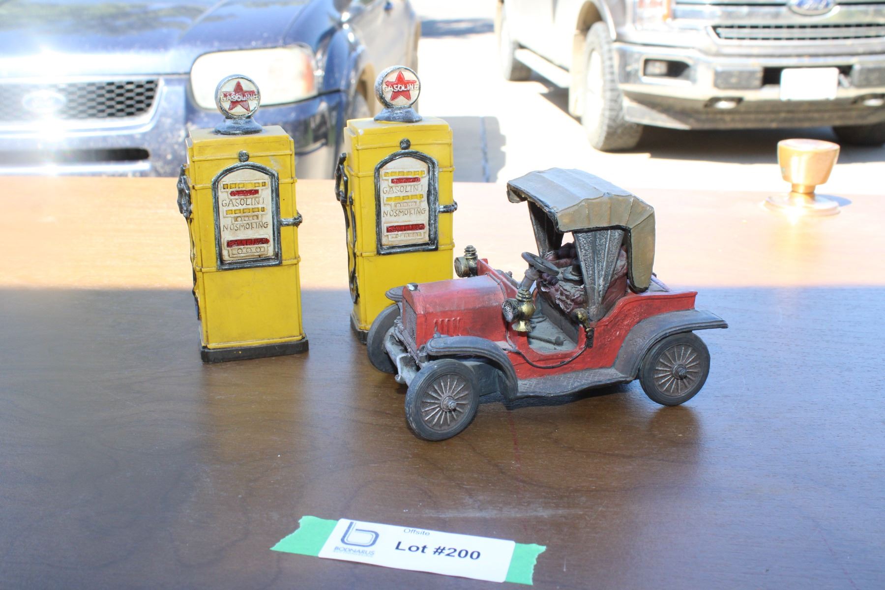 Decorative car + fuel pumps