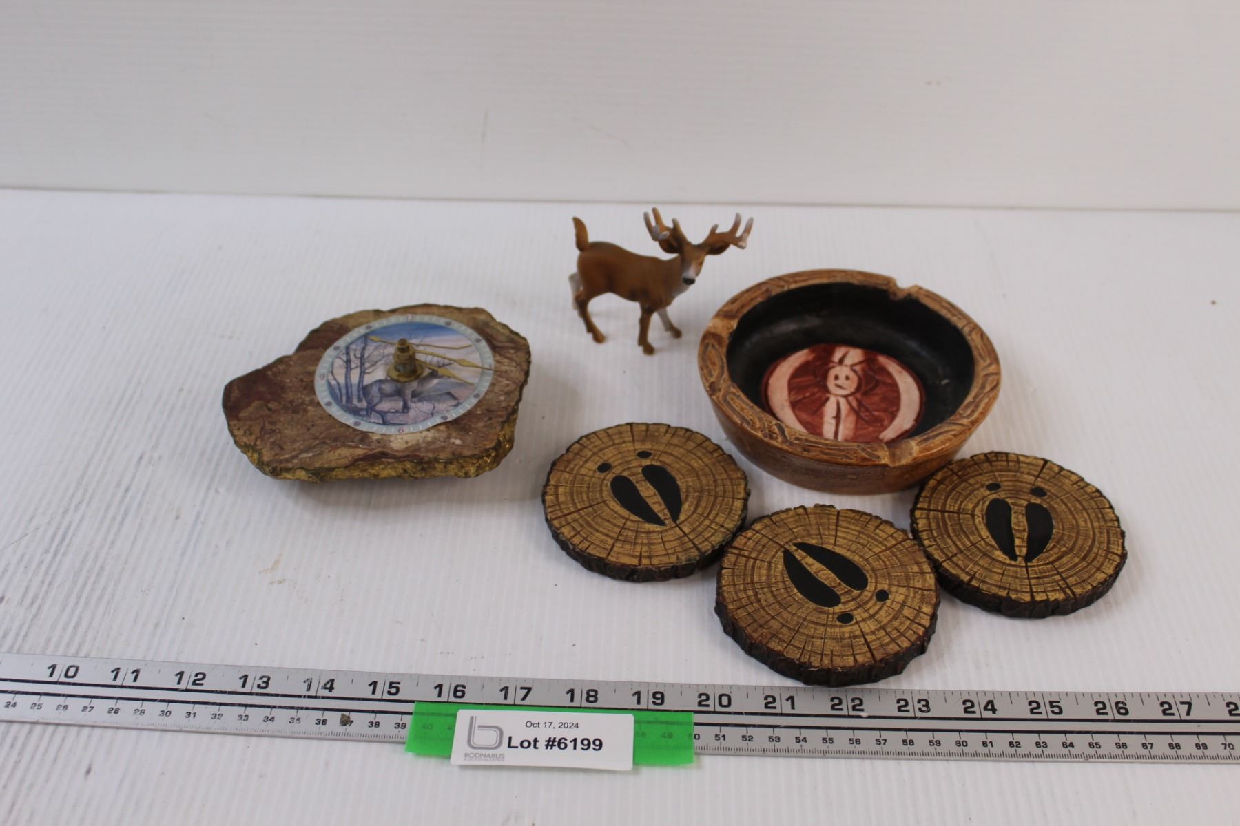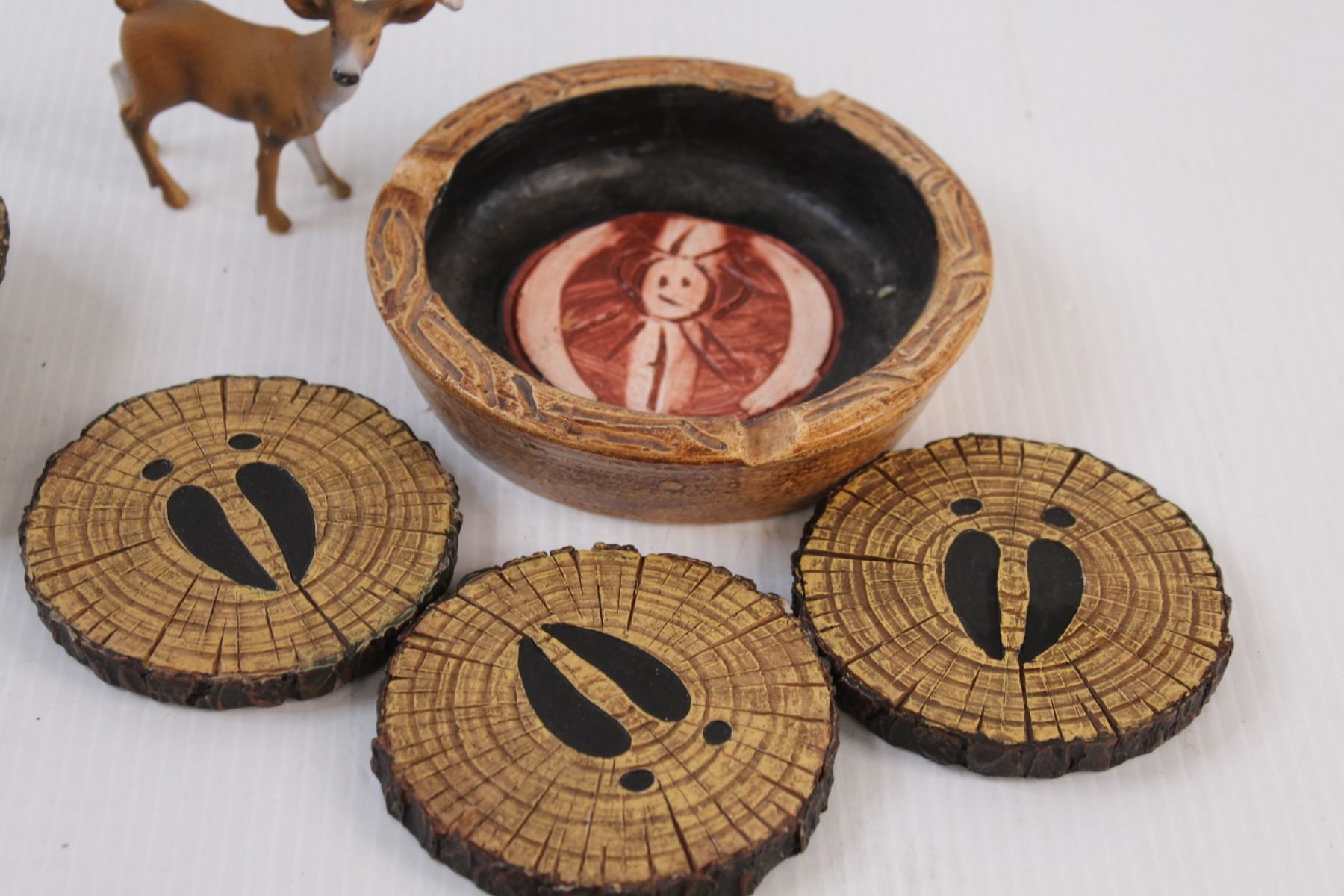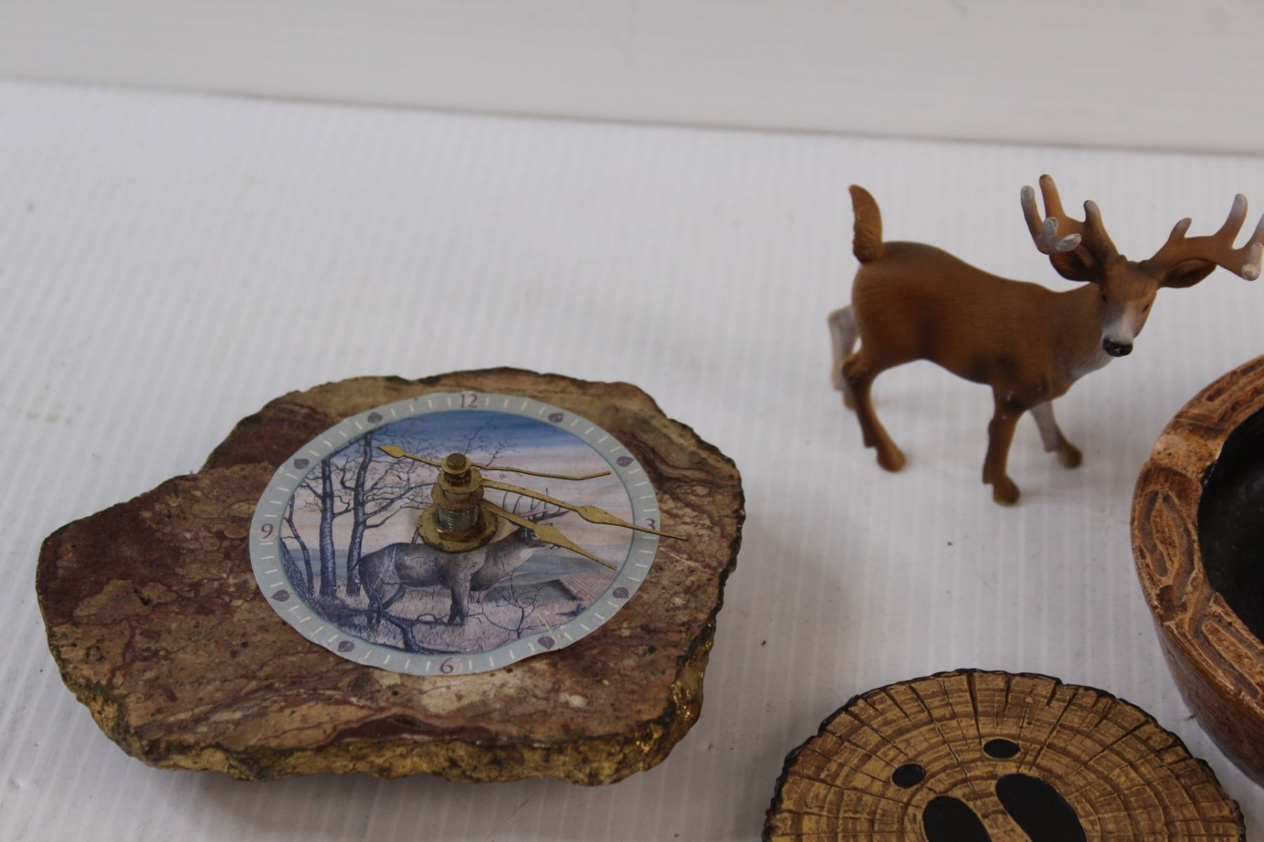 Deer Theme Lot: (Coasters, Ashtray, Battery Powered Clock, Deer Figurine