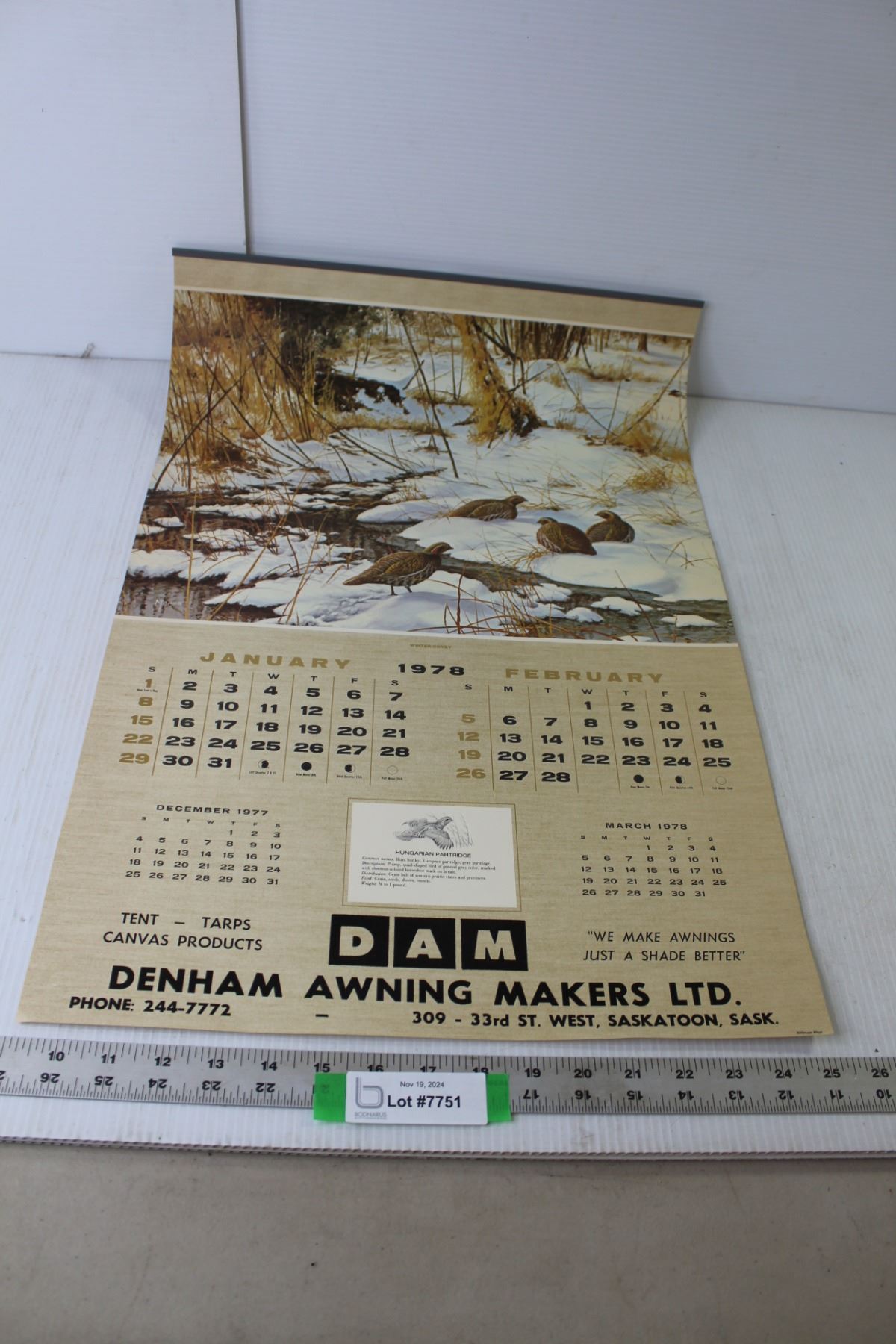 Denham Awning Makers Ltd. 1978 Wall Calendar 24" x 16"