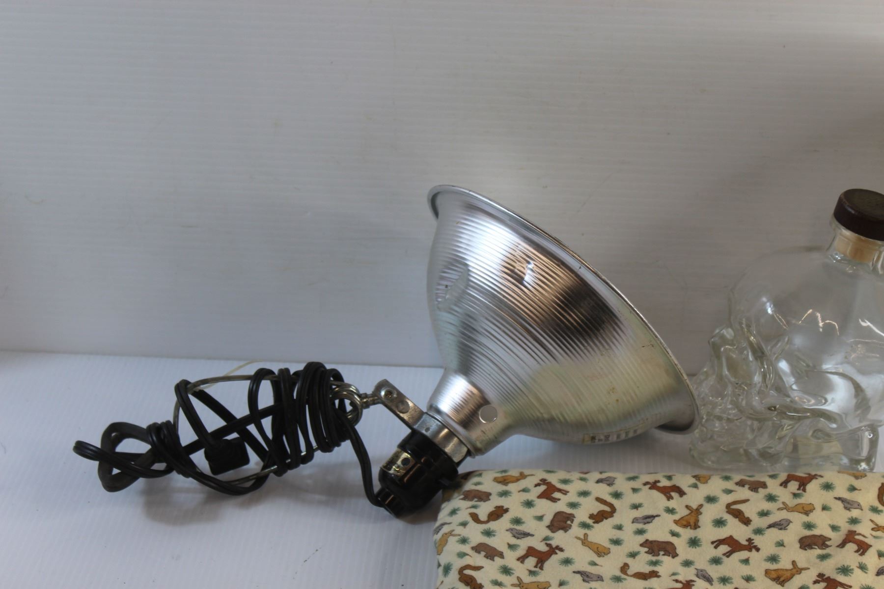 Desk Lamp & Light Up Make Up Mirror - Tested, Heating Pillow and Glass Skull Liquor Bottle