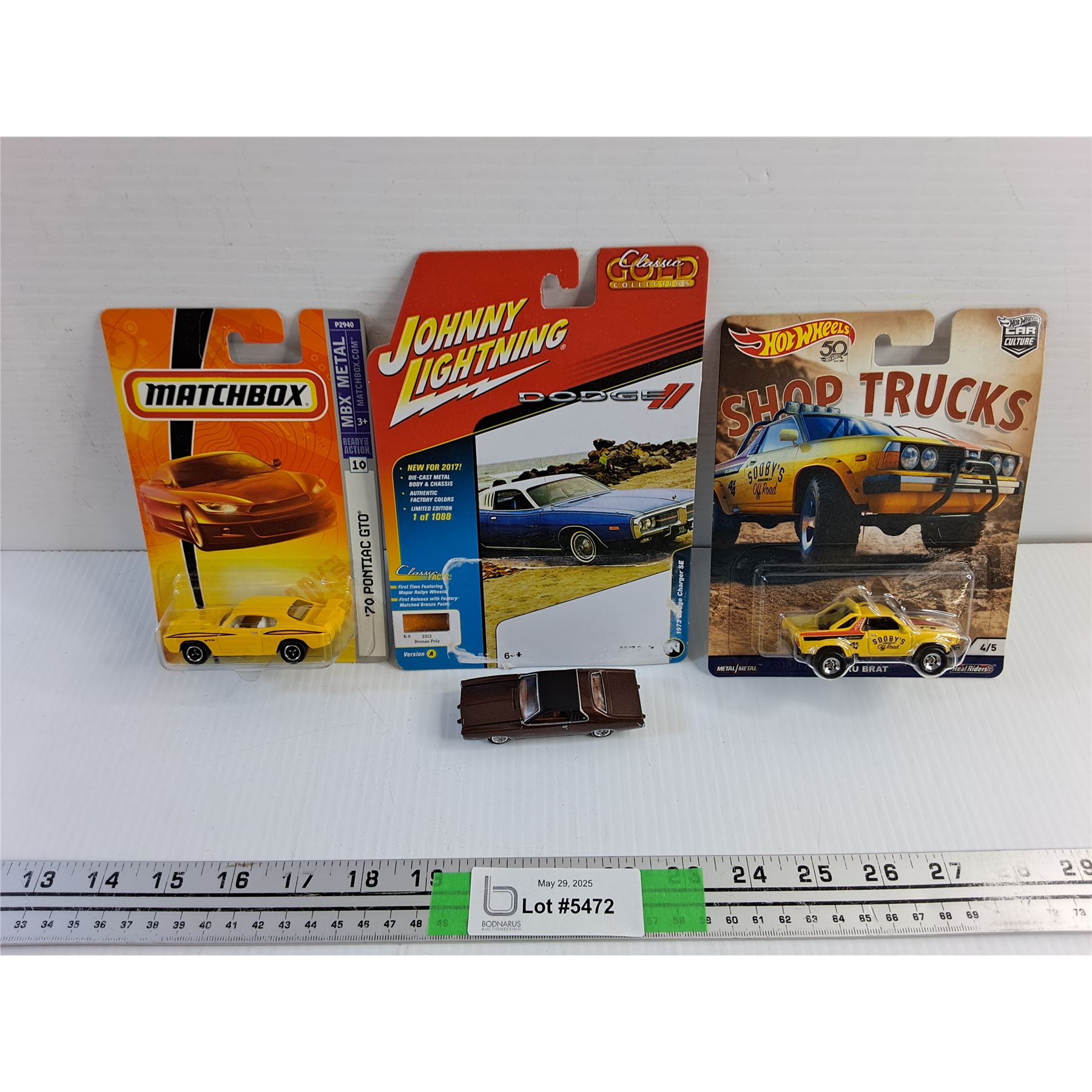 Die Cast '70 Pontiac GTO, 1973 Dodge Charger SE and Subaru Brat