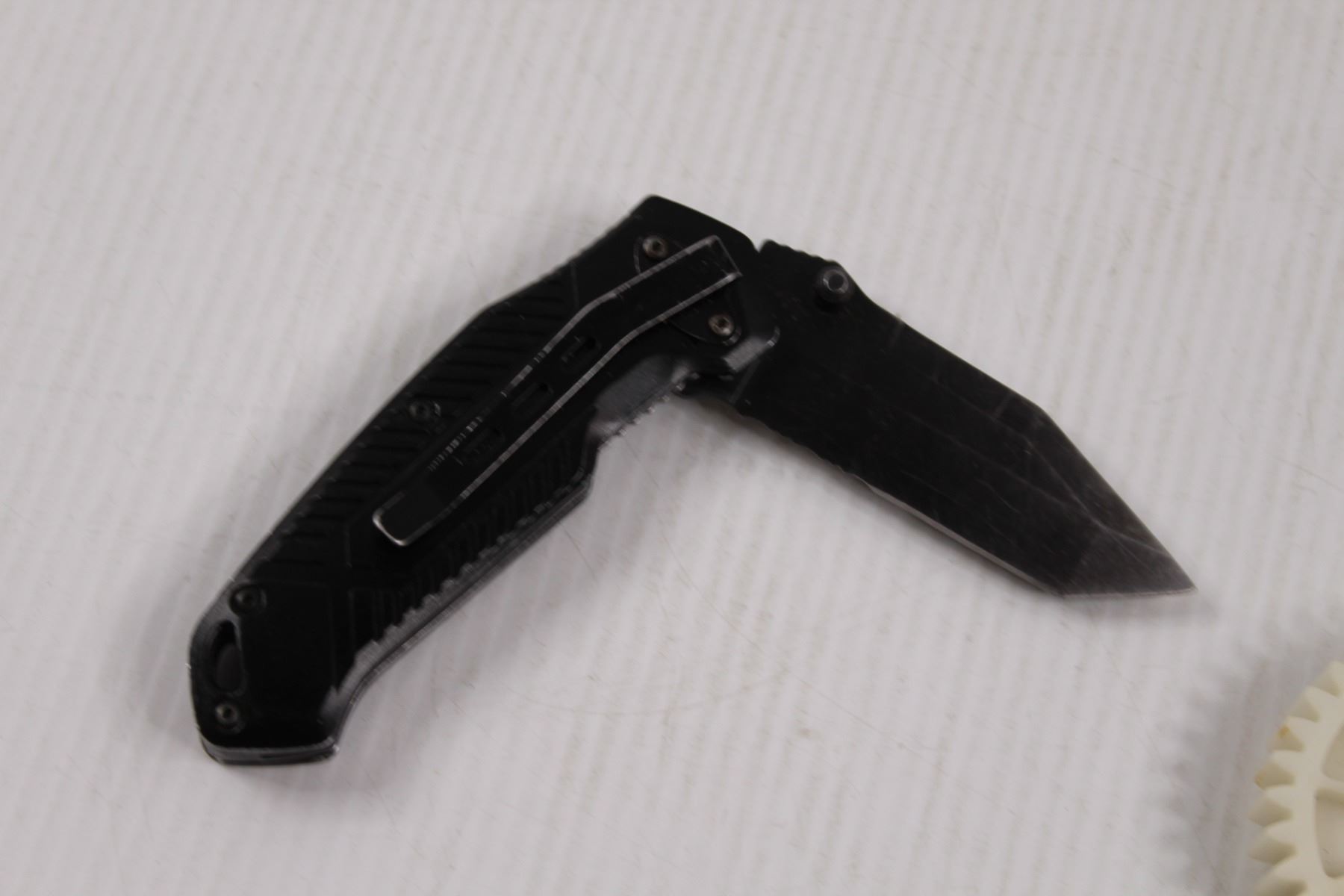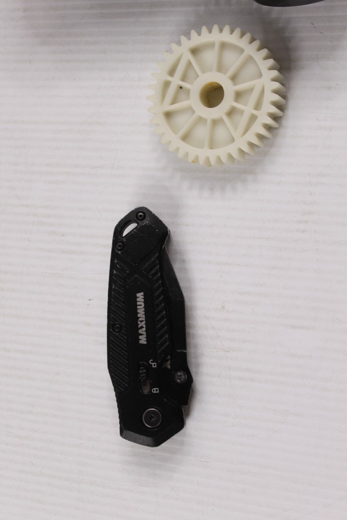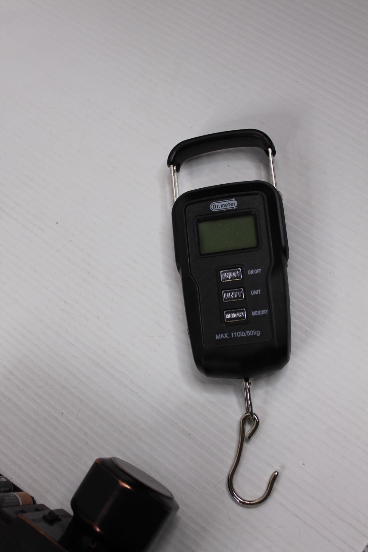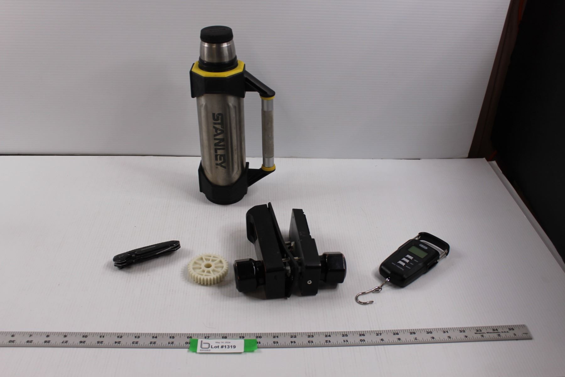 Digital Scale, Stanley Thermal Bottle (Dirty Inside), Maximum Knife, Electronic Locking Door Knob (Touch Key Pad, Missing Battery Cover), Plastic Gear