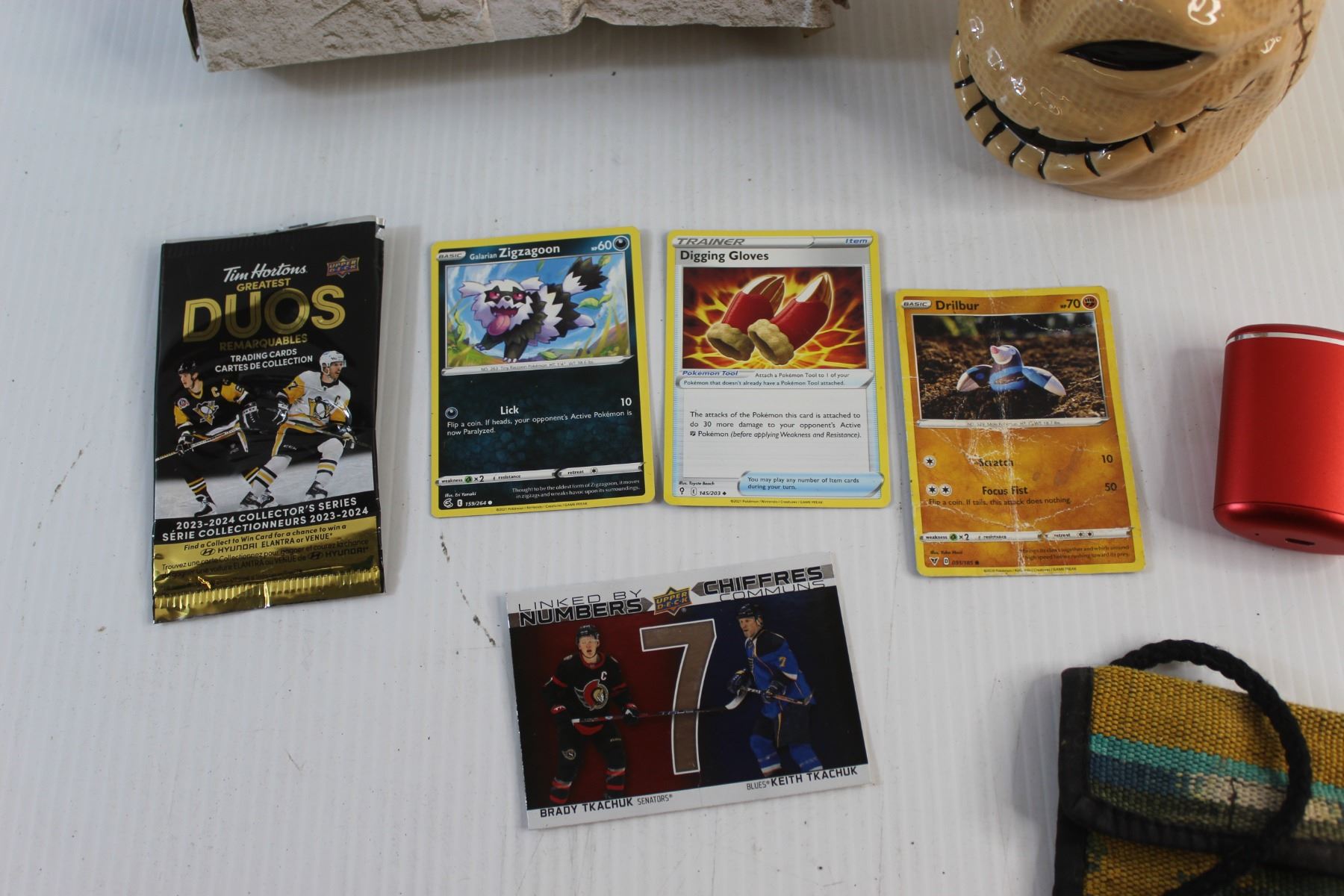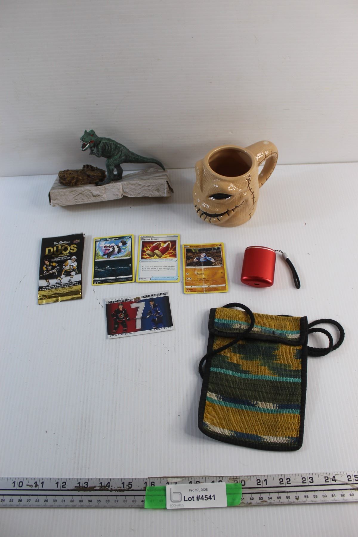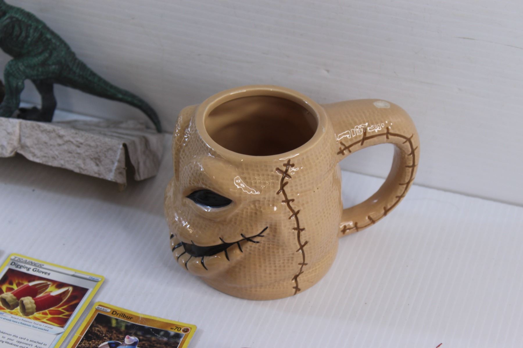 Dinosaur Decor, Decorative Ceramic Mug, Tim Hortons Greatest Duos Trading Hockey Card & Pokémon Trading Cards - Authenticity Not Guaranteed, Wireless Ear Buds and Pouch