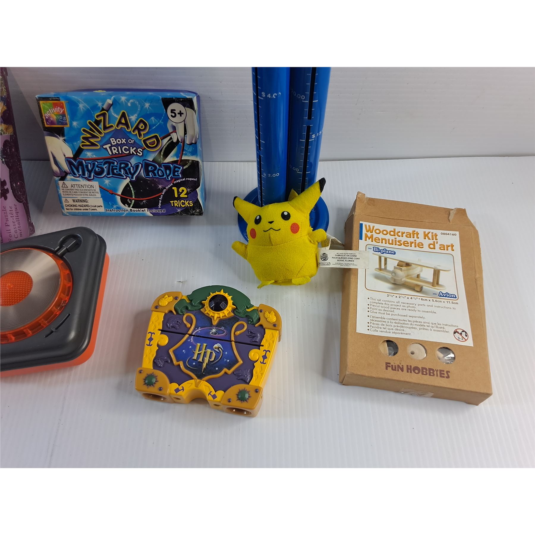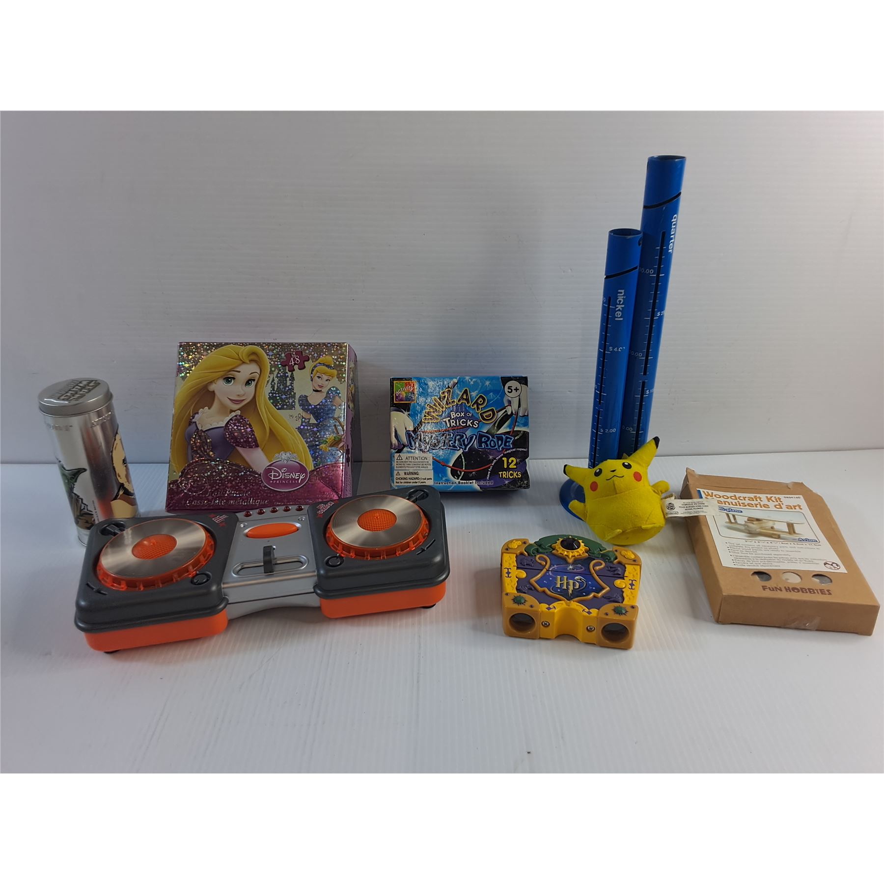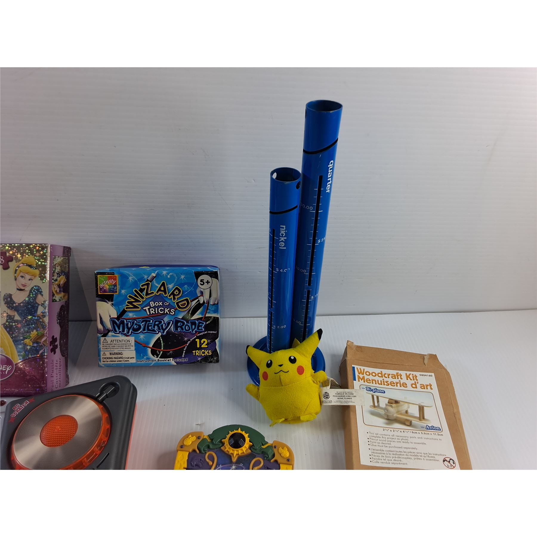 Disney Puzzle, Wizard Mystery Rope, Pokemon Plush Toy, Woodcraft Kit, DJ Toy, Coin Tower and Misc