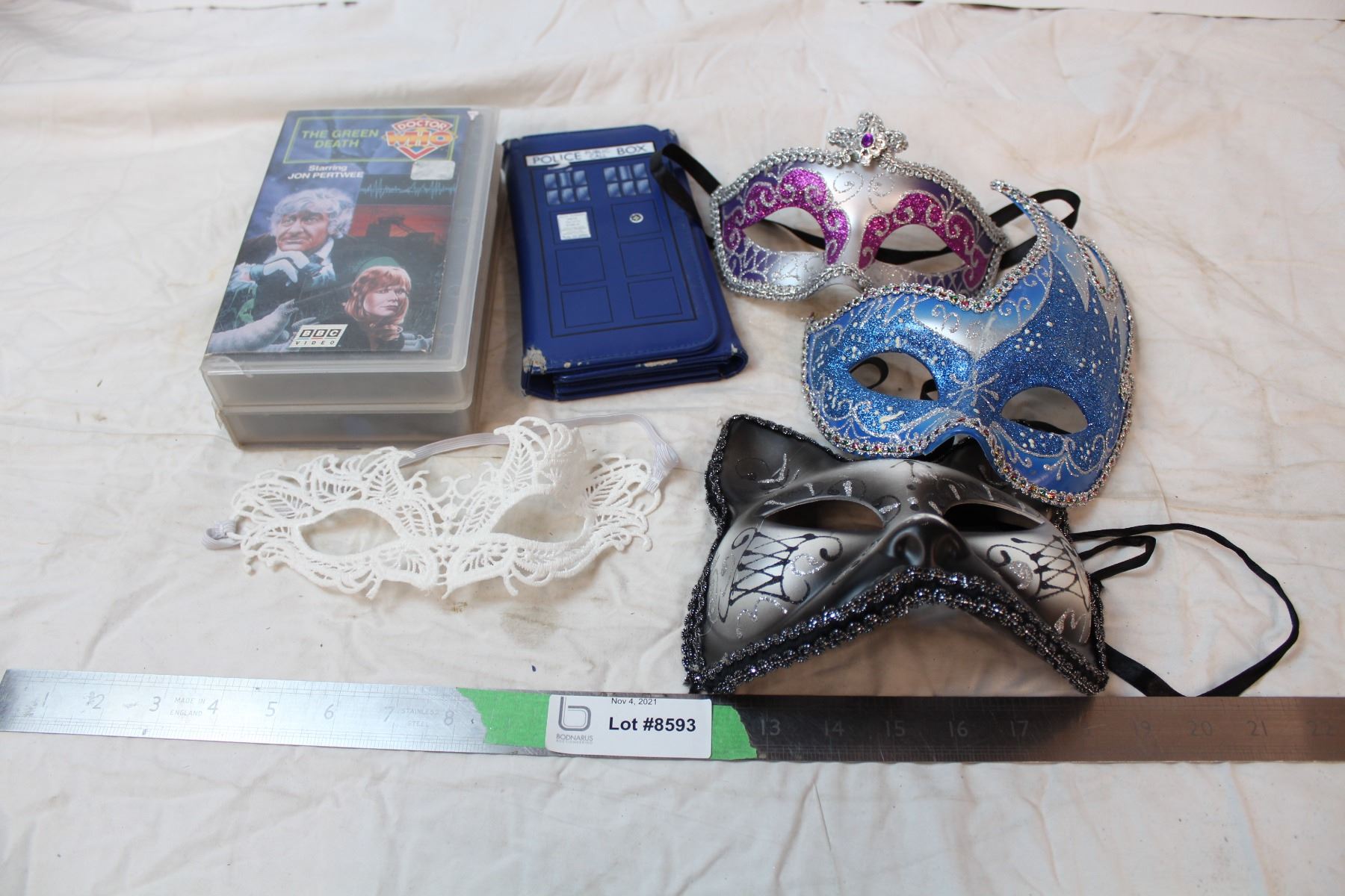 Doctor Who VHS tapes, Doctor Who Wallet, plastic masquerade masks
