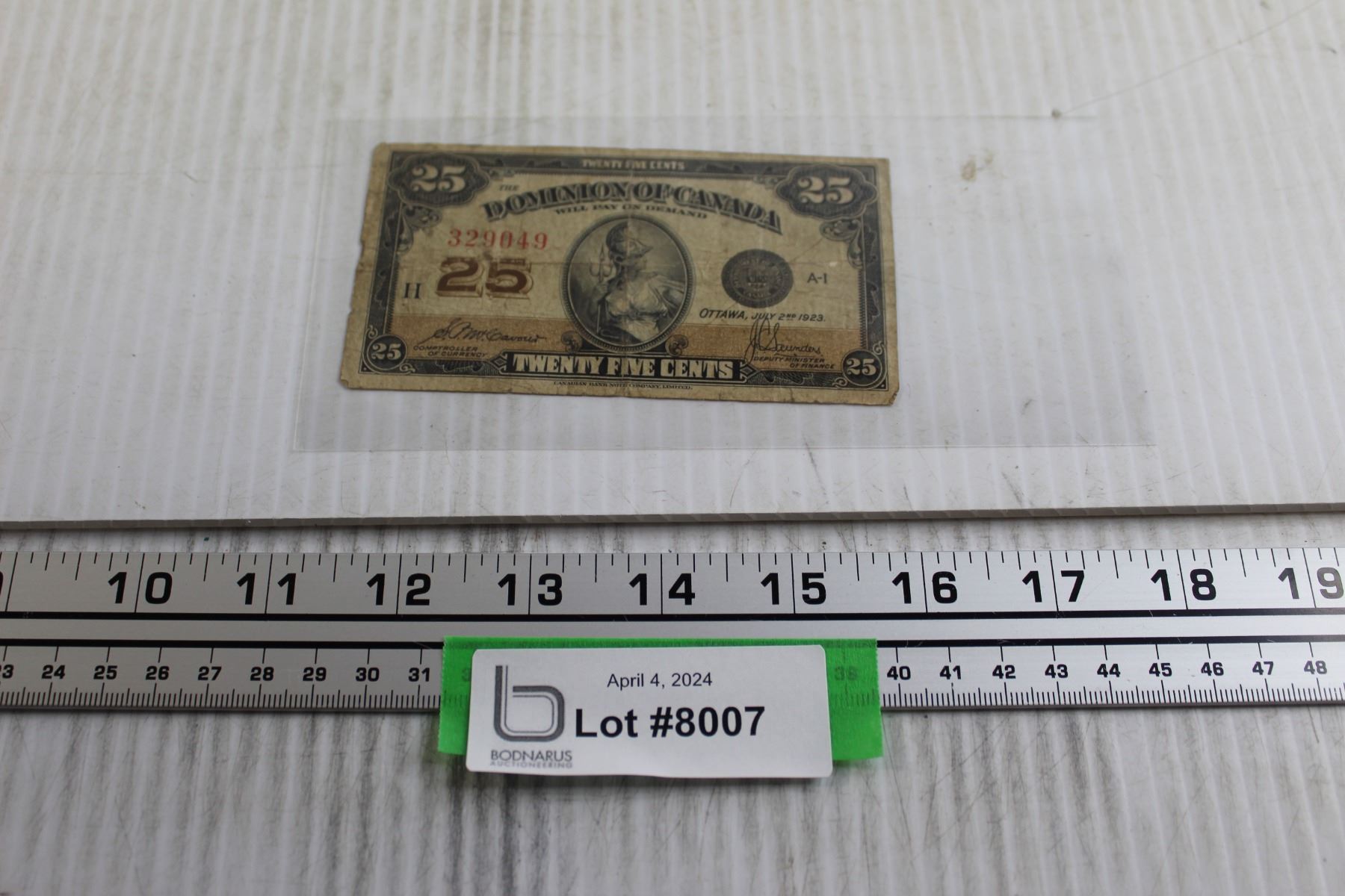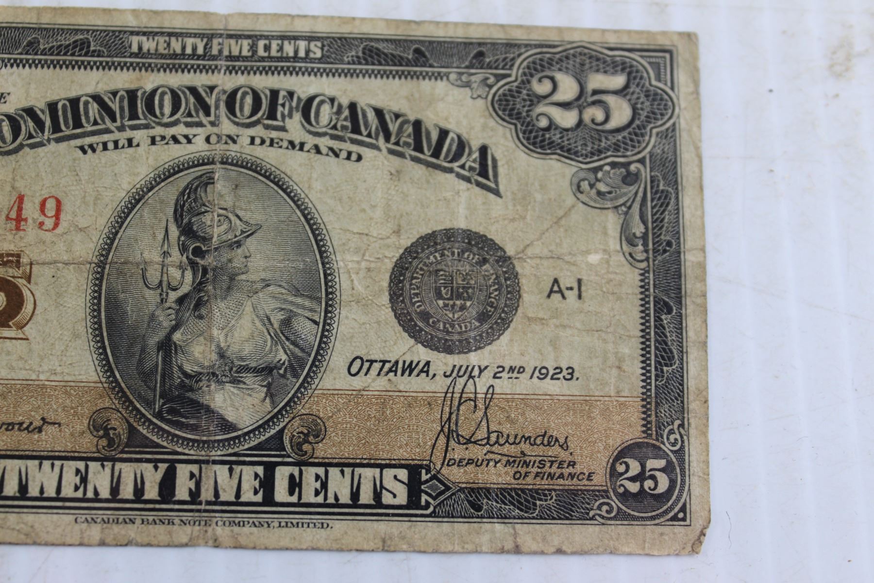Dominion of Canada 1923 Shinplaster - 25 cent Bill