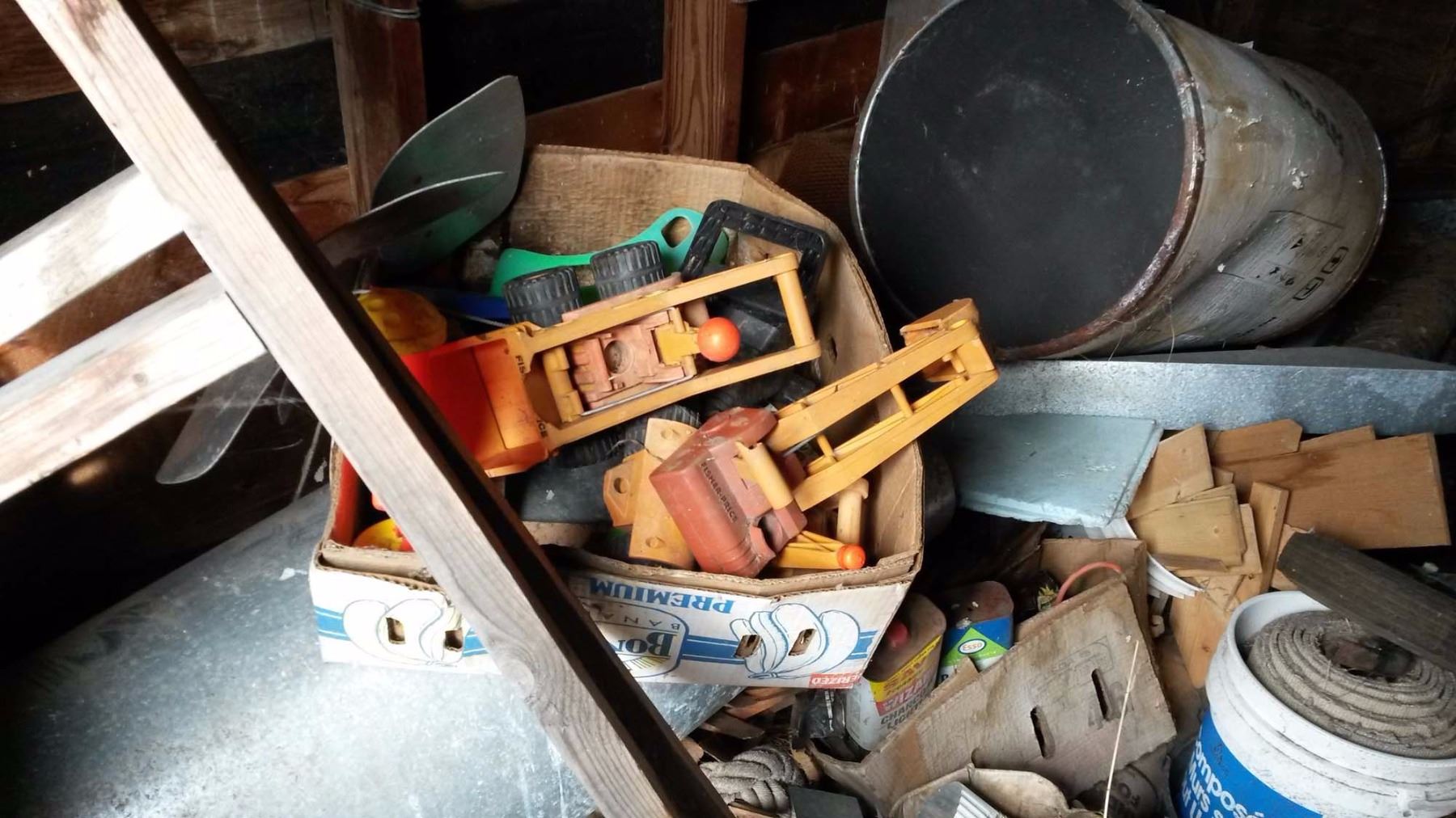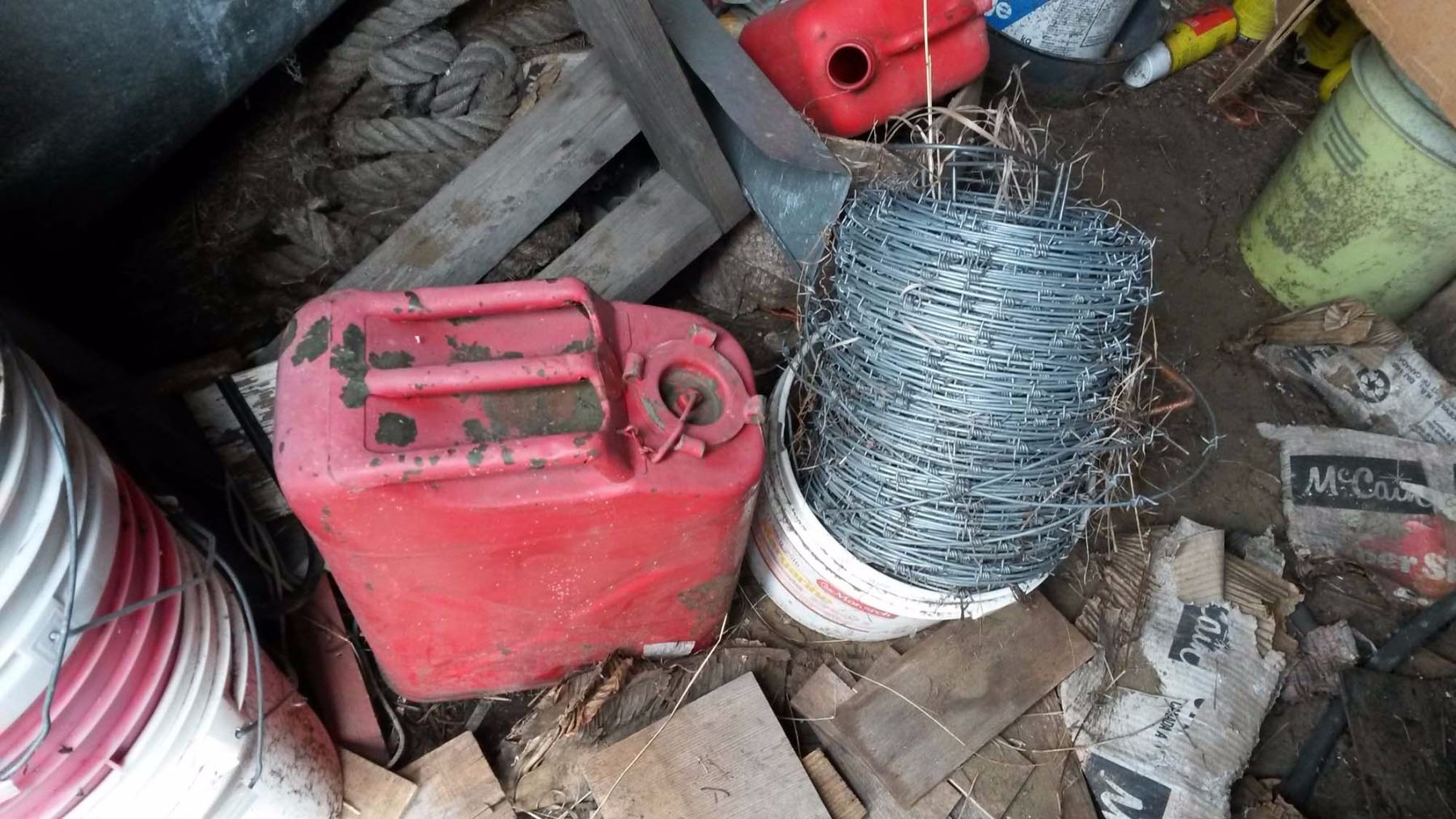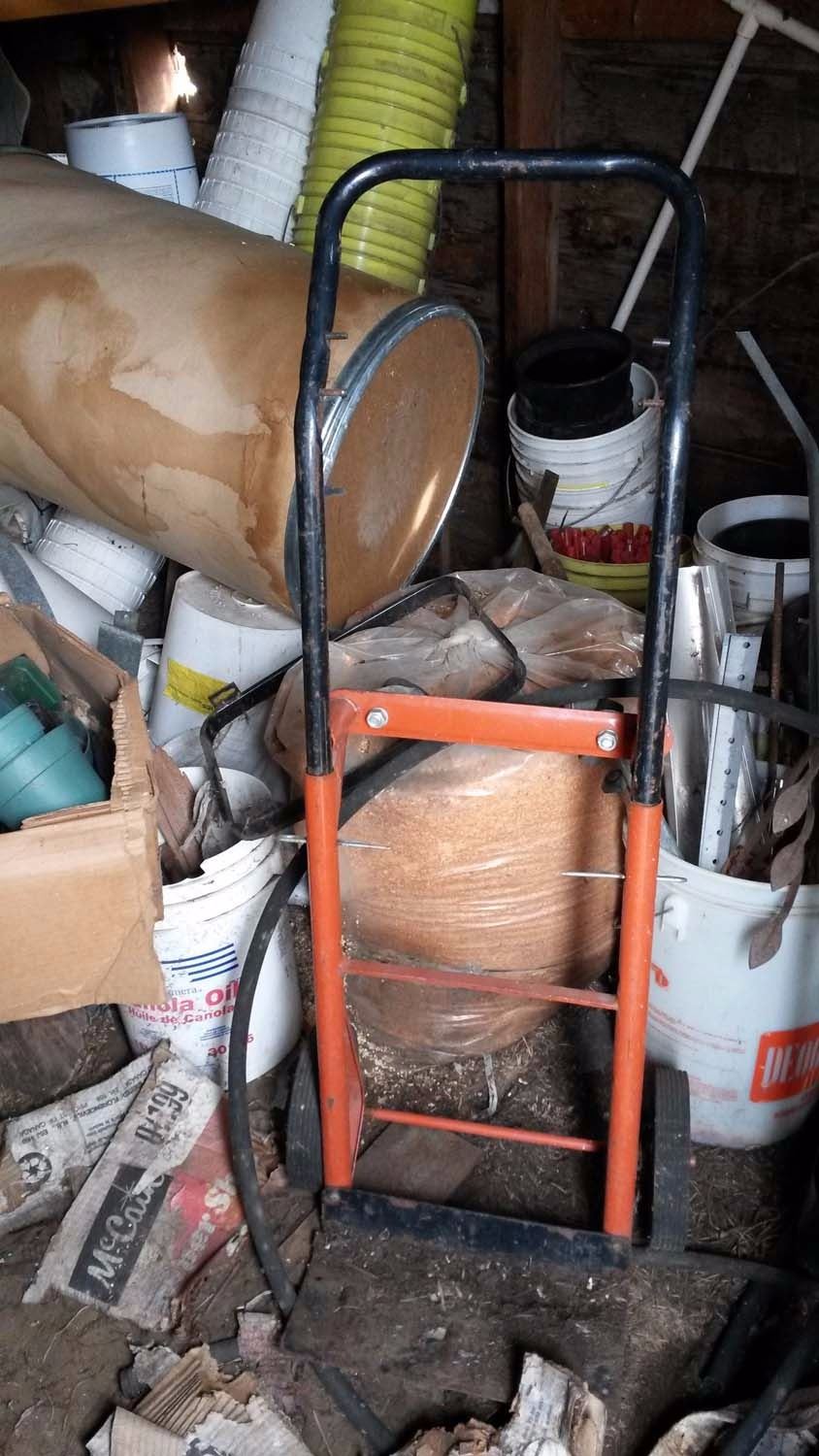 Door #2 Gas Cans, Pails, 2-Wheel Cart, Assorted Wood, Kid’s Toys, Roll Of Wire, Misc.