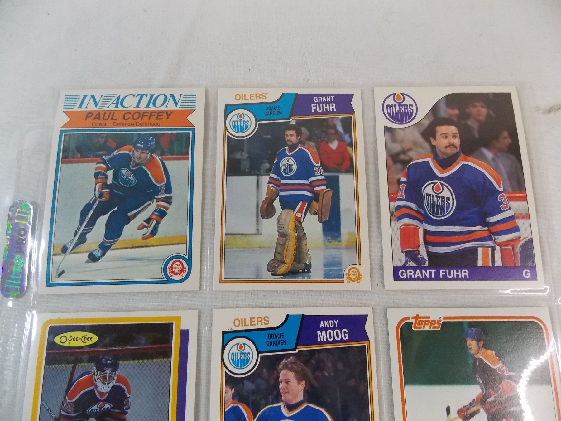 Doug Gilmour Autograph, sheet of cards + Jari Kurri, Paul Coffey, Grant Fuhr - 1980's